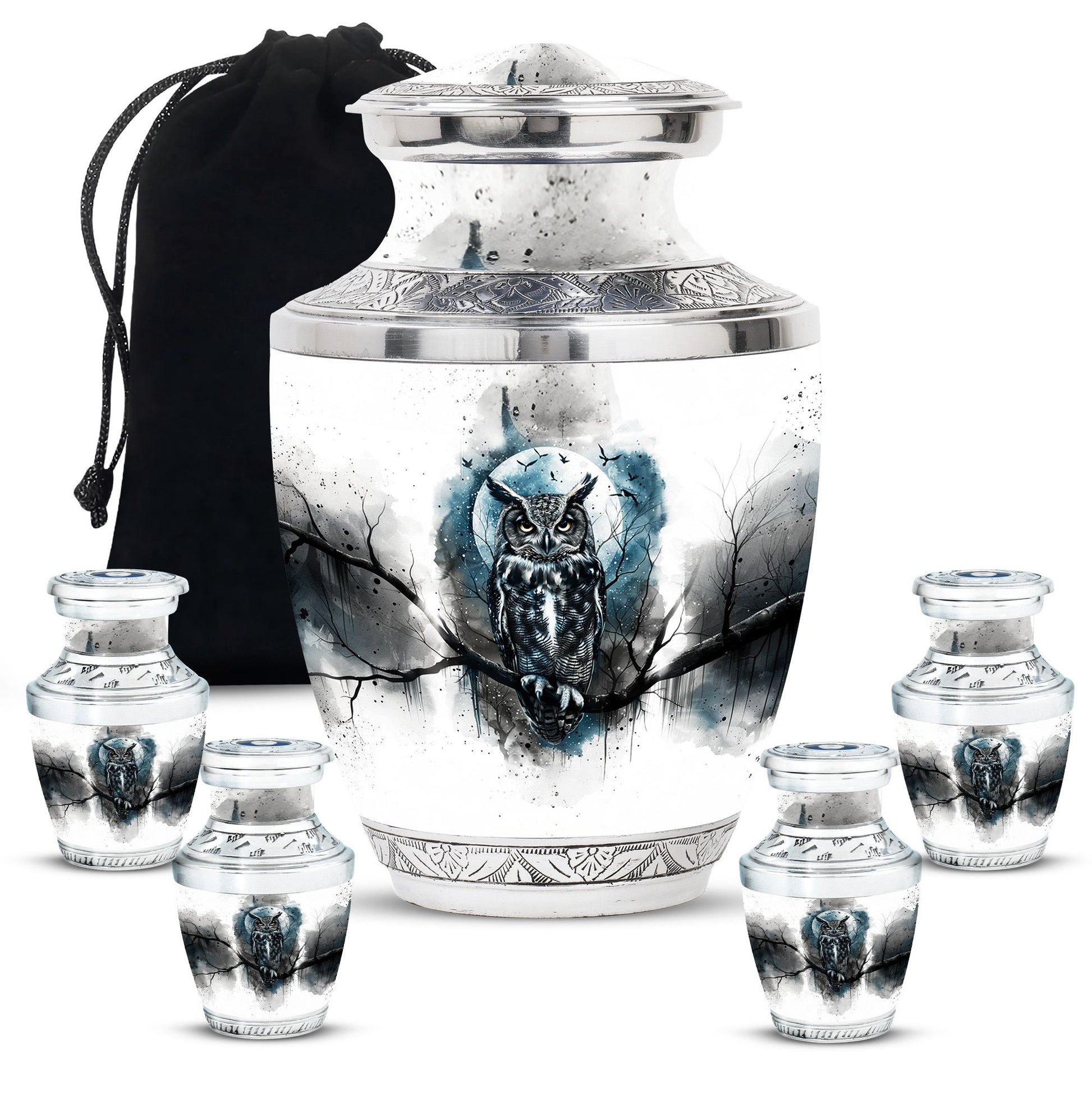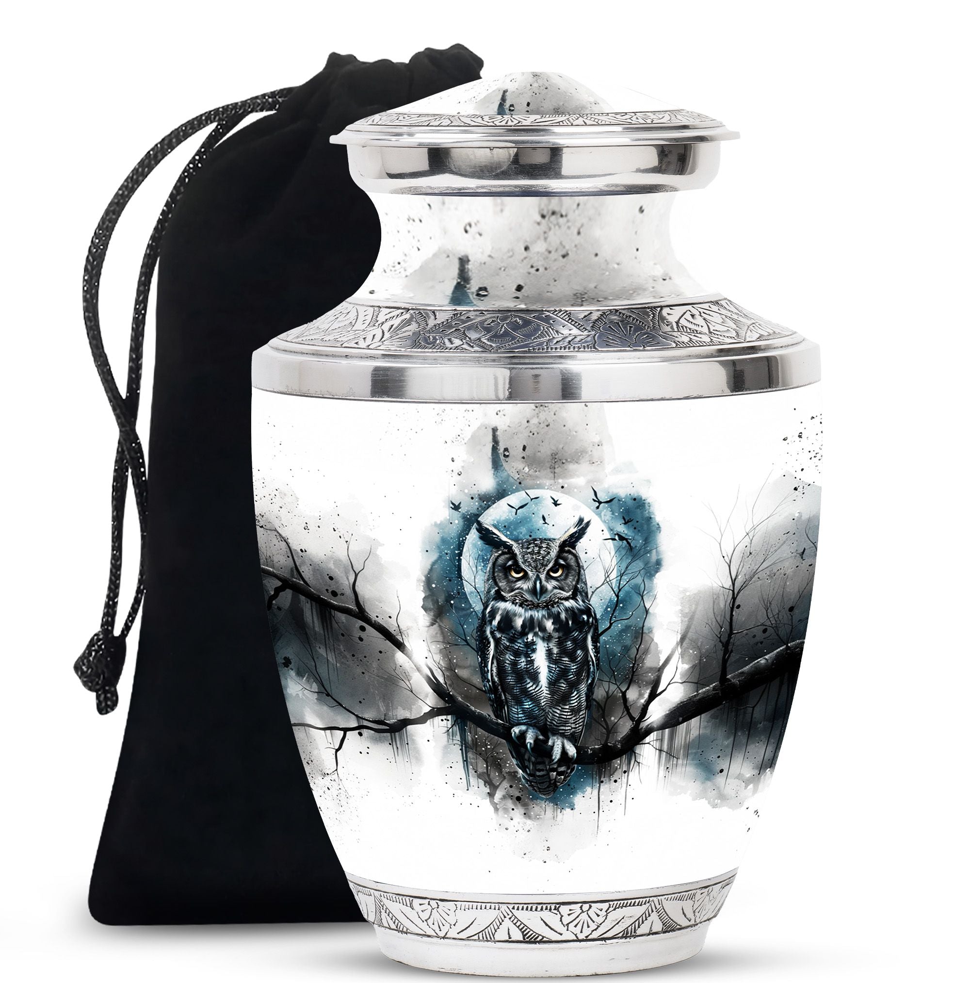 Crafted with care from premium aluminum, this urn is designed for durability while maintaining a graceful appearance. The detailed owl motif serves as a symbol of guidance, making it a versatile tribute whether chosen as urns for human ashes adult male burial or urns for human ashes adult female mom. The secure screw-top lid ensures ashes remain protected, while its size makes it ideal for both primary use and as a small urn for ashes adult male or small urns for human ashes adult female. Families wishing to share ashes may also consider pairing it with mini urn for ashes adult male or urns for adult female small keepsakes.