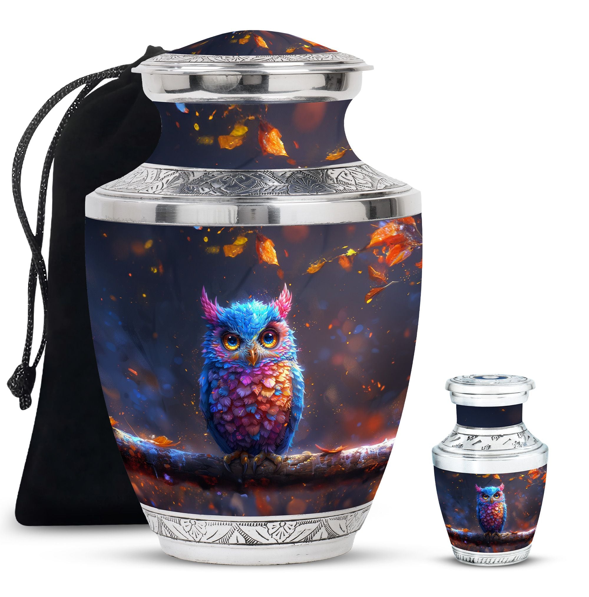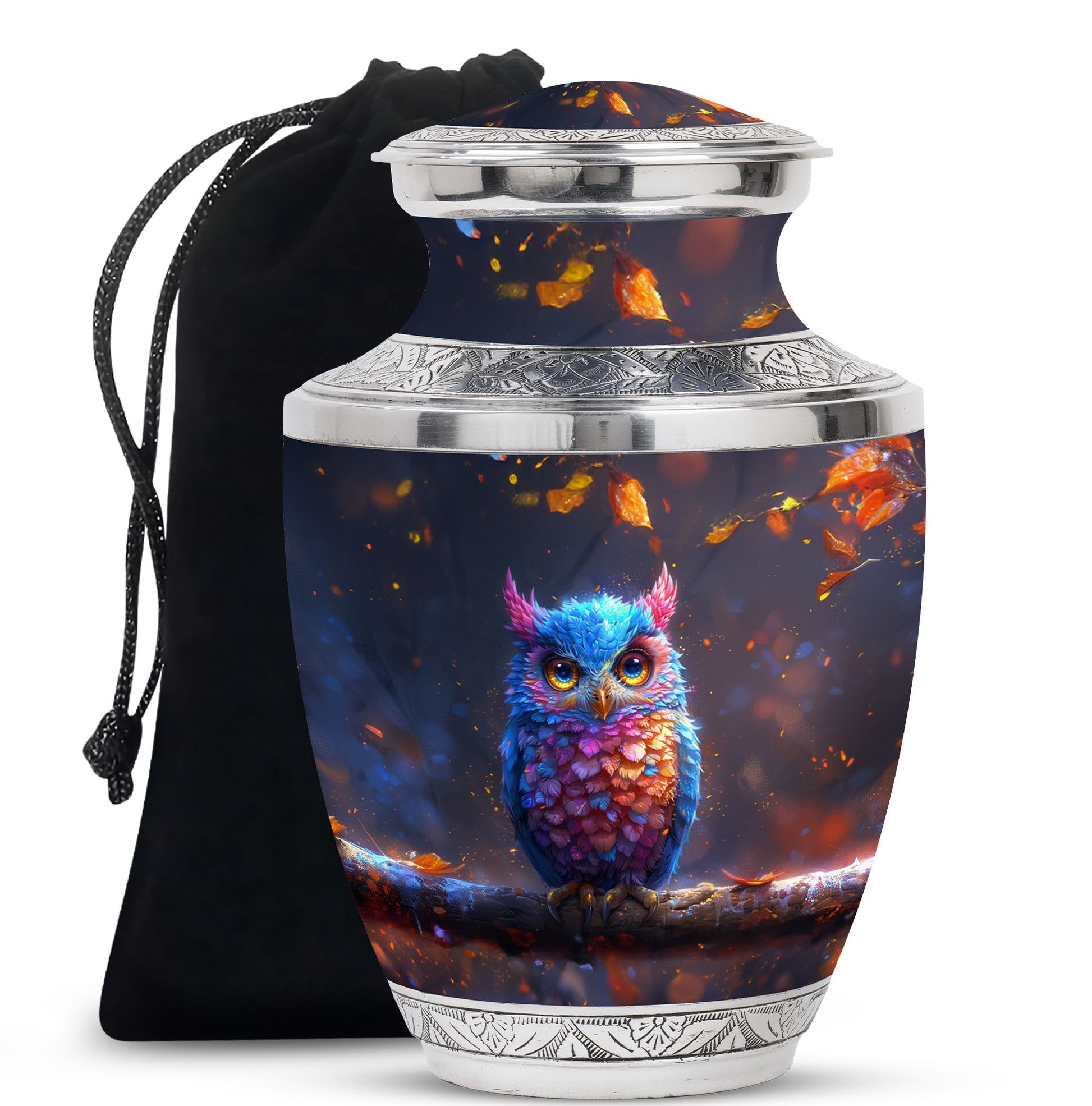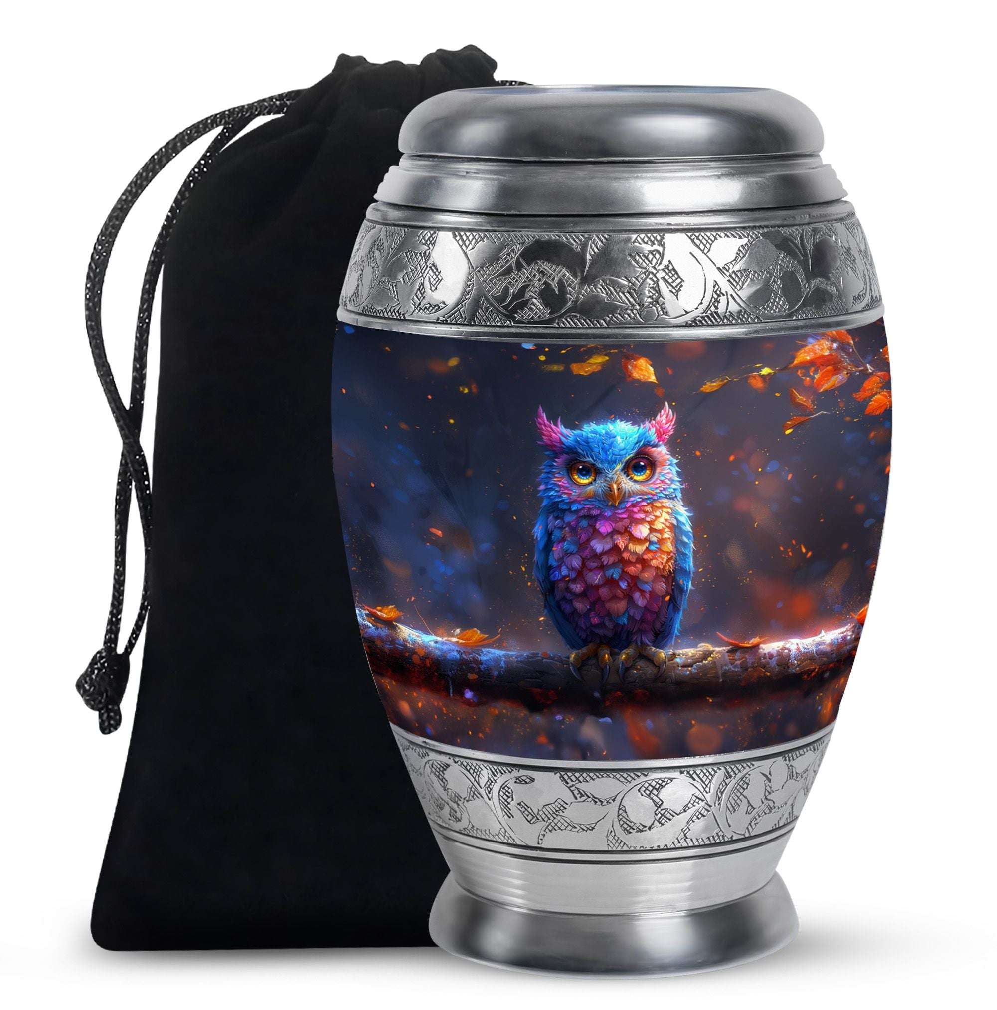 The Majestic Owl Cremation Burial Urn is a beautiful and symbolic memorial crafted to honor your loved one with dignity. Featuring a vibrant, colorful owl design, it reflects wisdom, protection, and eternal remembrance. This urn is ideal for families looking for large urns for human ashes with a unique and meaningful touch.