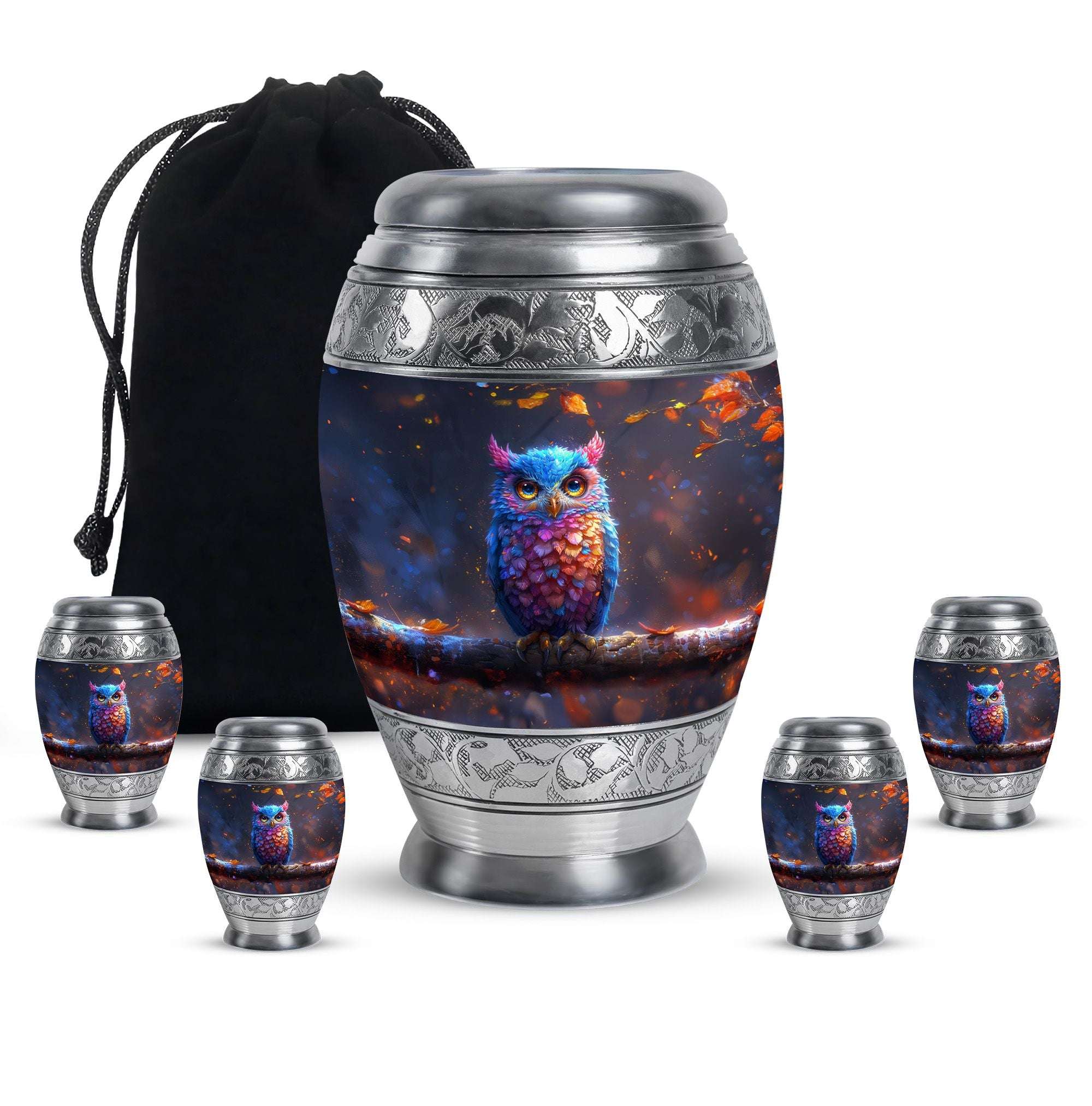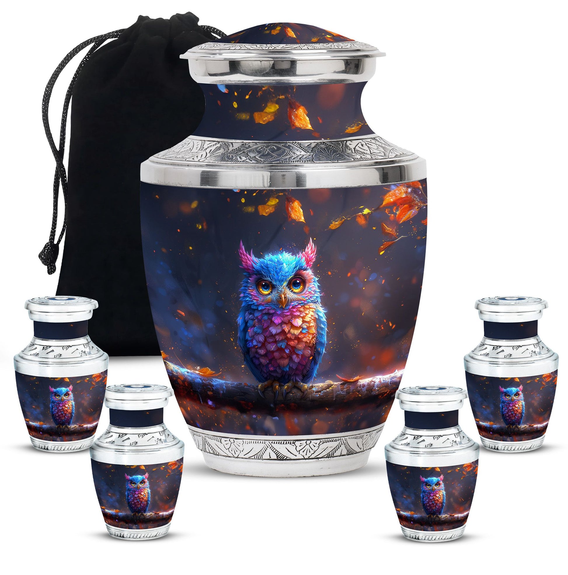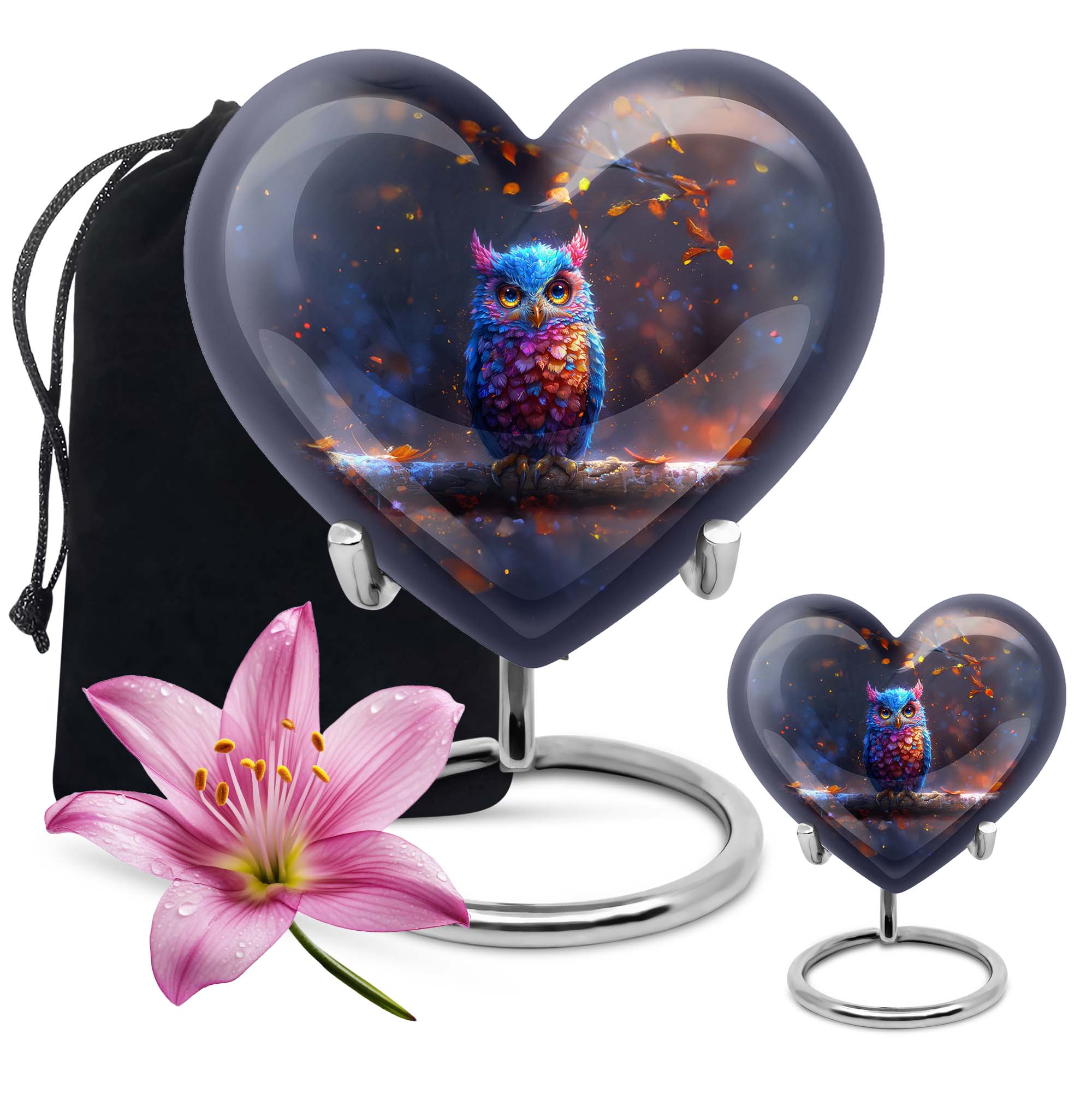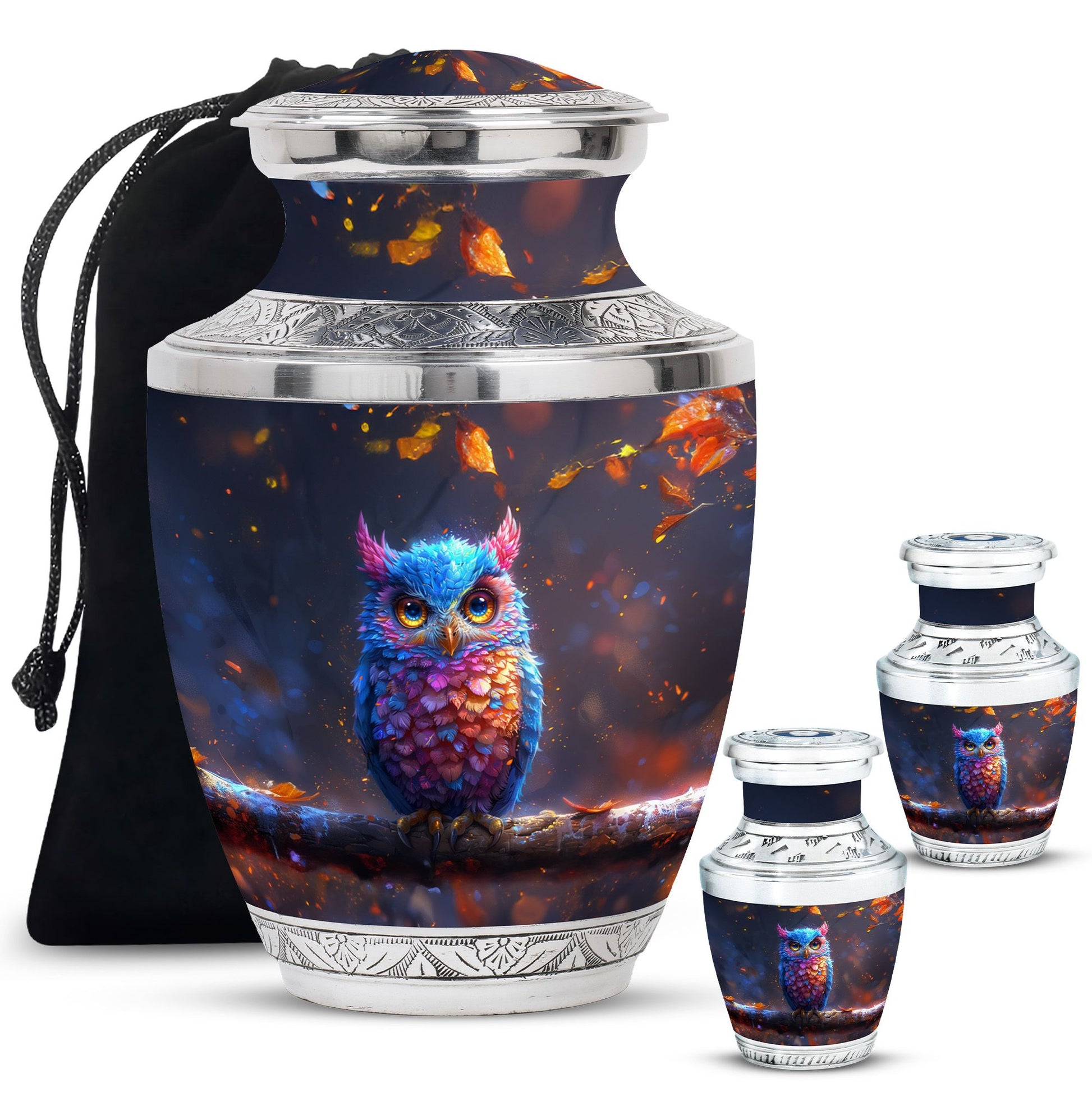 The Majestic Owl Cremation Burial Urn is a beautiful and symbolic memorial crafted to honor your loved one with dignity. Featuring a vibrant, colorful owl design, it reflects wisdom, protection, and eternal remembrance. This urn is ideal for families looking for large urns for human ashes with a unique and meaningful touch.