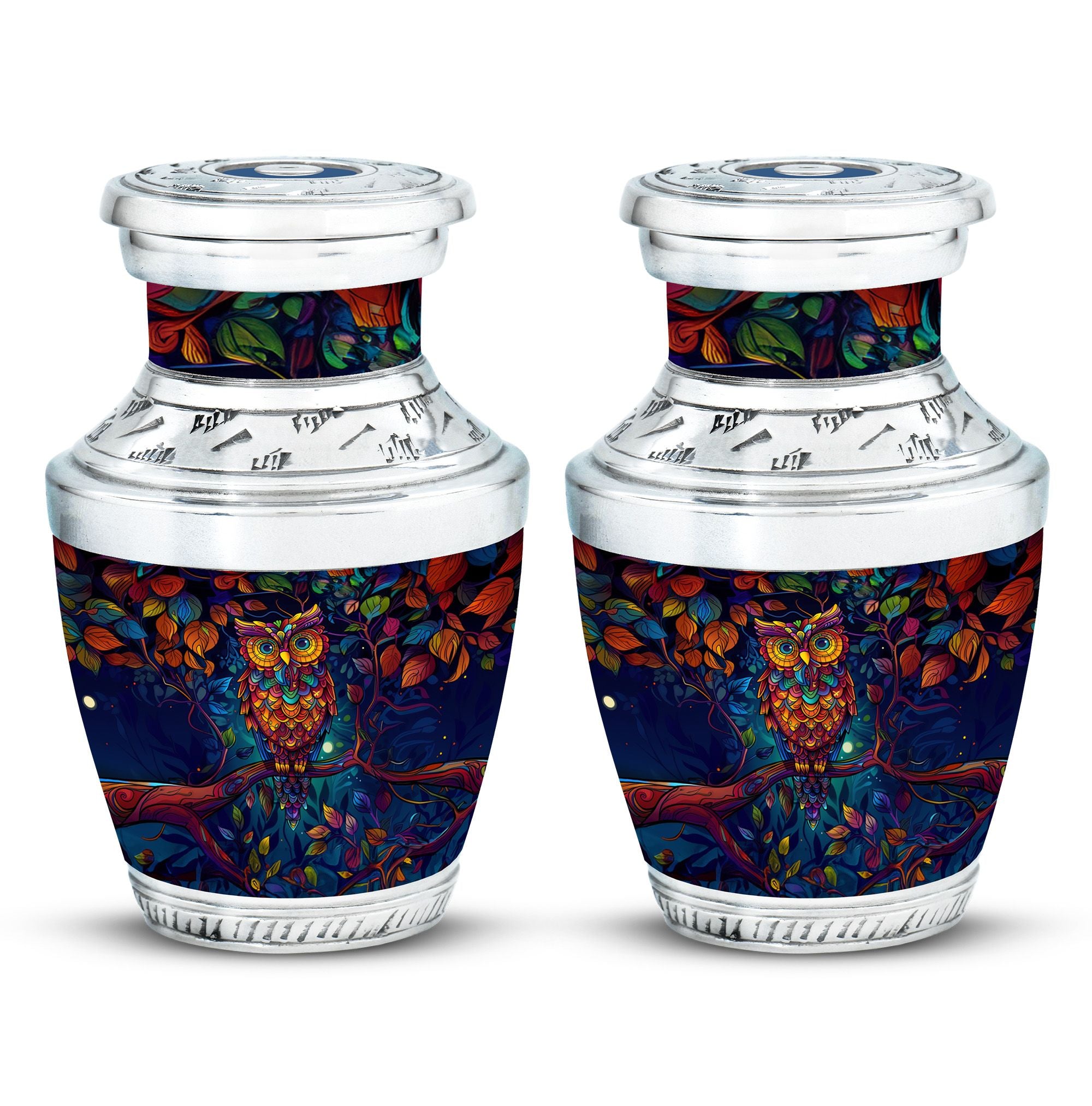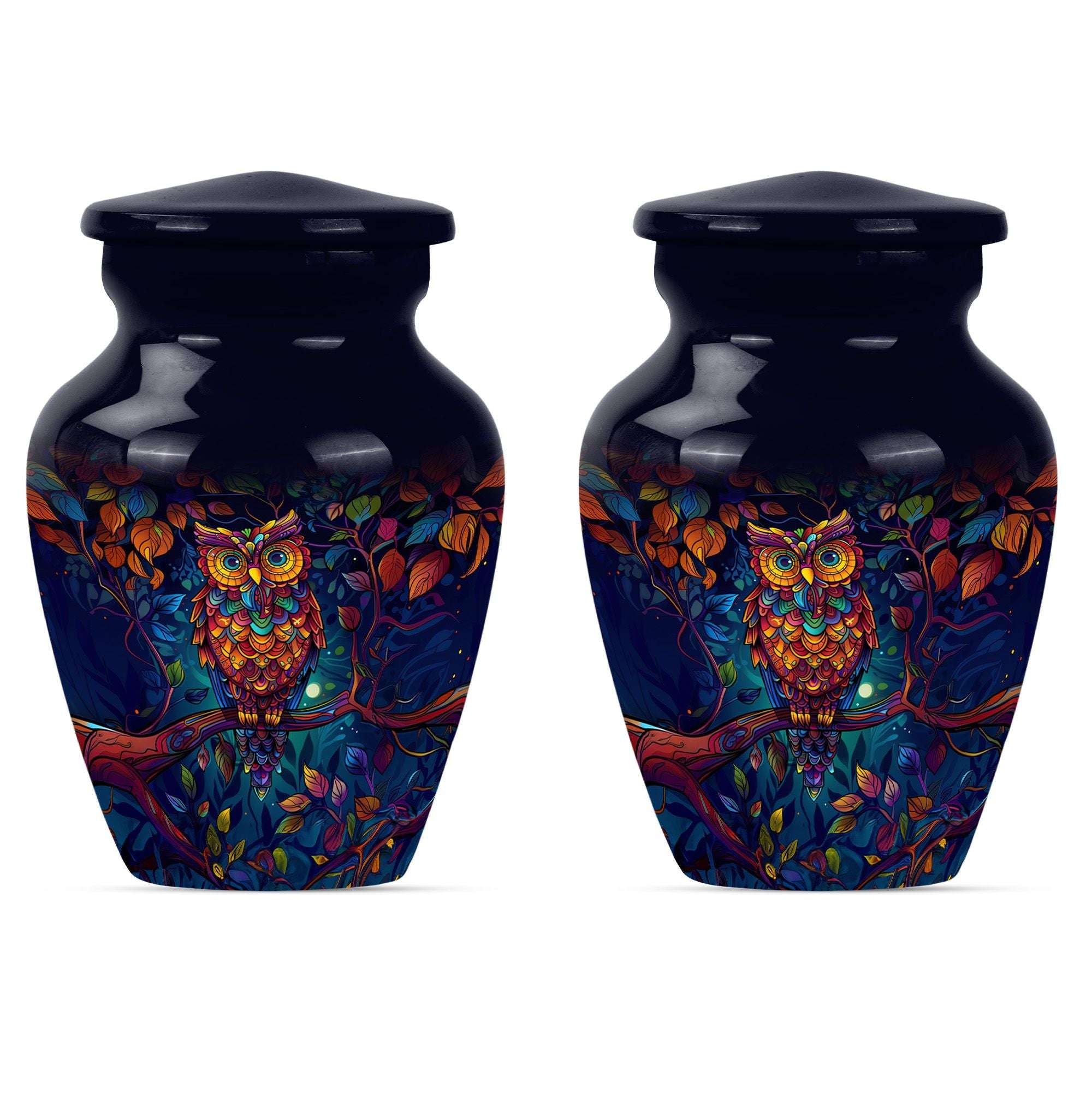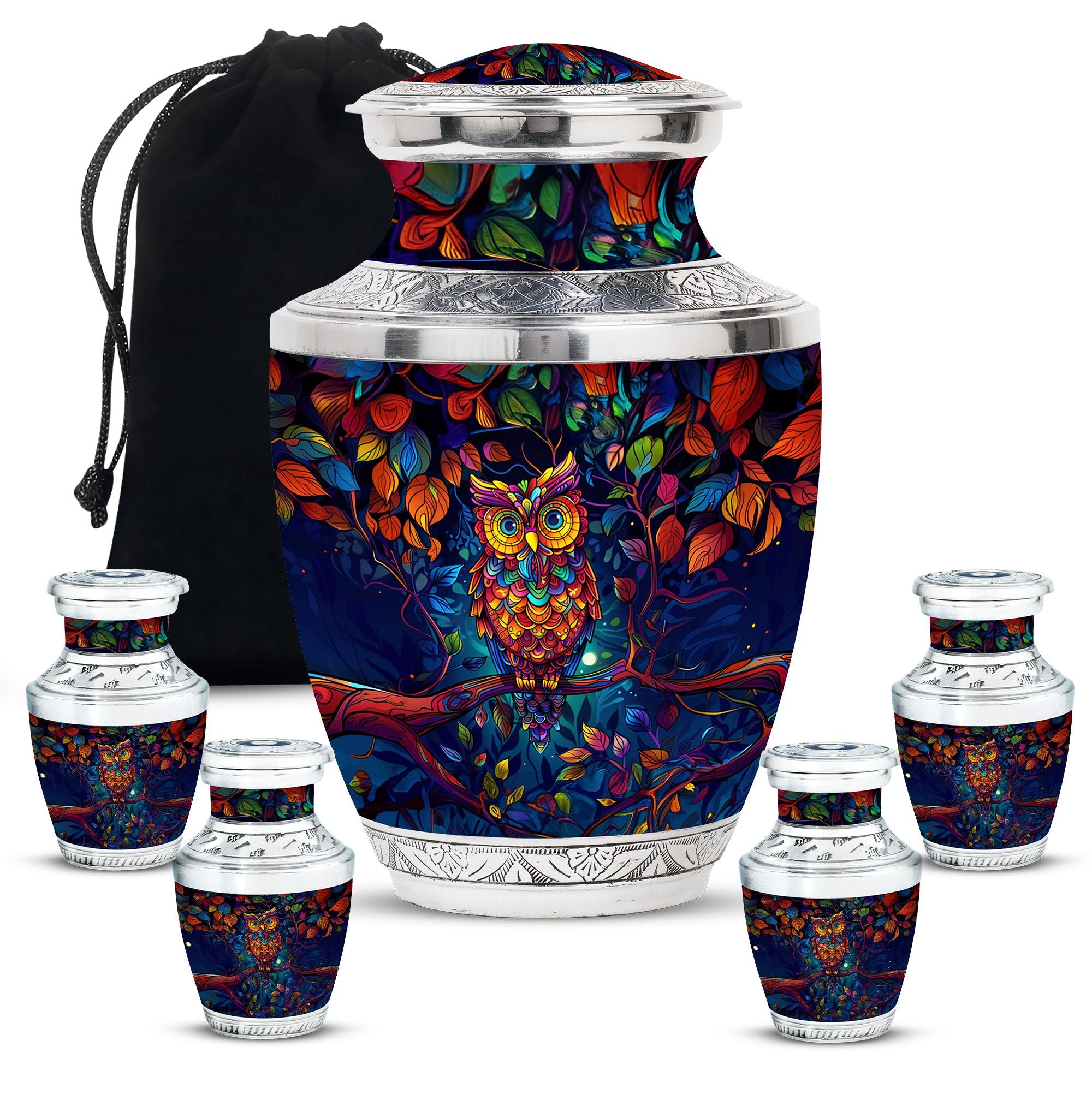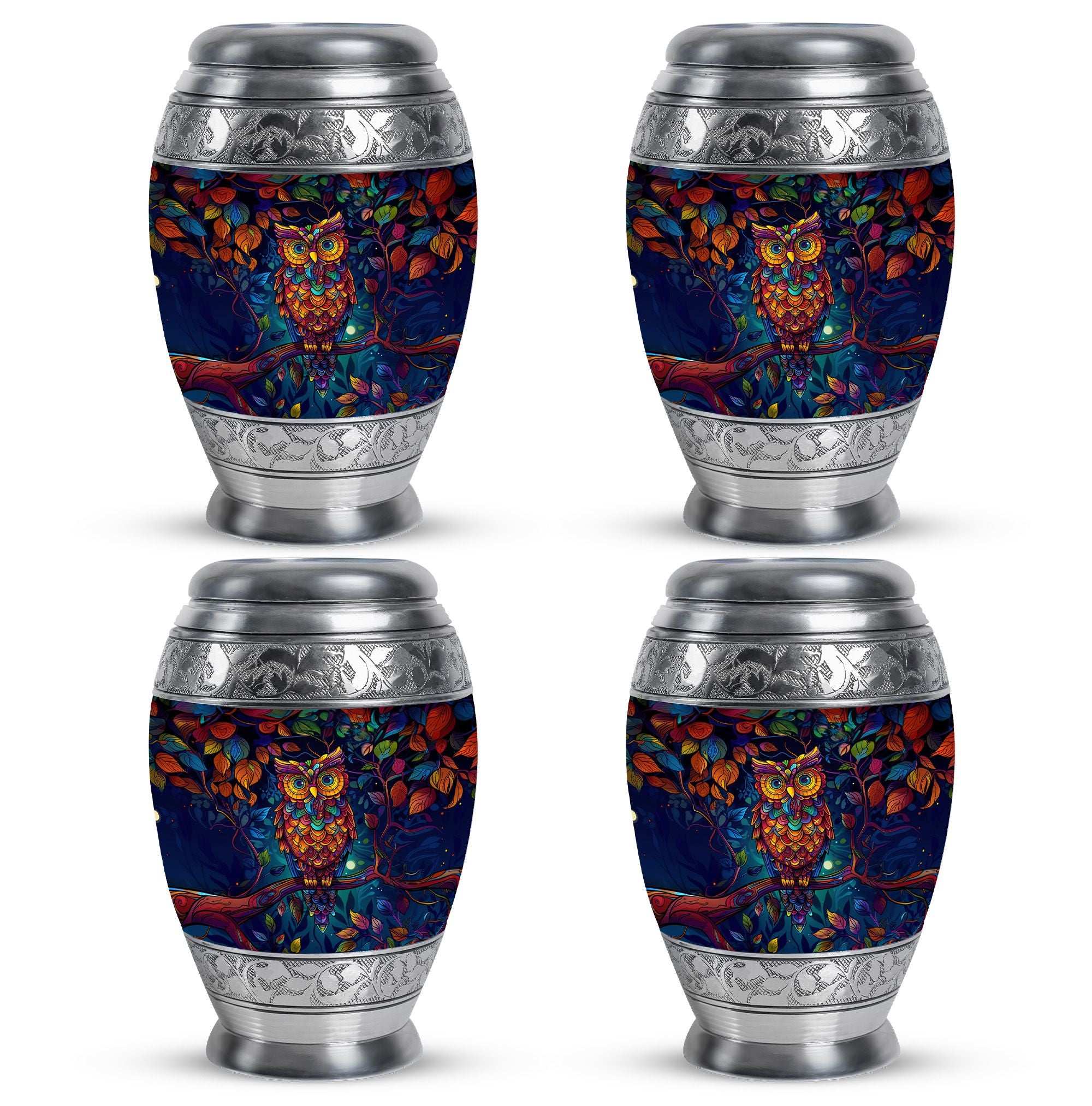 Crafted from durable aluminum, this urn offers both strength and elegance. The detailed owl artwork reflects peace and guidance, making it ideal as a human urn for ashes adult male or one of the most symbolic human urns for ashes adult female. Designed with a secure screw-top lid, it ensures ashes remain safe, whether used as a large urn for display, a burial urn, or paired with small urns for adult male or urns for human ashes adult female small size for sharing among family members.