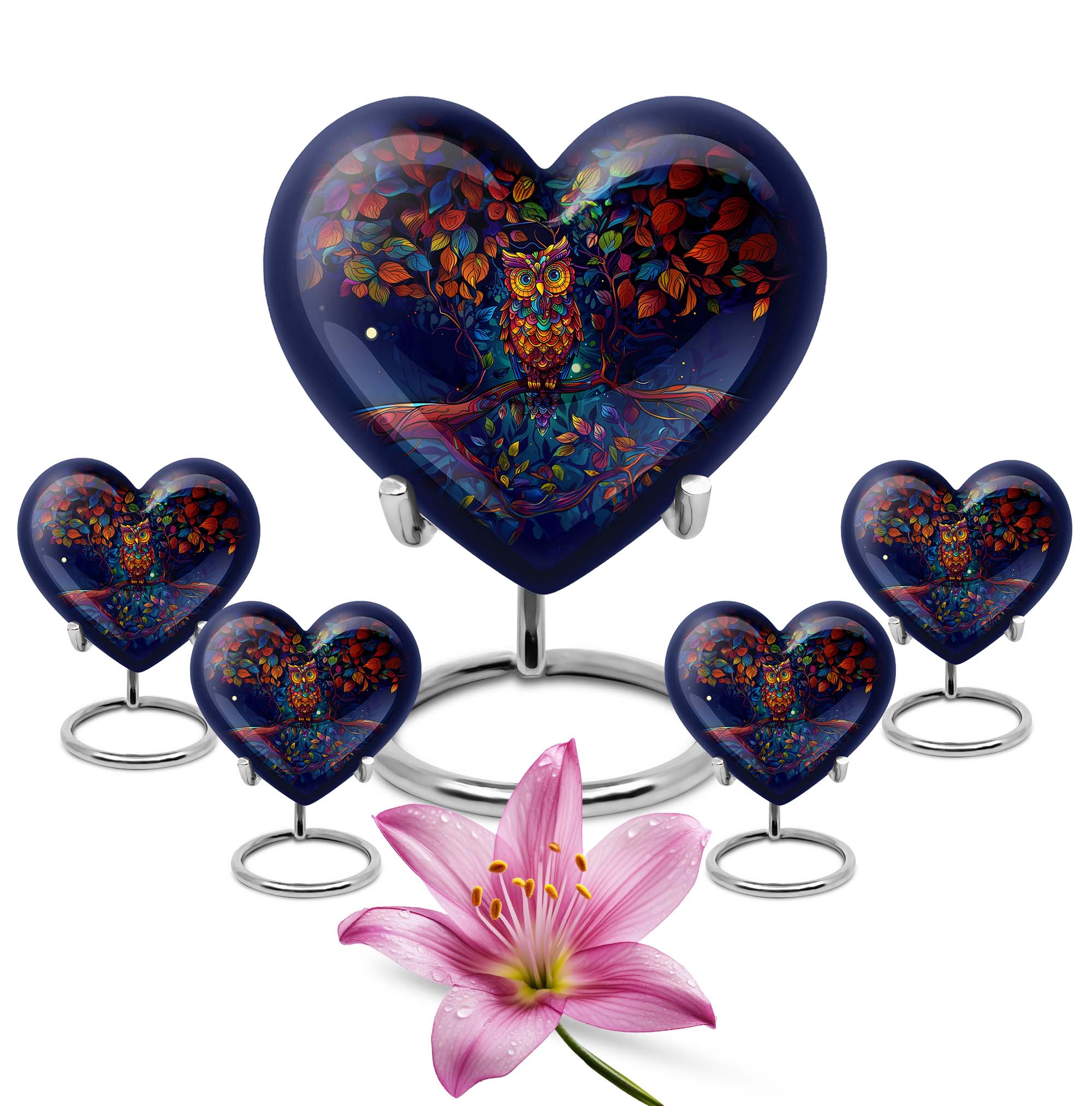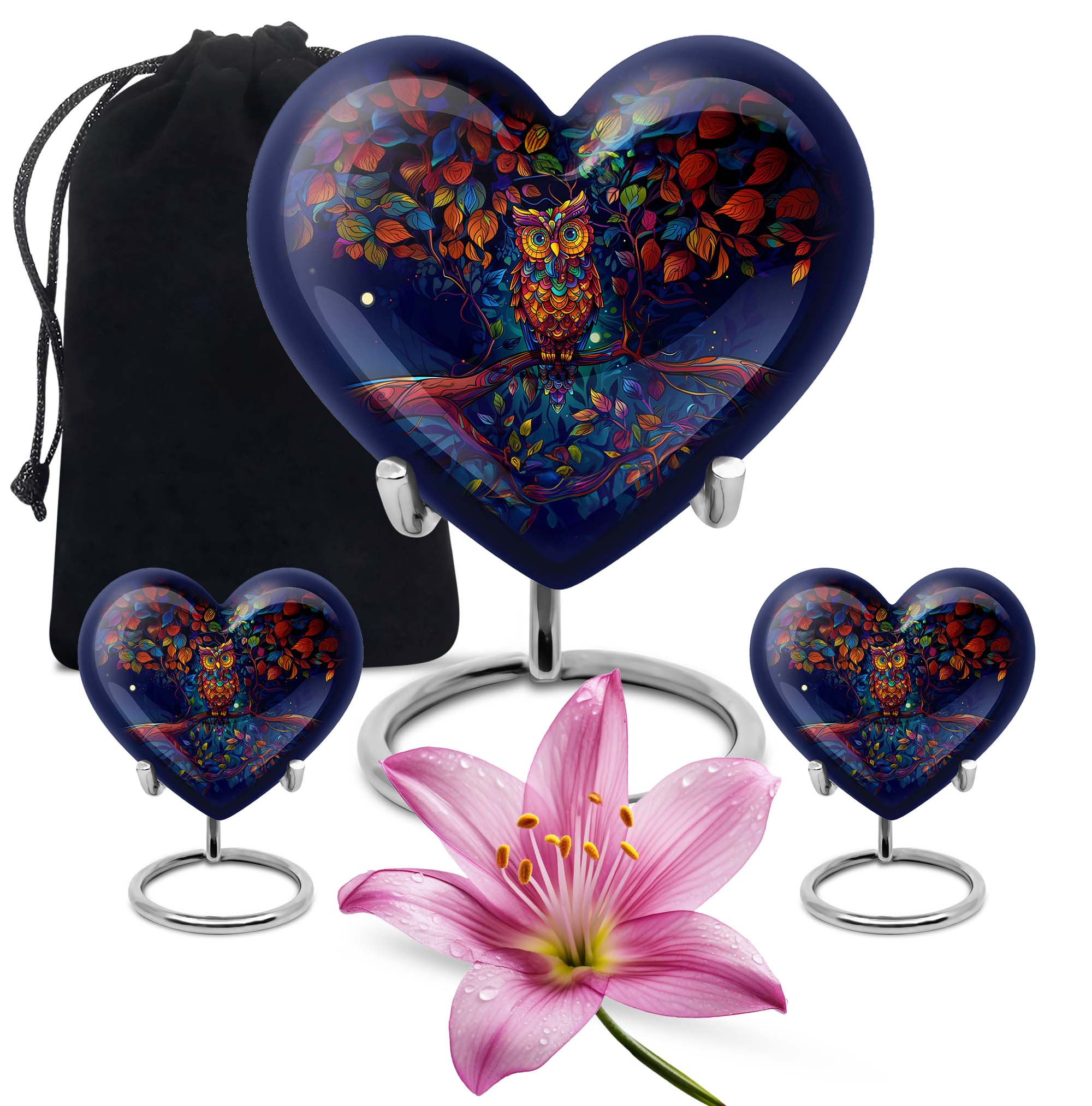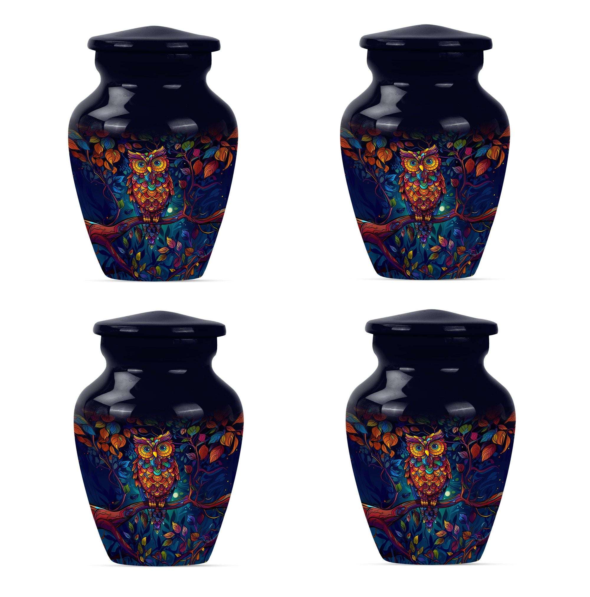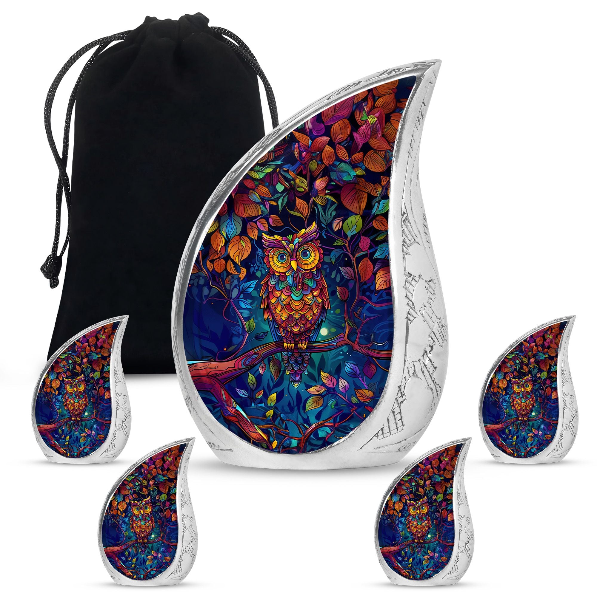 Crafted from durable aluminum, this urn offers both strength and elegance. The detailed owl artwork reflects peace and guidance, making it ideal as a human urn for ashes adult male or one of the most symbolic human urns for ashes adult female. Designed with a secure screw-top lid, it ensures ashes remain safe, whether used as a large urn for display, a burial urn, or paired with small urns for adult male or urns for human ashes adult female small size for sharing among family members.