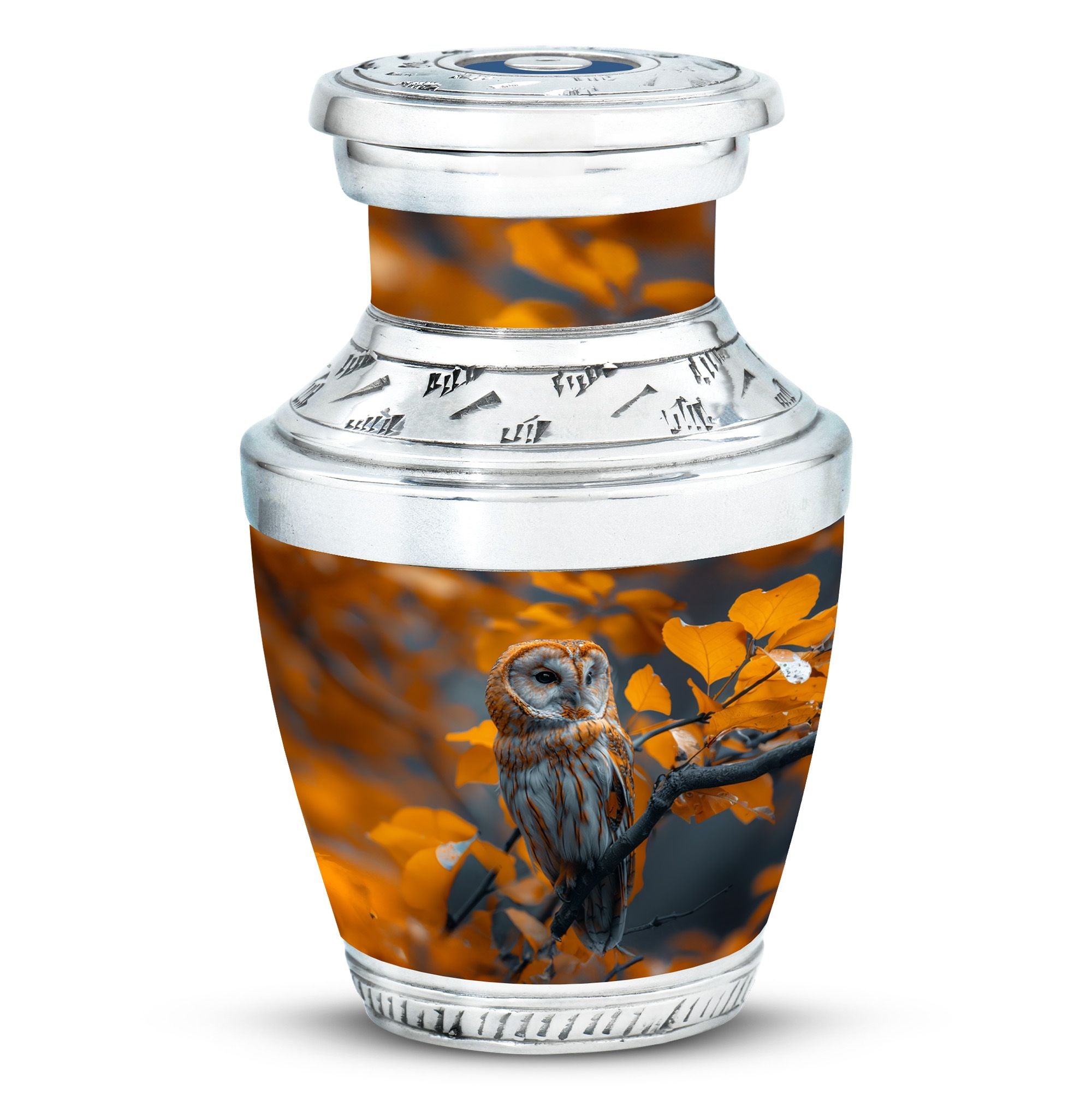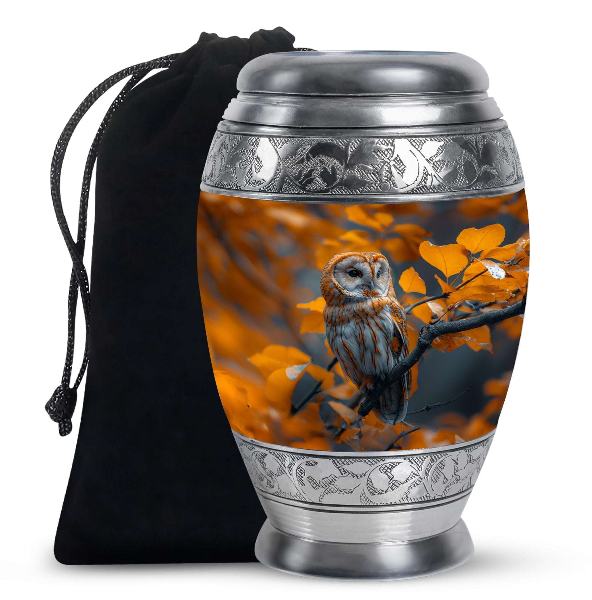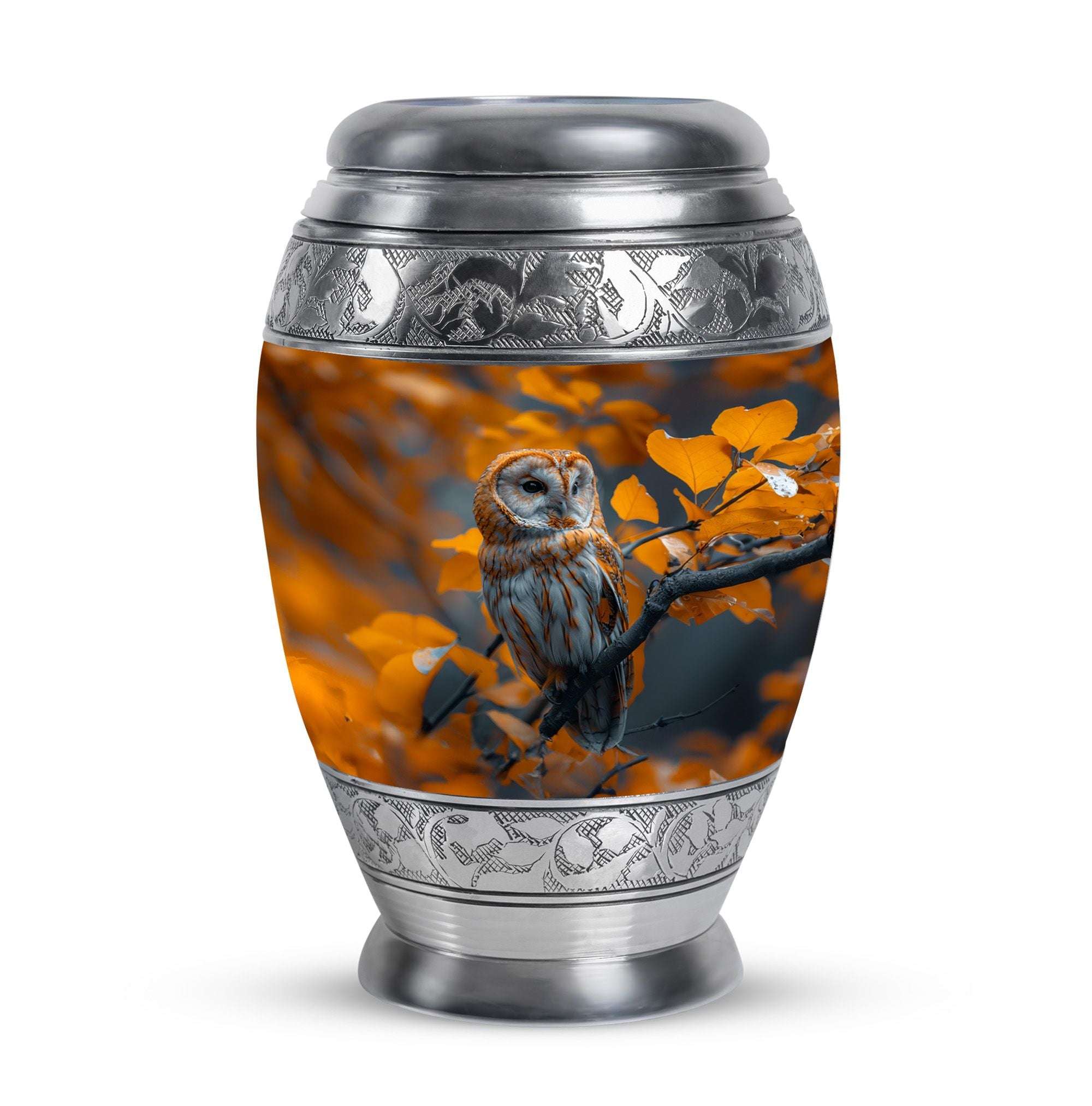 Expertly crafted from durable aluminium, this owl-themed urn features intricate detailing and a warm yellow finish that symbolizes hope and remembrance. Its elegant design ensures it is both a dignified display piece and a practical container for ashes. Suitable as urns for ashes adult male small, urn for human ashes adult female, or urns for ashes adult male small keepsake, it blends artistry with functionality for long-term keepsake or burial use.