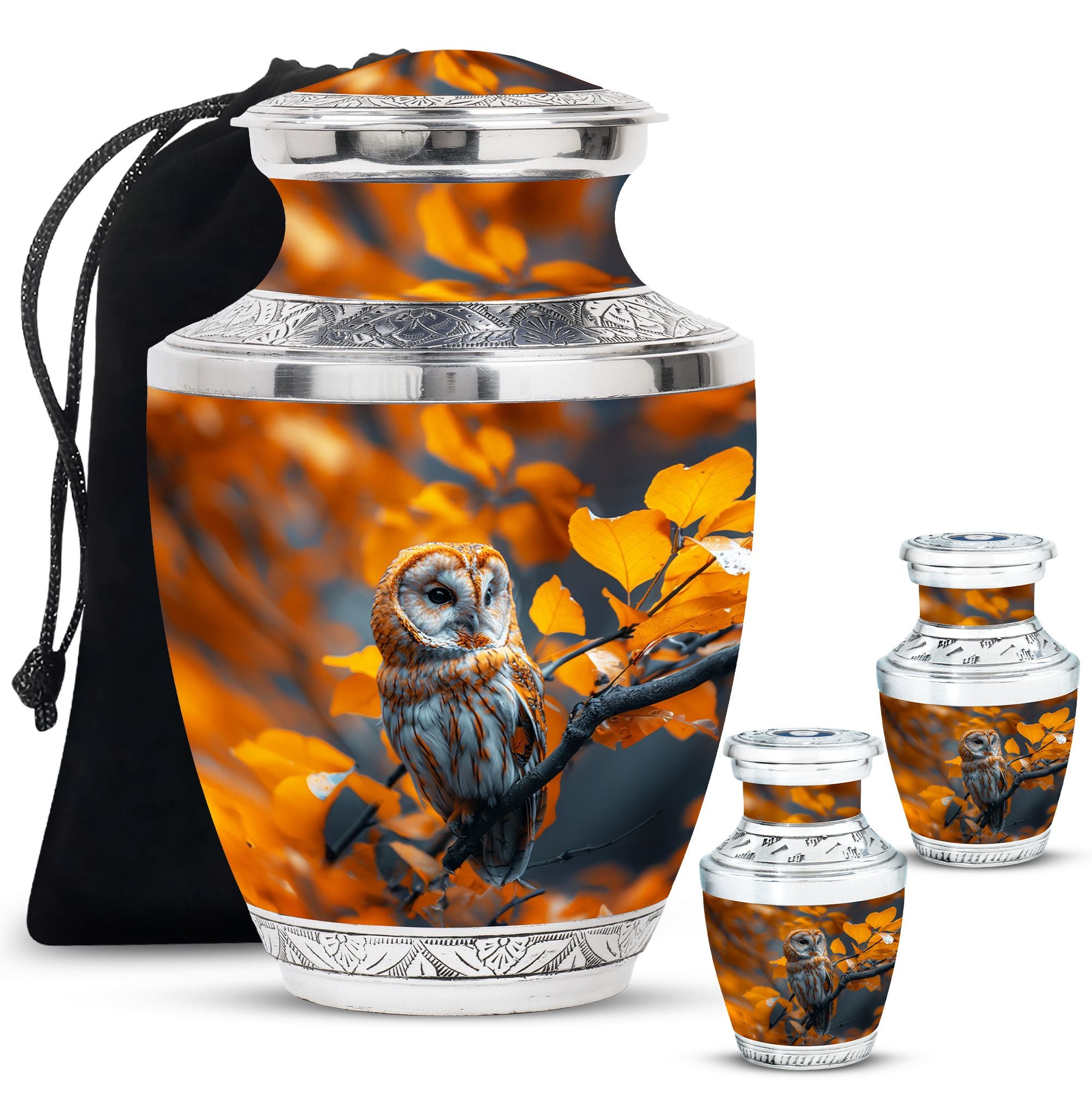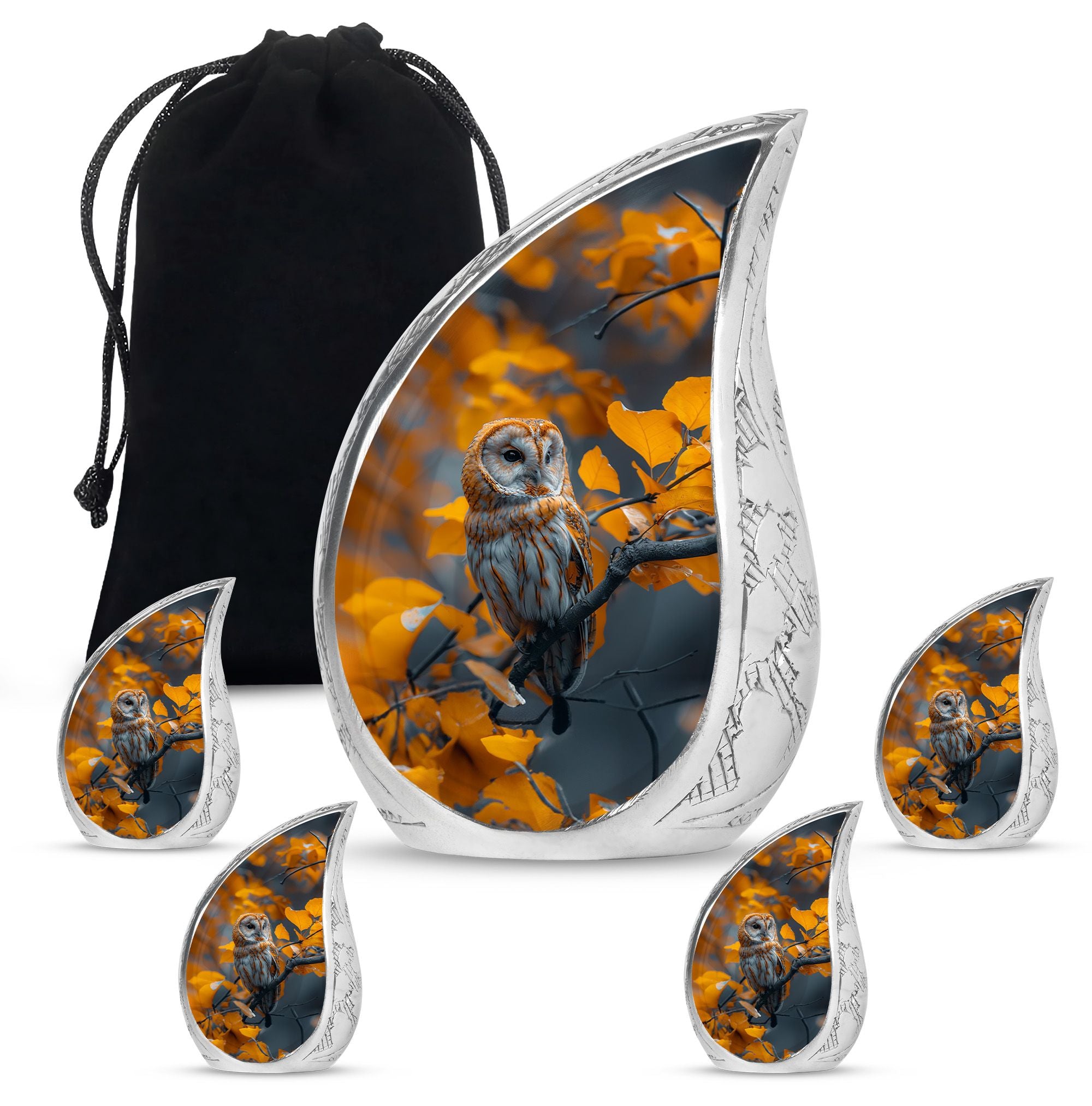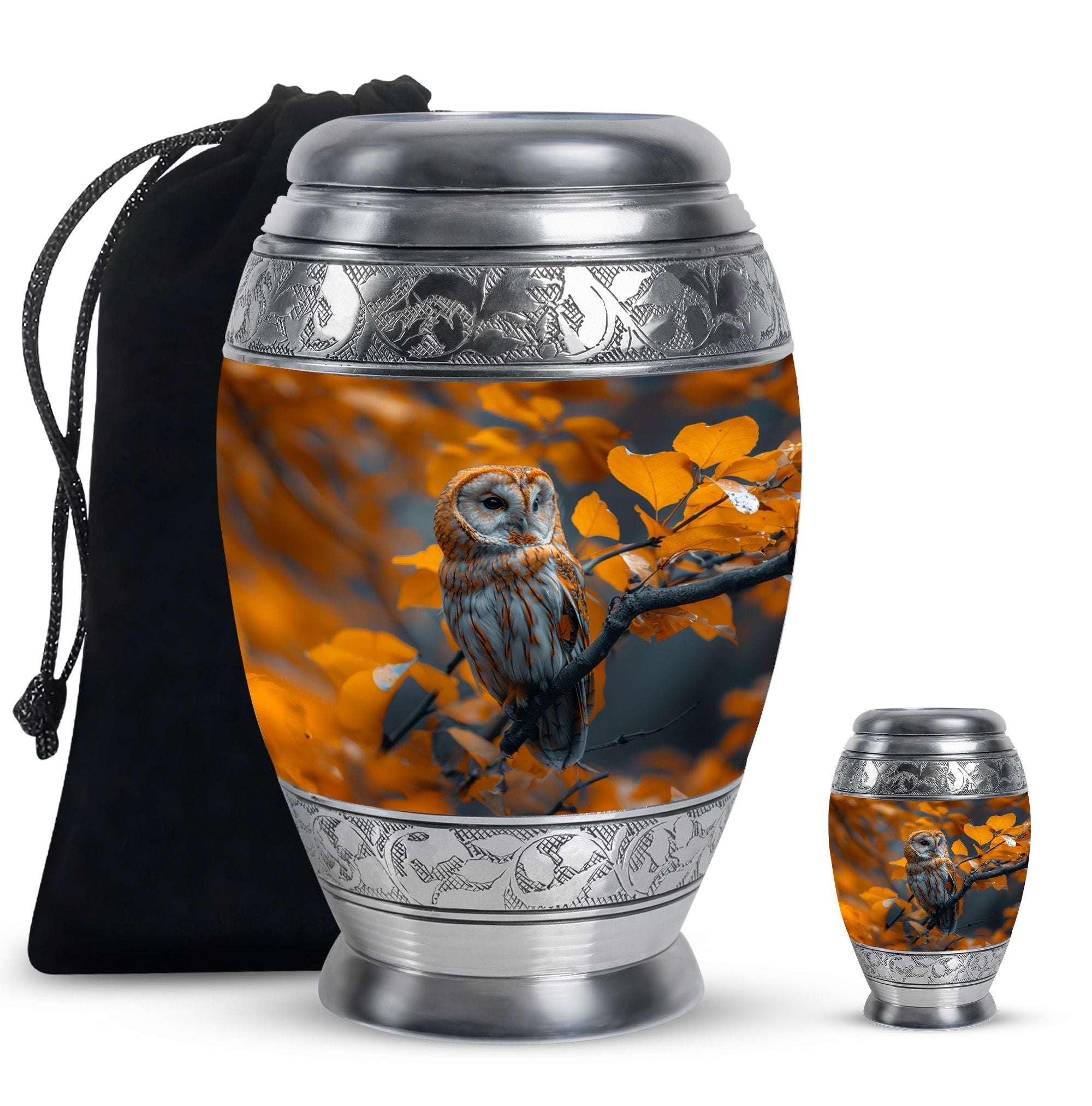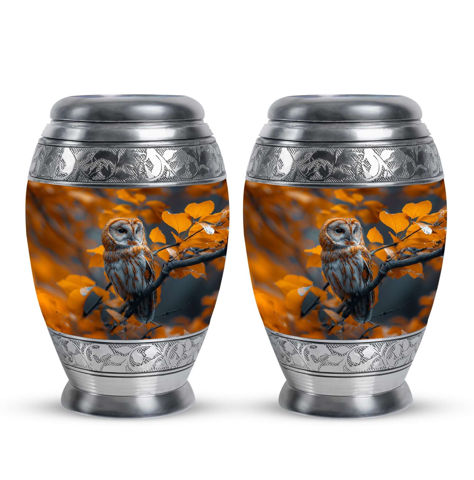 Expertly crafted from durable aluminium, this owl-themed urn features intricate detailing and a warm yellow finish that symbolizes hope and remembrance. Its elegant design ensures it is both a dignified display piece and a practical container for ashes. Suitable as urns for ashes adult male small, urn for human ashes adult female, or urns for ashes adult male small keepsake, it blends artistry with functionality for long-term keepsake or burial use.