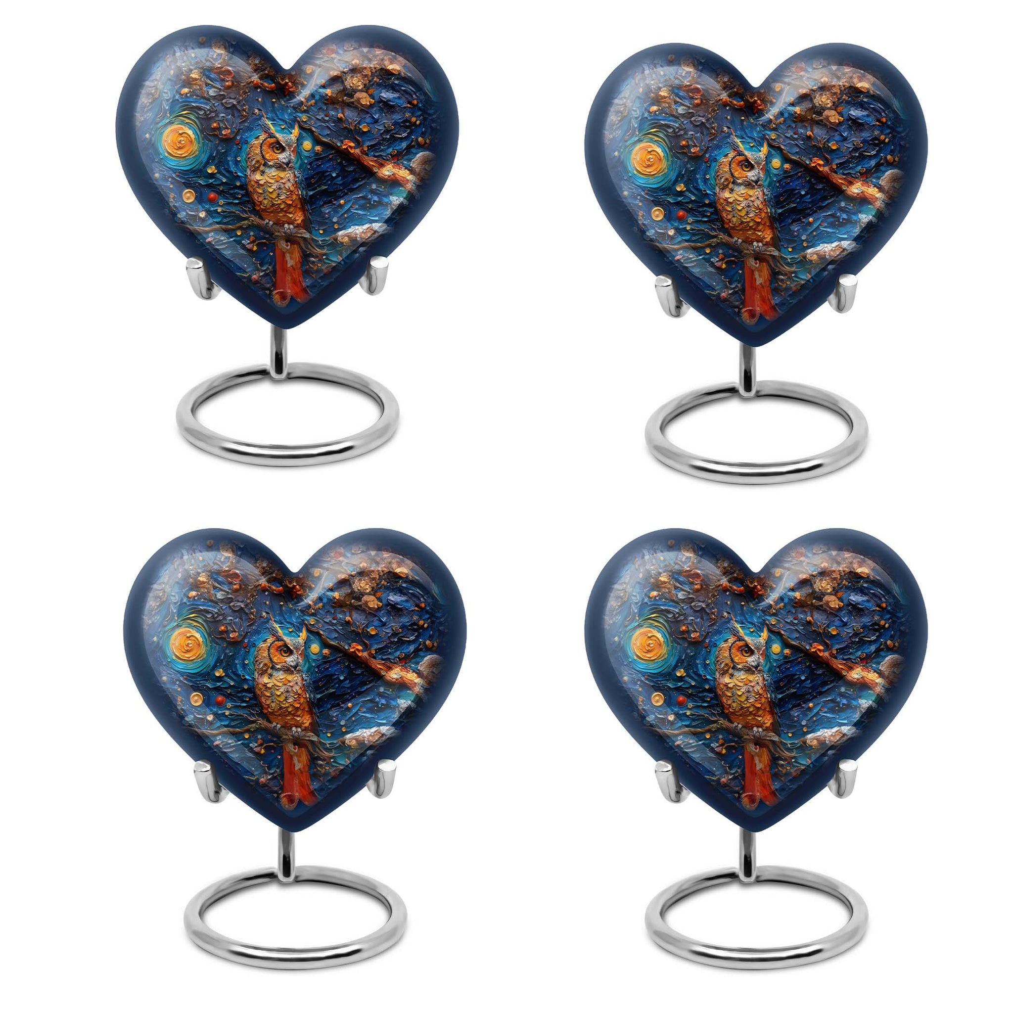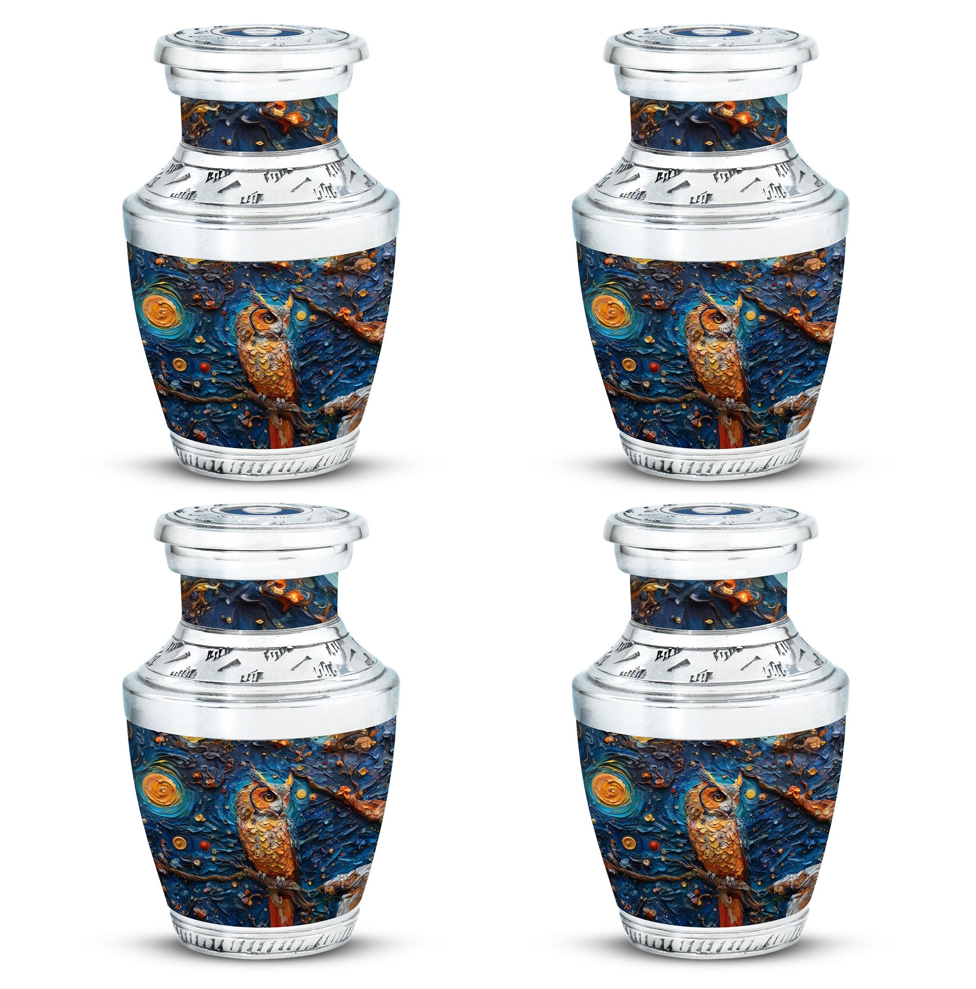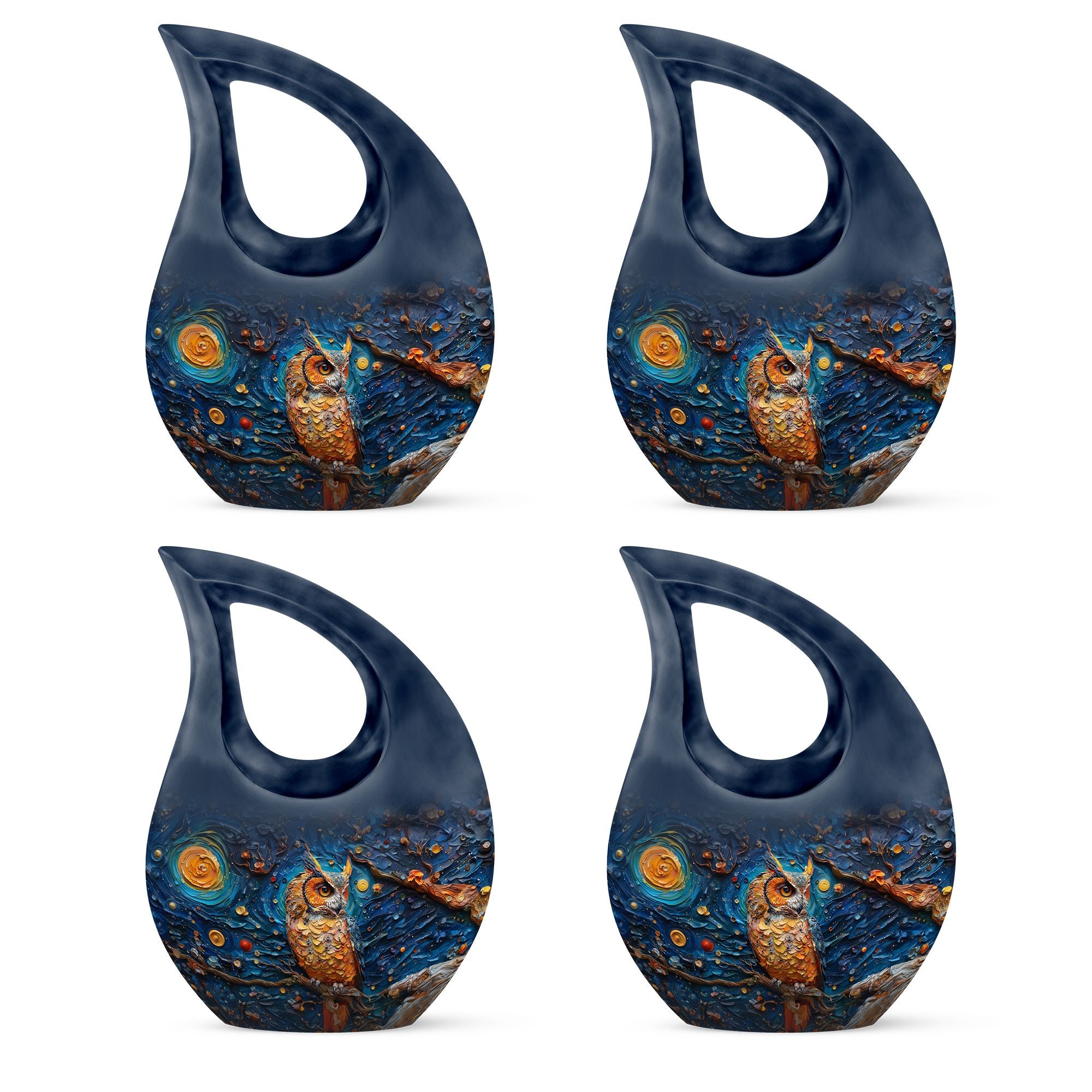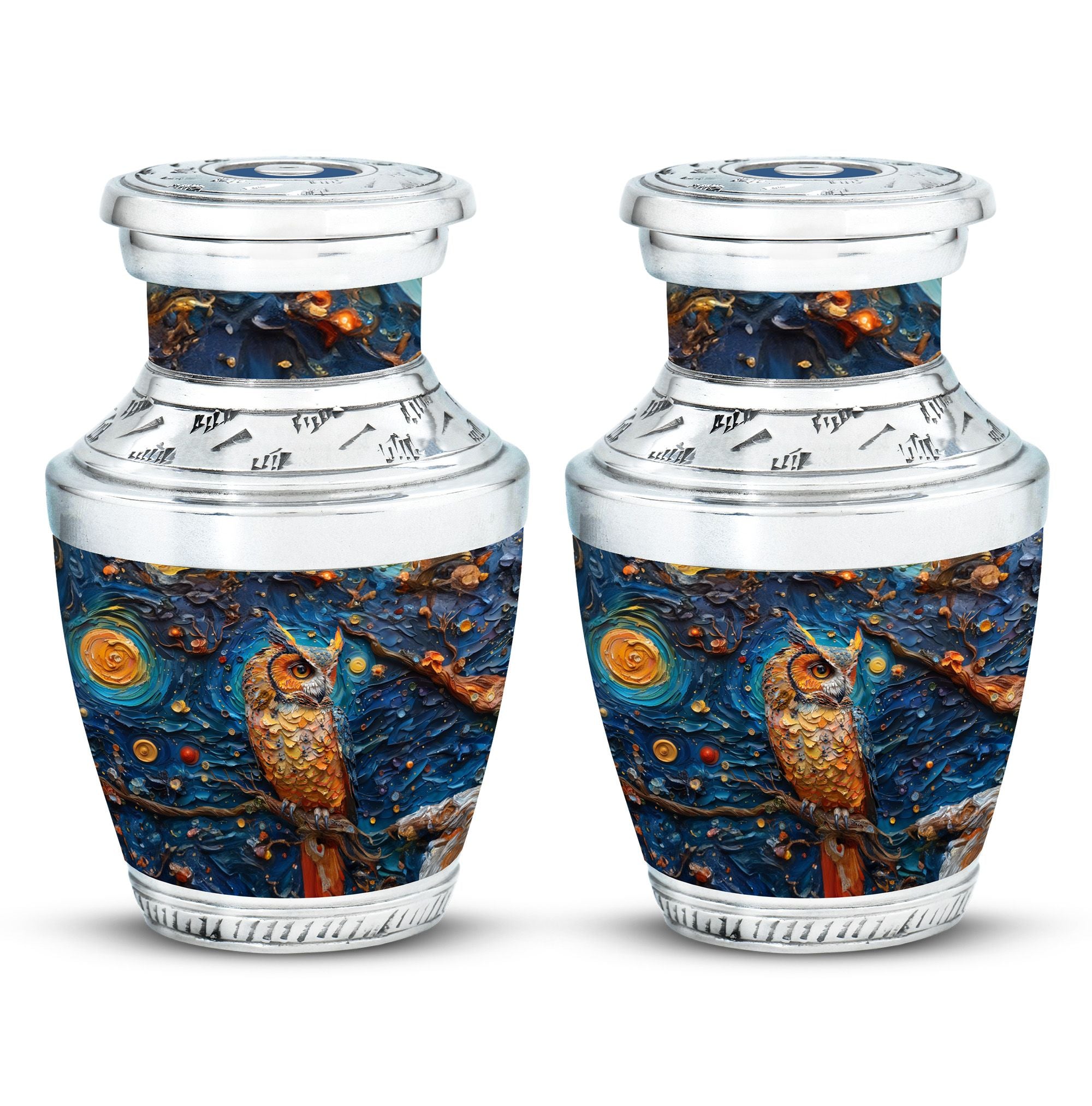 Crafted from high-quality aluminum, this urn blends artistry with durability. The intricate owl motif symbolizes guidance and protection, while the smooth finish ensures it looks elegant in any setting. Designed as both a funeral urn for women and a meaningful urn for men & women, this piece serves as a versatile memorial. Its secure screw-top lid keeps ashes safe, and its size makes it suitable for use as a large urn for human ashes or as part of a family memorial display with mini small urns for men or mini urns for ashes for women.