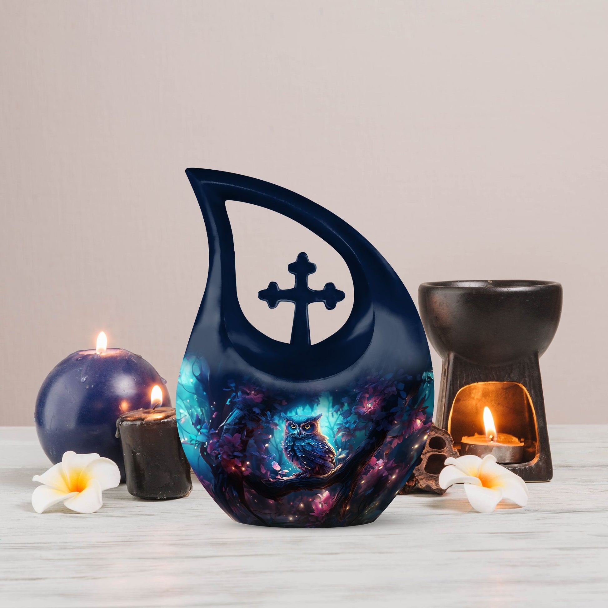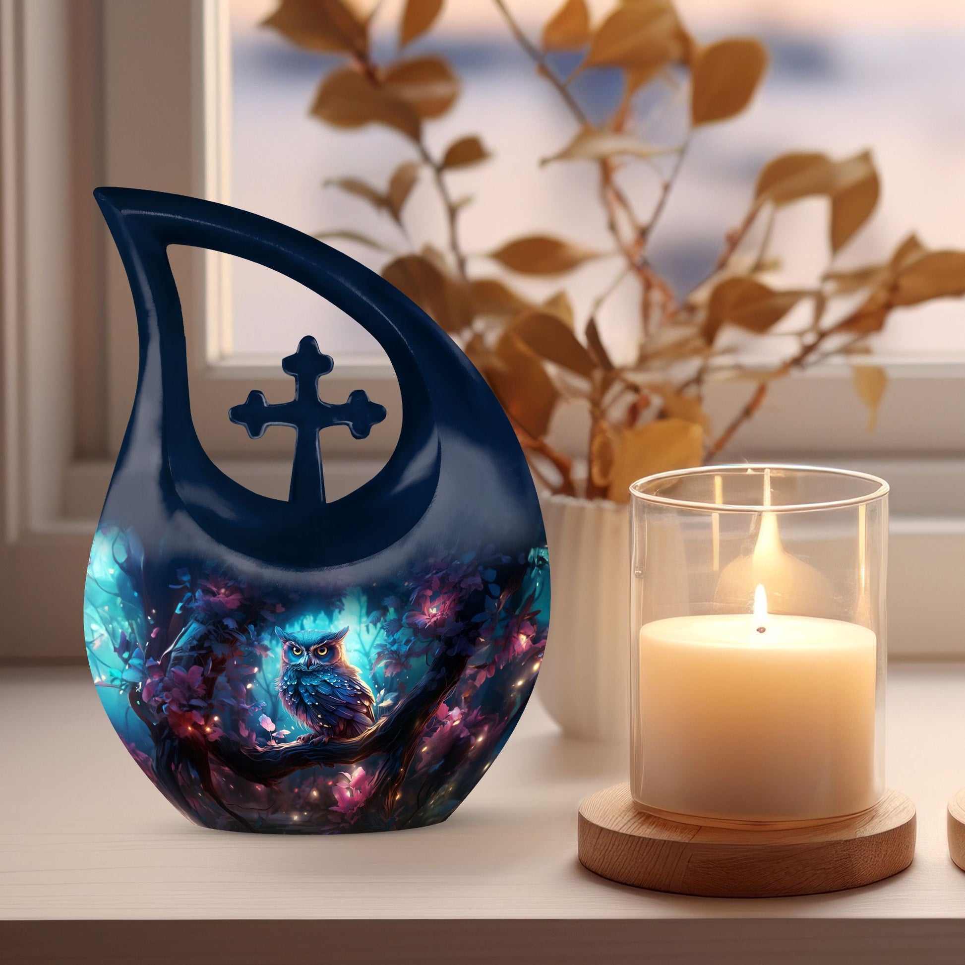 Celebrate the legacy of a loved one with the Blue Owl Cremation Urn for Human Ashes, a striking tribute that embodies wisdom, serenity, and eternal devotion. Designed for both men’s urns for human ashes and funeral urns women, this piece reflects a balance of strength and tranquility — the perfect way to honor a guiding soul who brought light and insight to every life they touched.