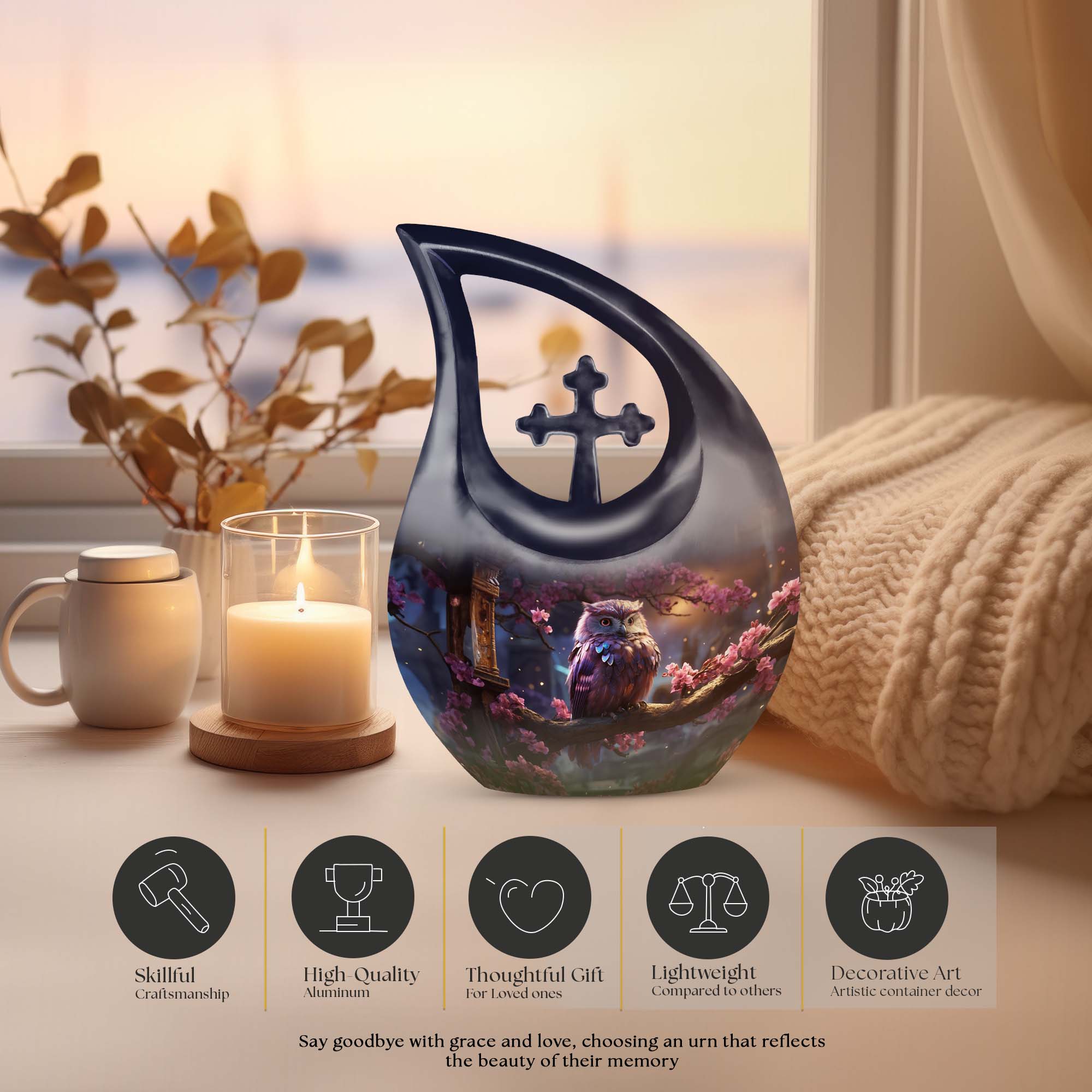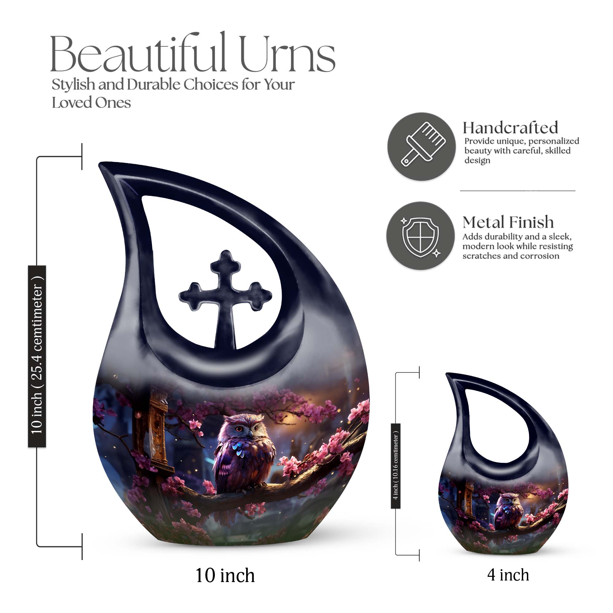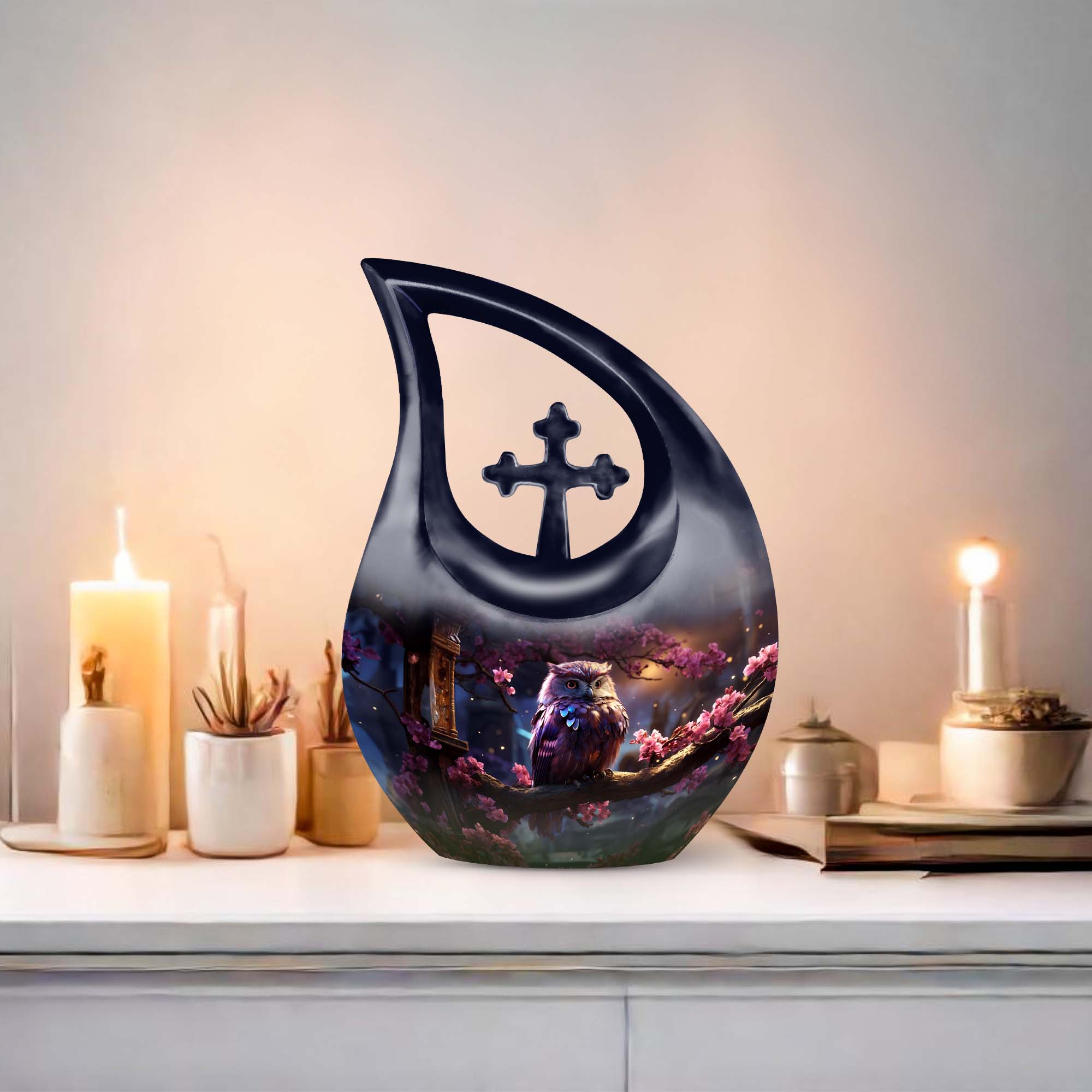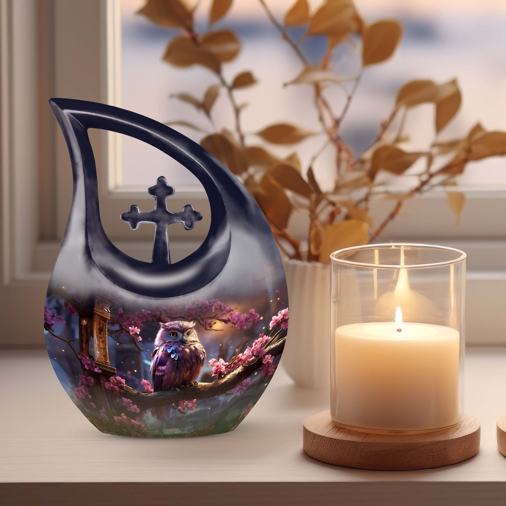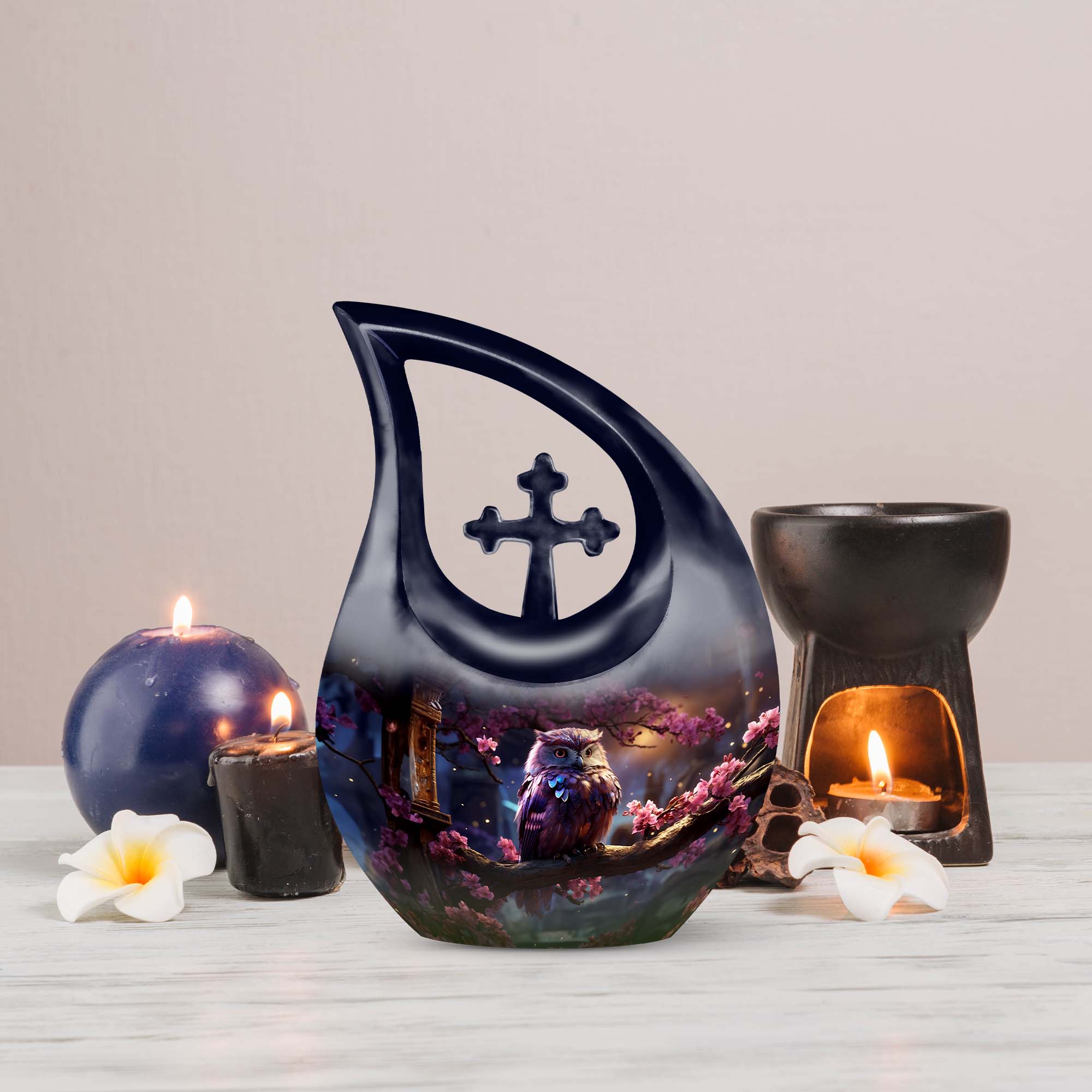 This large human ashes urn honors the spirit of those who brought light and wisdom into the lives of others. The owl, long a symbol of guidance and protection, represents the soul’s journey into eternal peace — a meaningful emblem of remembrance and comfort.