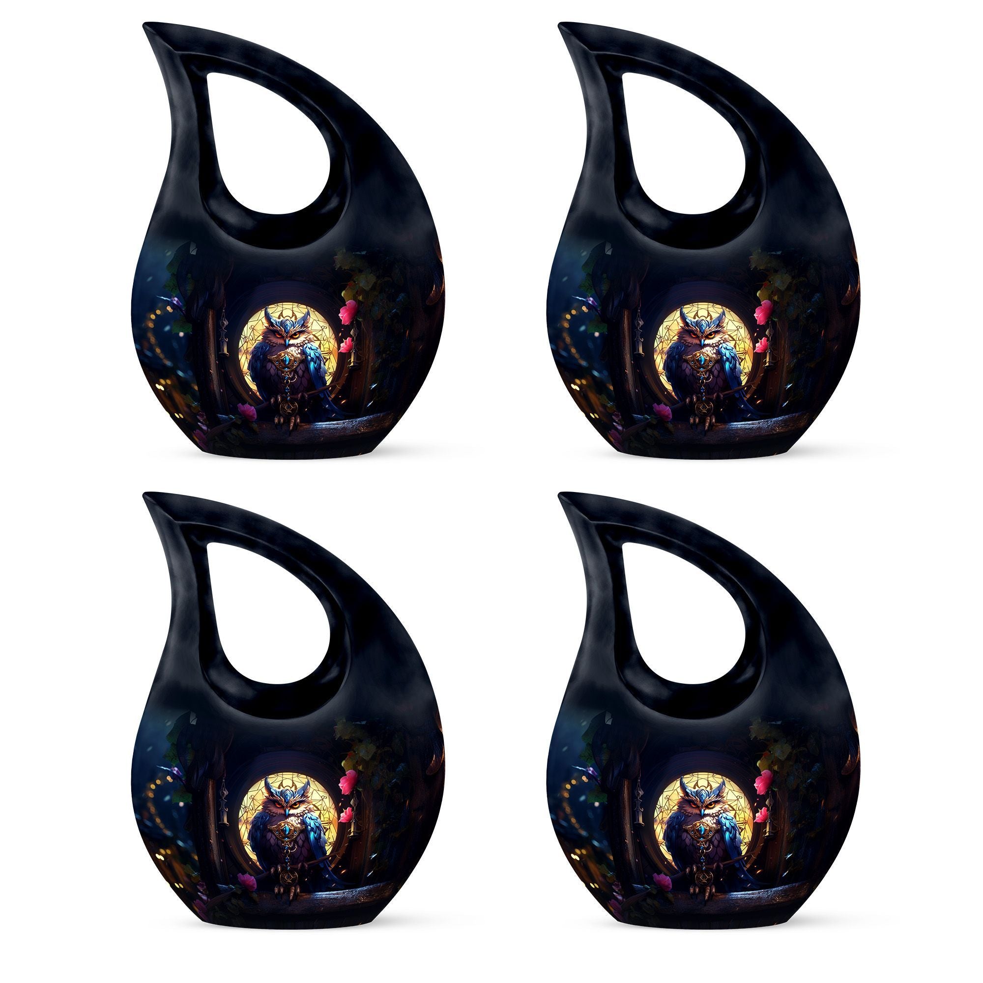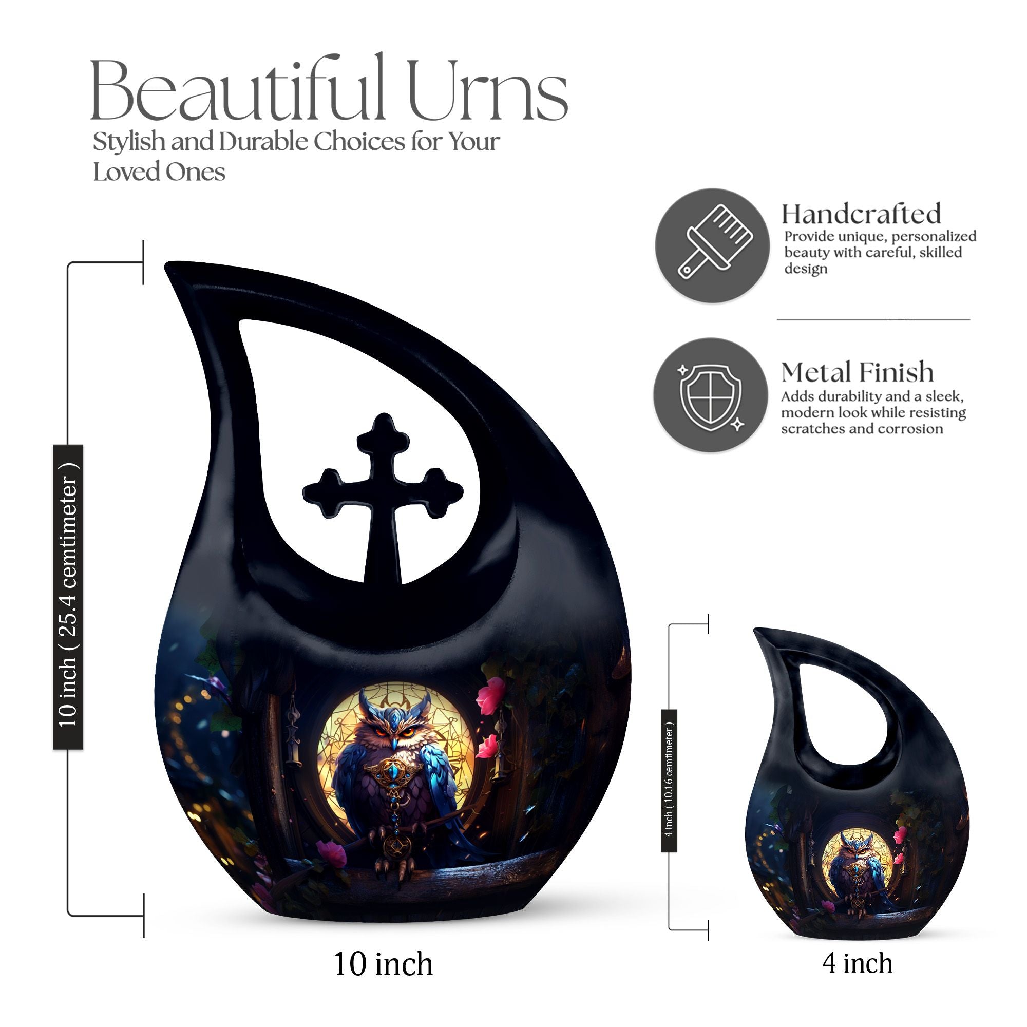 Expertly crafted from premium aluminum, this mystic owl urn set features intricate owl engravings with a soft, celestial glow. Its durable construction and smooth finish make it one of the finest urns for human ashes adult male or female options for both display and burial. Available in full-size and small urns for human ashes adult female keepsakes, it’s ideal for families wishing to share memories.