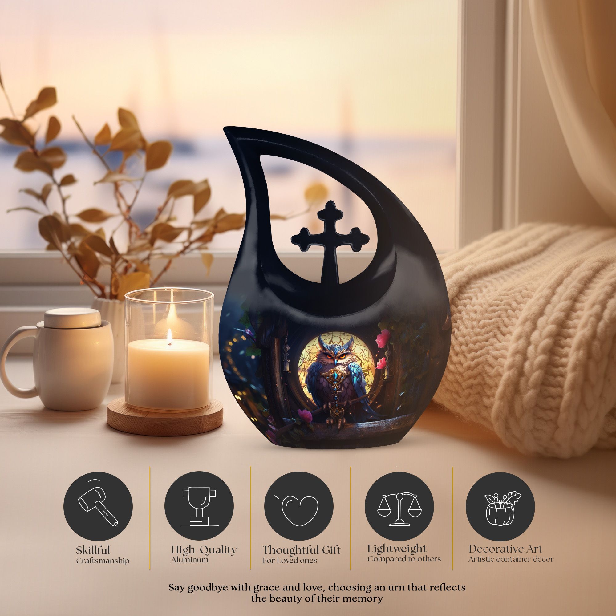 The Sacred Owl Memorial Urn For Ashes beautifully captures the owl’s symbolism of wisdom and protection, offering a peaceful resting place for your loved one. Designed for both men and women, this urn for ashes adult male or female serves as a meaningful tribute that reflects dignity, serenity, and everlasting love.