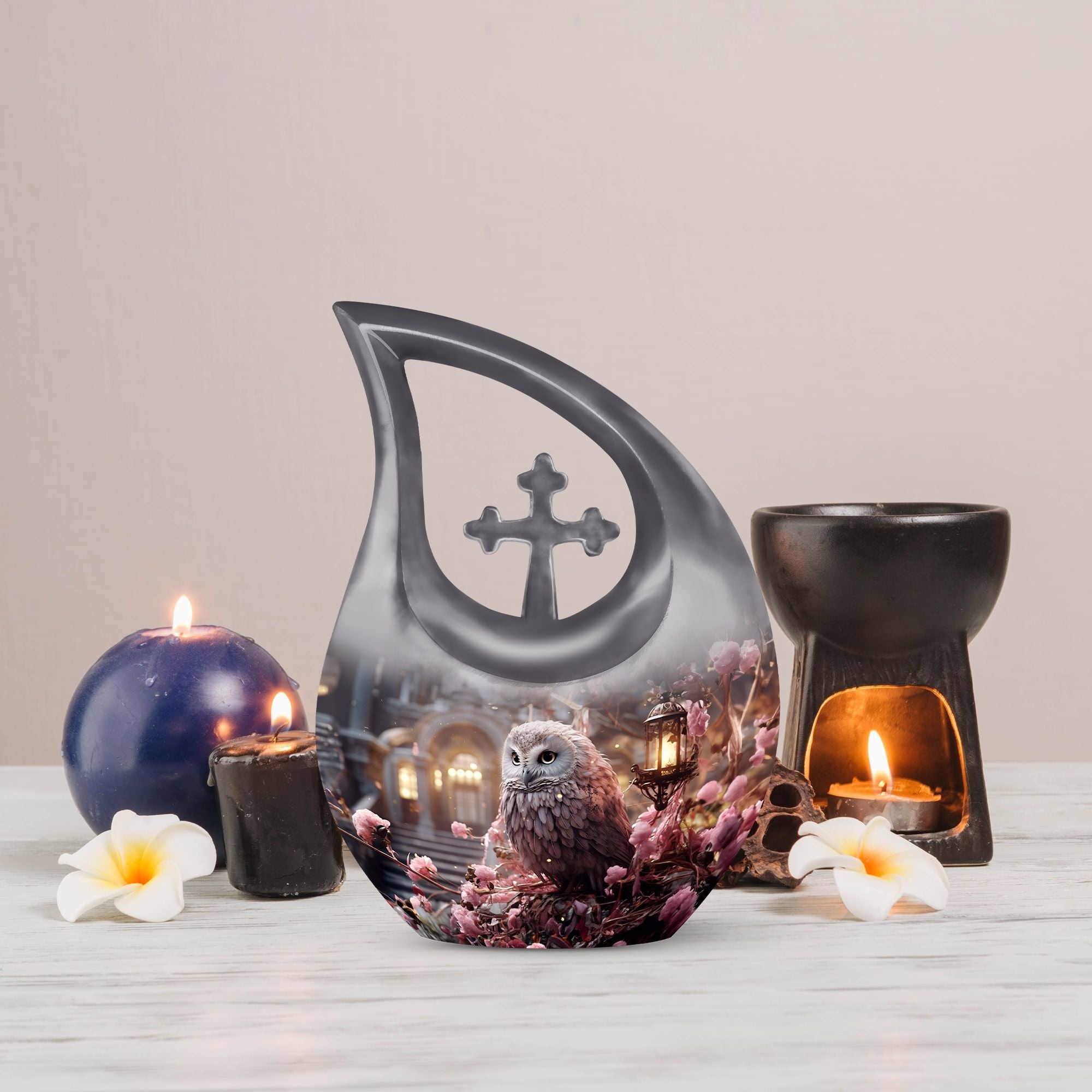 Honor your cherished one with the Cherry Blossoms Owl Memorial Urn — a blend of artistry, compassion, and everlasting beauty.