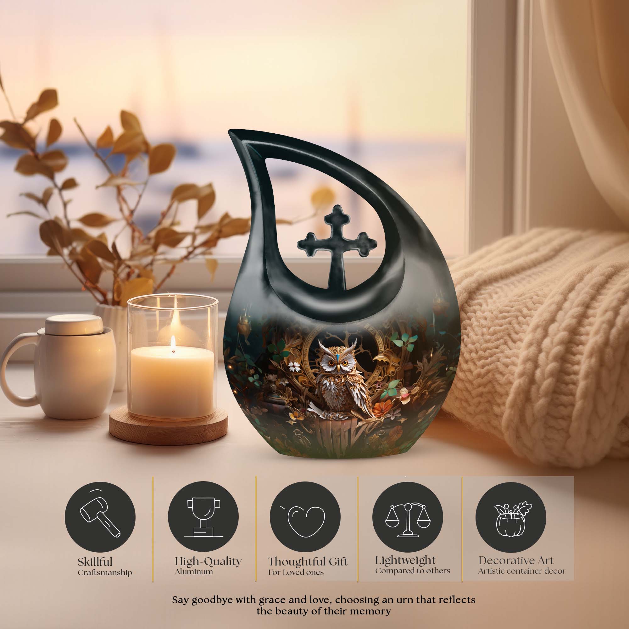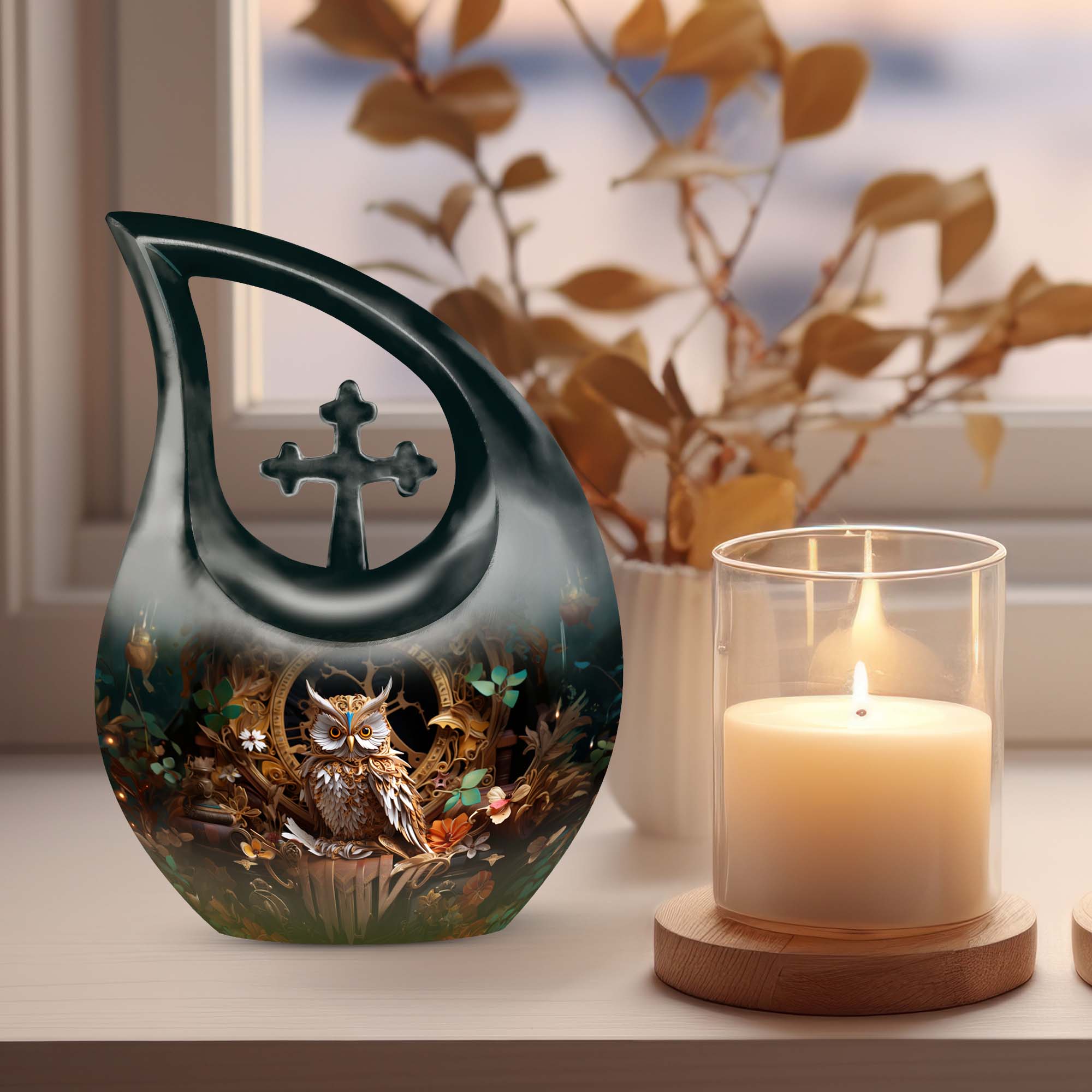 The Magical Owl Urn For Funeral Ashes embodies wisdom, strength, and serenity. Featuring a captivating owl motif surrounded by a soft, luminous finish, this urn serves as a meaningful women adult urn or men’s memorial piece, honoring the memory of someone truly special.