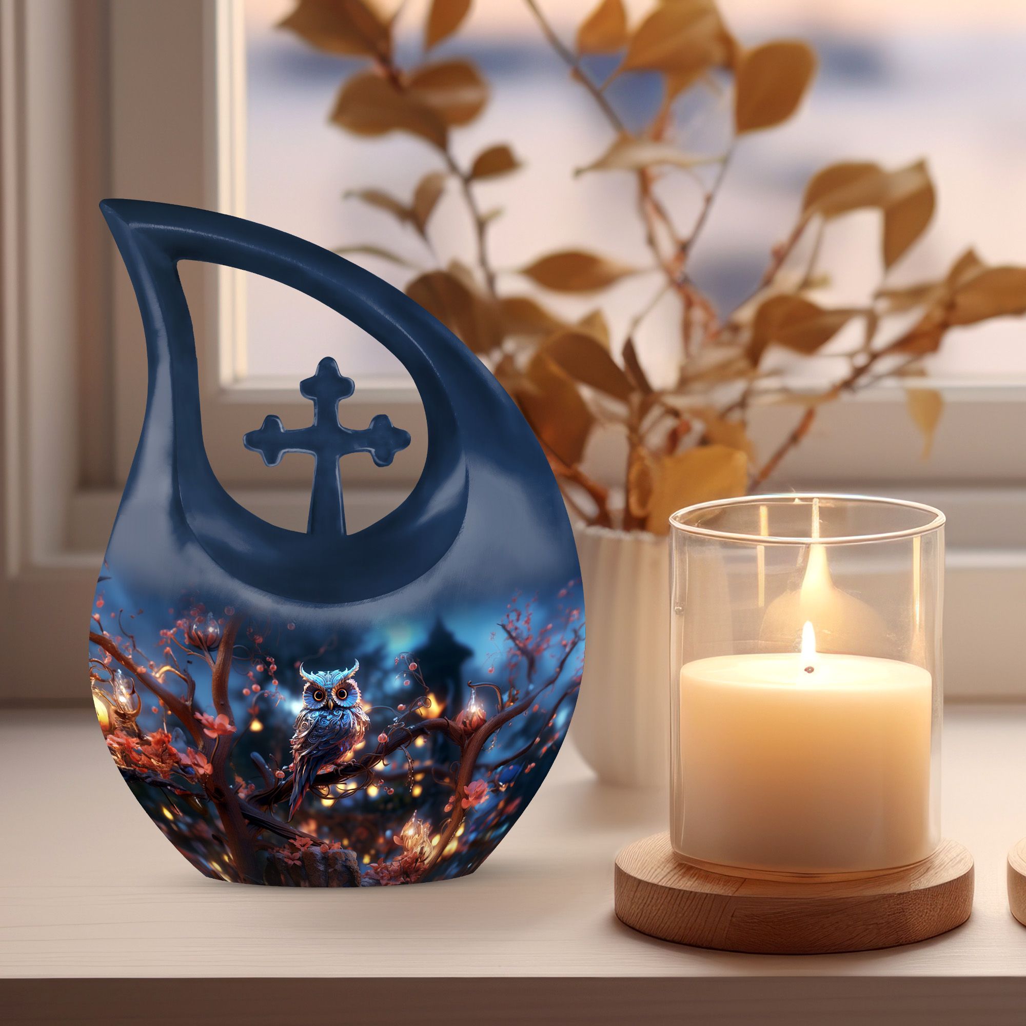 Celebrate a life filled with wisdom and love with the Blue Owl Cremation Urn for Human Ashes, a breathtaking tribute that embodies serenity and strength. The owl, a symbol of protection and spiritual guidance, makes this urn an ideal choice among urns for human ashes large adult and funeral urns for human ashes adult for those remembered with dignity and grace.