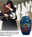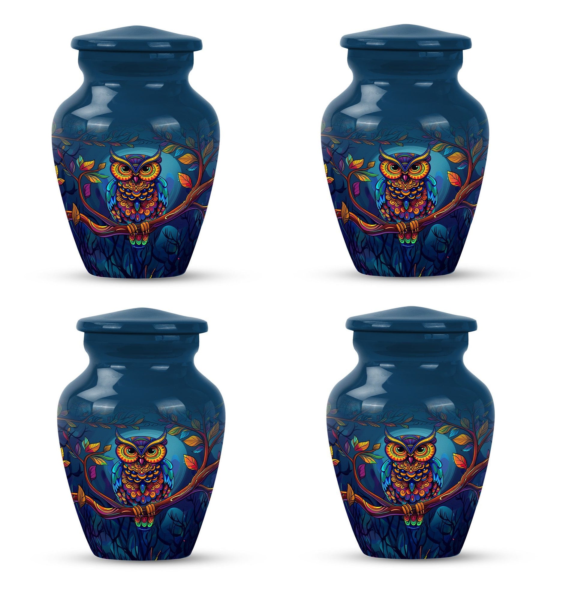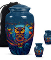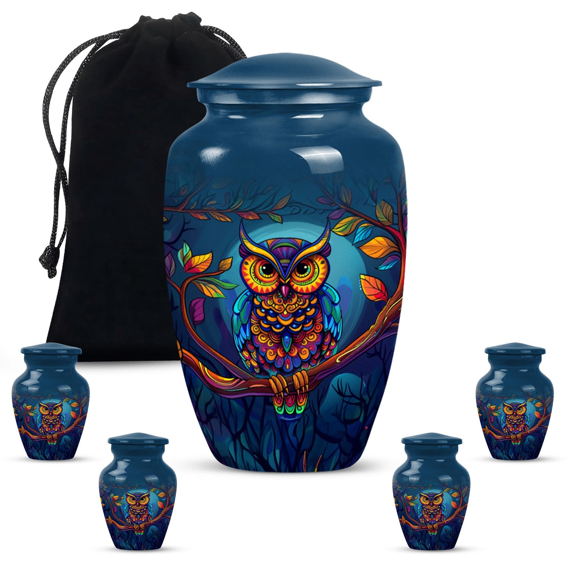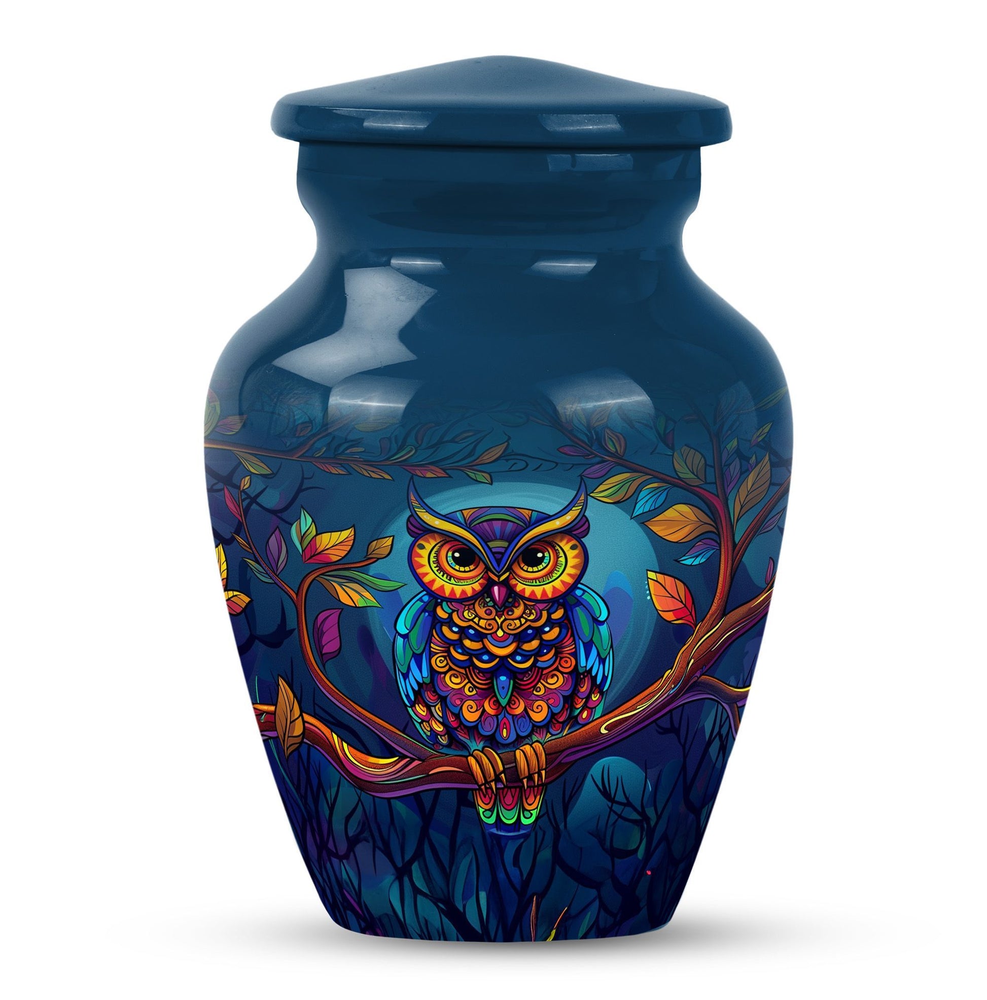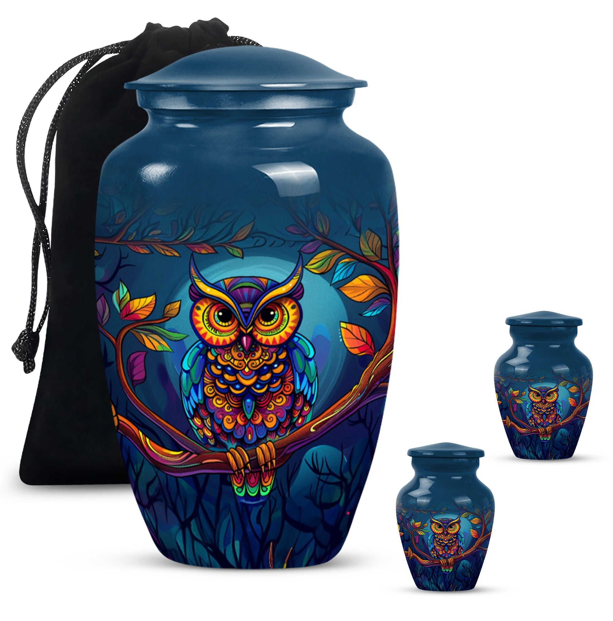 Our distinctive Owl Urn is an expressive piece from our Memorial Ceremony Supplies range, perfect for those seeking a unique, heartfelt tribute. Crafted from high-quality aluminium, this durable 10-inch large urn is designed to securely hold up to 200 cubic inches of ashes. Its abstract theme adds an artistic flair, complementing its classical urn shape. The product weighs only 3.3 pounds, making it a sturdy yet portable choice as an urn for ground burial. In addition, this cremation urn allows for personalized expressions of care through customized engraved names. The package includes a soft velvet pouch providing further protection and proper containment of the ashes. This listing does not include any specific design elements as it emphasizes the urn's primary and abstract nature. Remember your loved ones with our owl memorial urn for women ashes - a unique tribute for any adult female. It's more than just an urn; it's a memory holder.