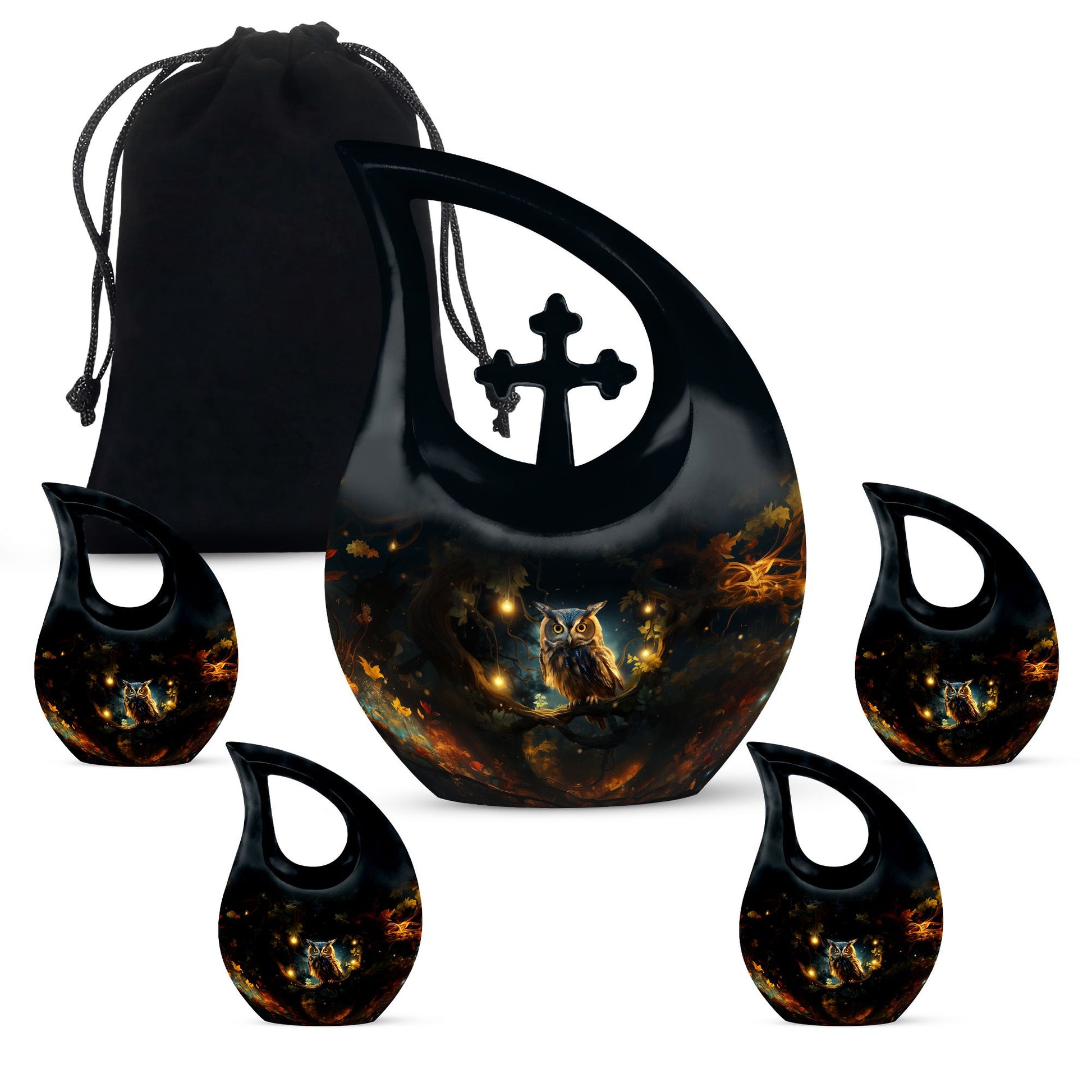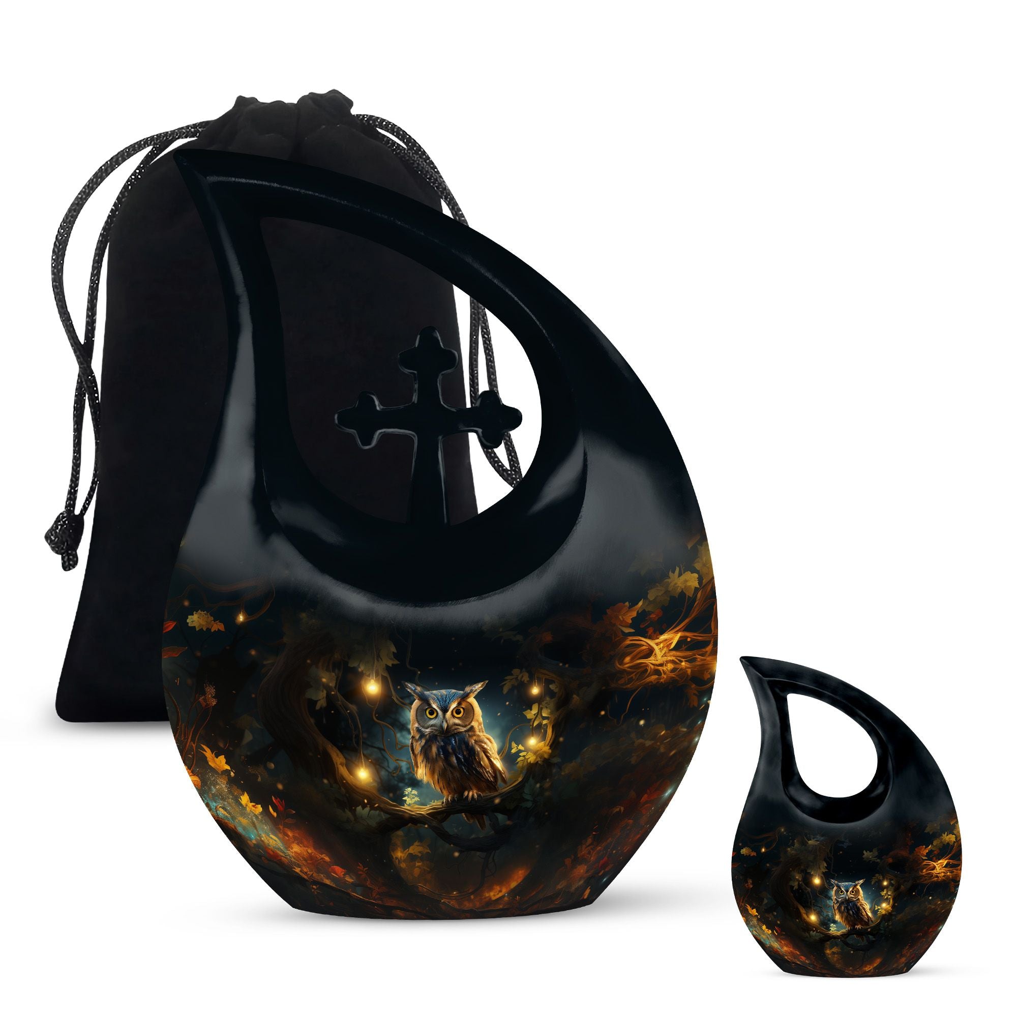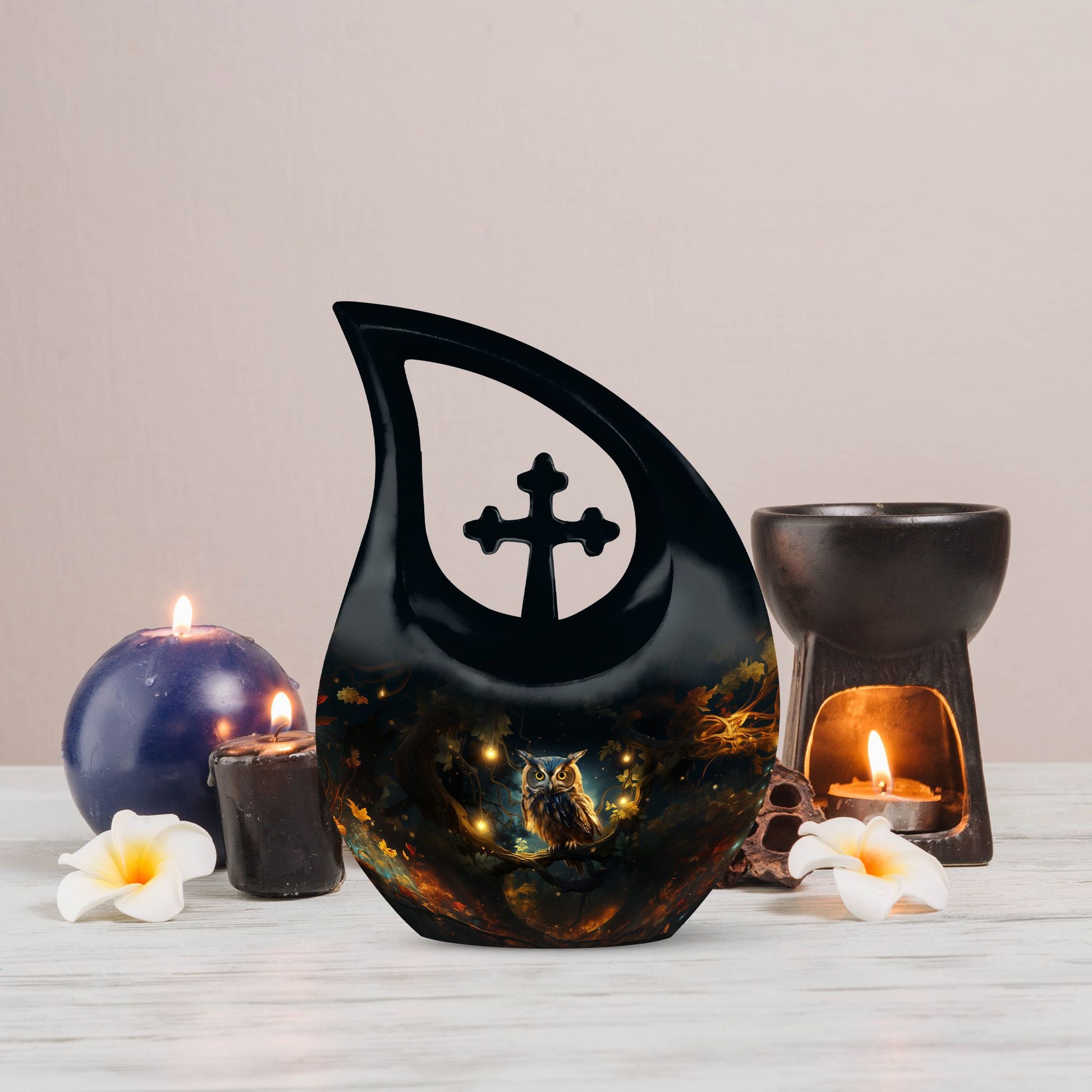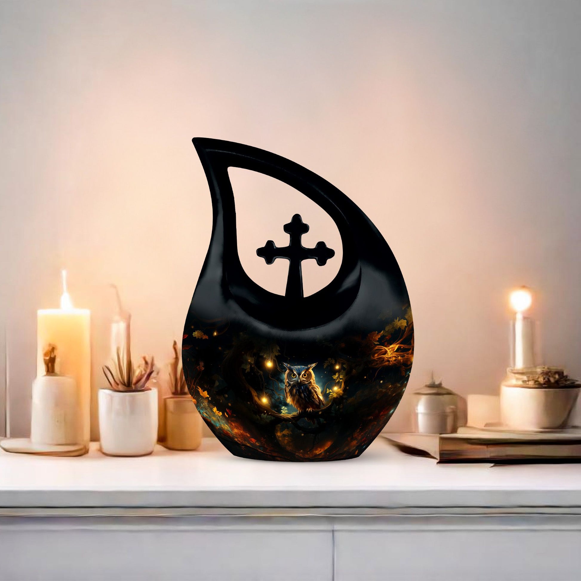 This large human ashes urn reflects the calm wisdom of the owl and the peaceful transition of autumn — a reminder that love and spirit never fade. Whether chosen as a large cremation urn or centerpiece urn for ashes adult male large, it honors a life well-lived with grace and dignity.