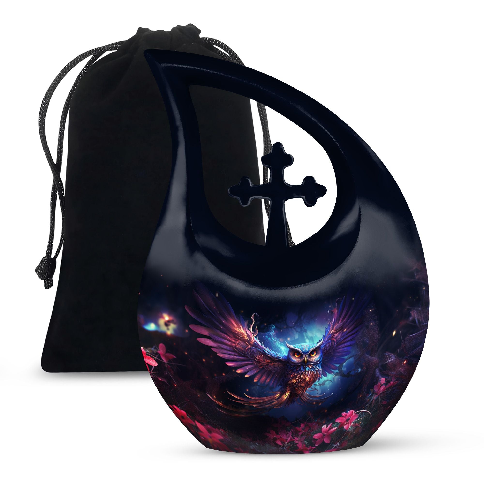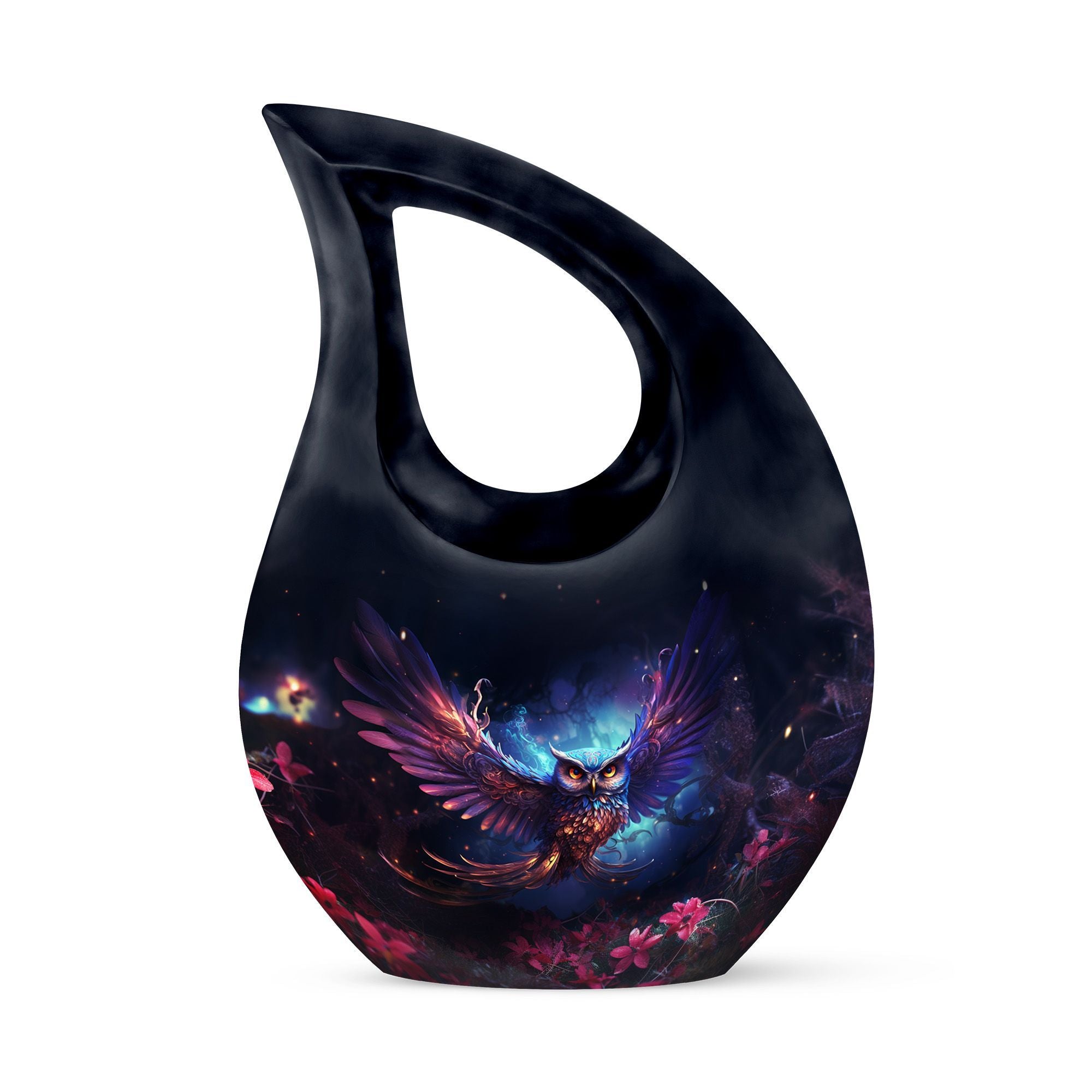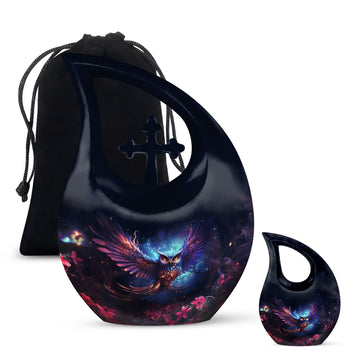 The Magical Owl Memorial Urn Combo Set is a stunning tribute to wisdom, love, and eternal peace. Designed with a majestic owl motif, this large cremation urn captures the essence of insight and serenity, making it a meaningful memorial for a beloved family member. Suitable for both men and women, it serves as an elegant funeral urn for human ashes adult that reflects dignity and everlasting remembrance.