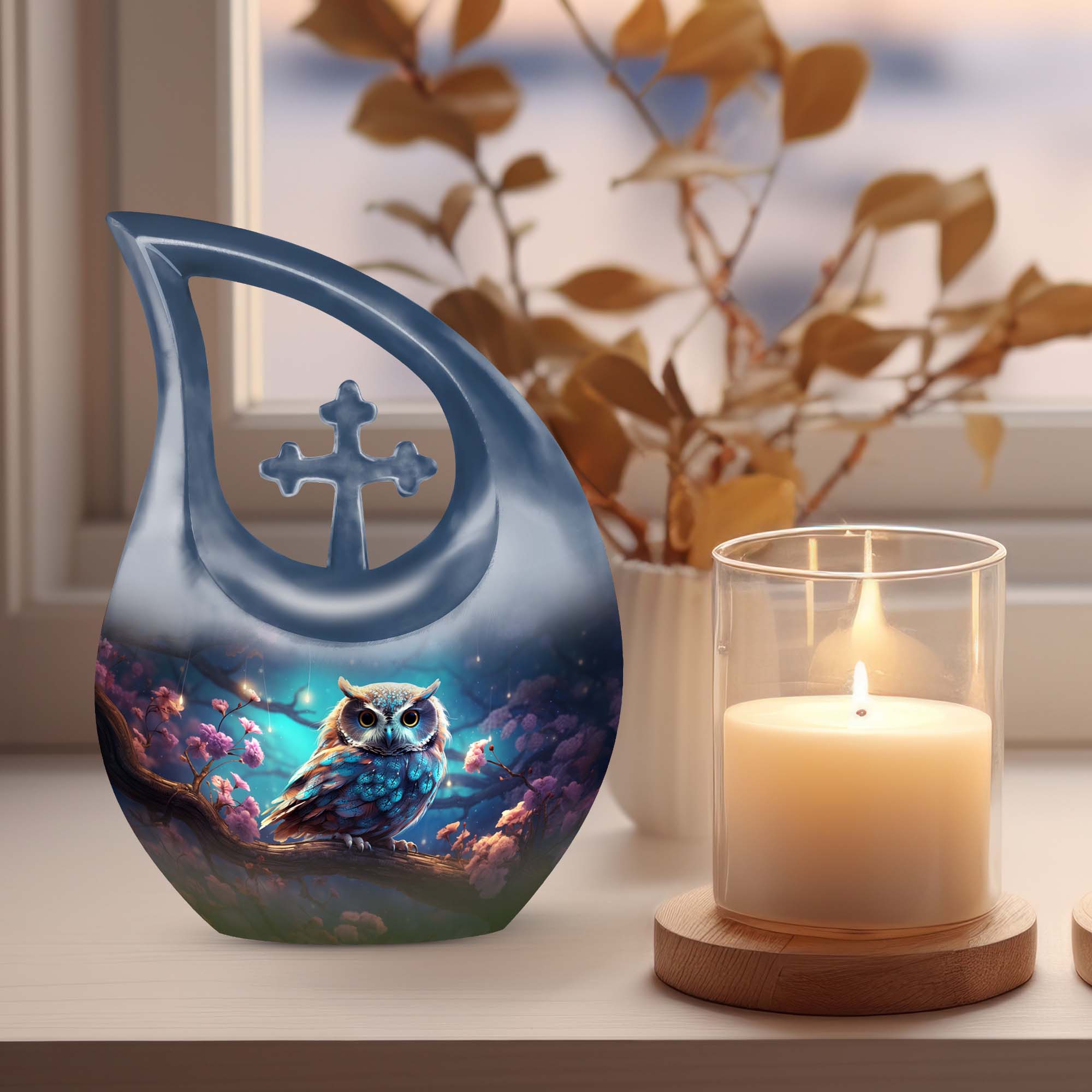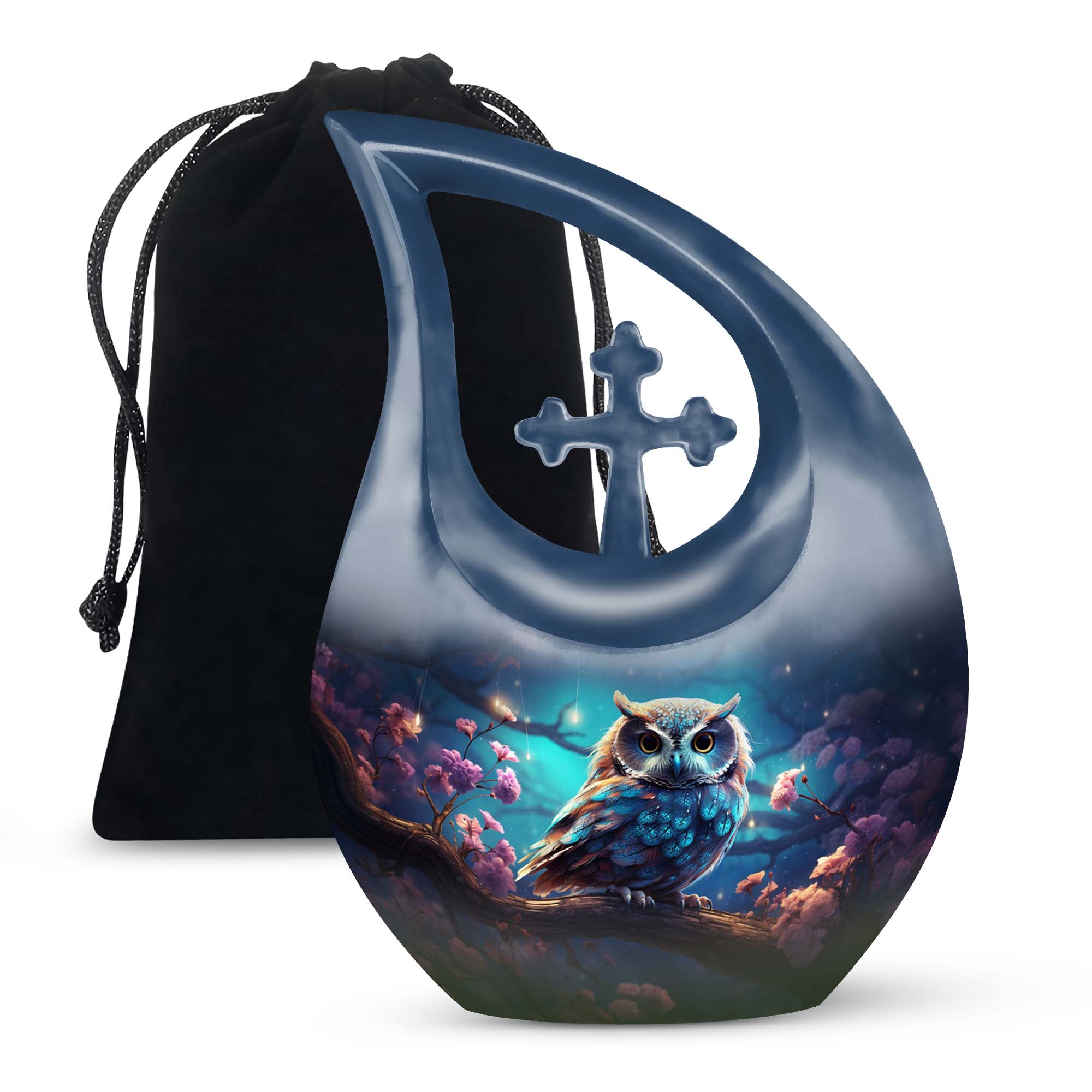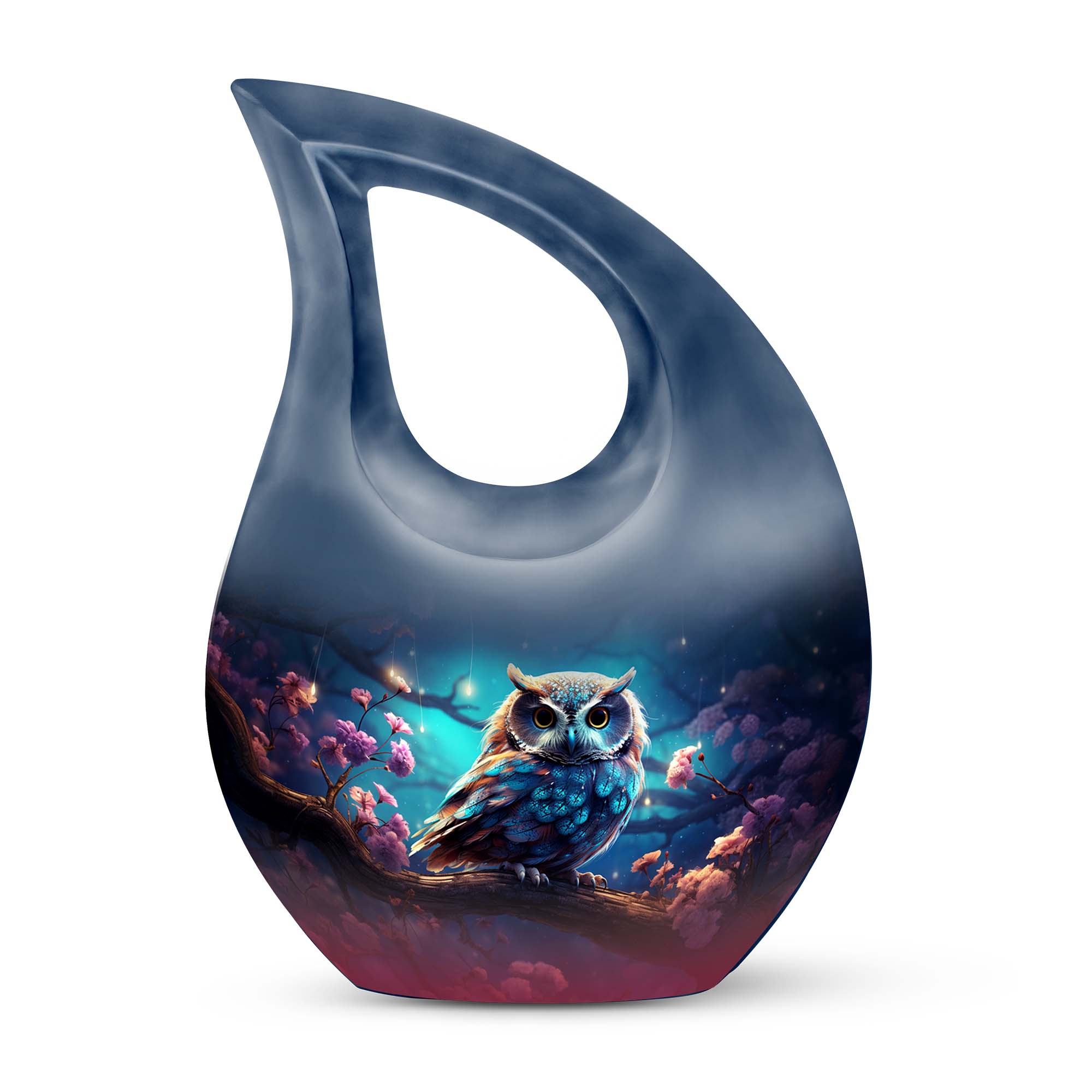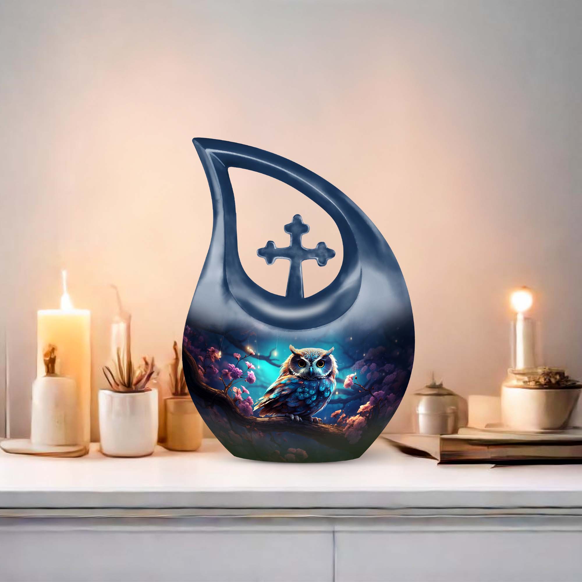 Crafted with precision from premium aluminum, this urn combines durability with refined artistry. The rich night-tone finish paired with a detailed owl motif makes this one of the most elegant cremation urns for women and men alike. Whether used as a large urn for adult ashes or as part of a keepsake urns for women collection, it captures timeless beauty and emotional depth.