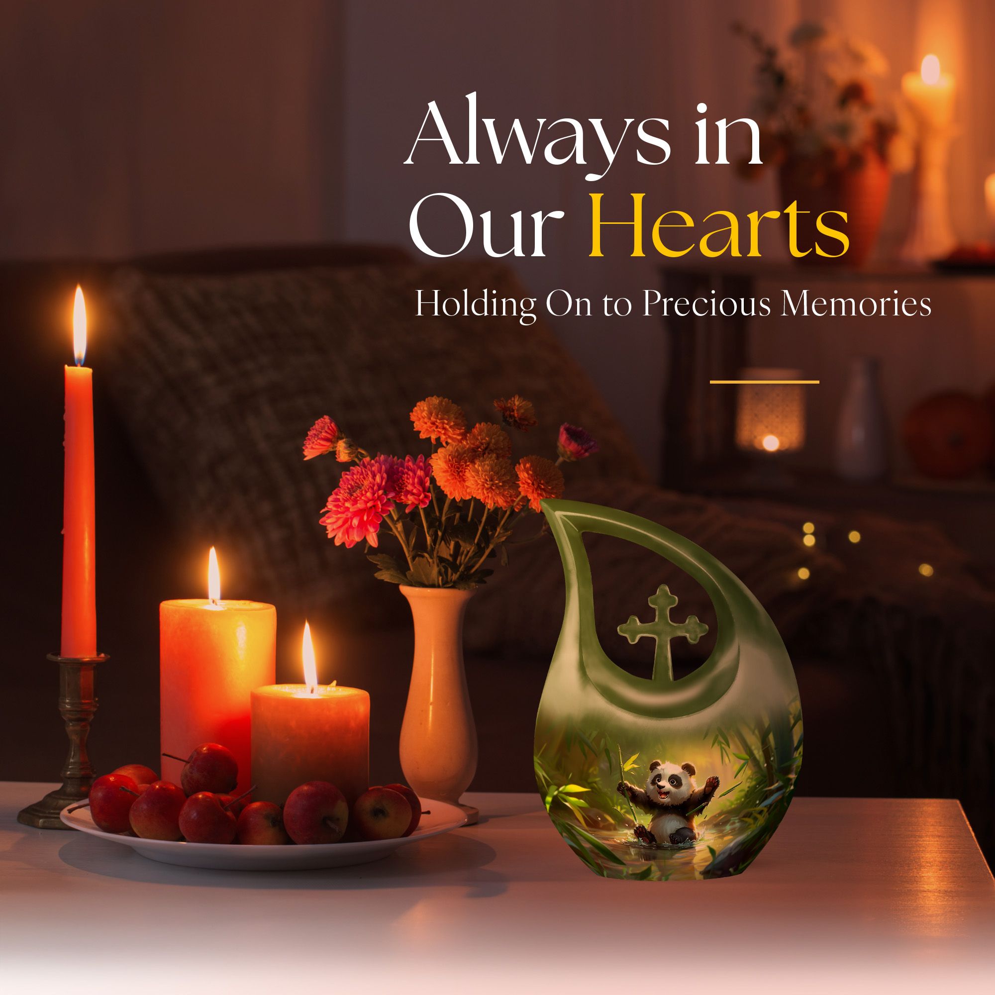 Honor the beautiful memory of a loved one with this Panda Memorial Urn, a serene green funeral urn symbolizing peace, compassion, and eternal comfort. Thoughtfully crafted, it is ideal for families seeking a cremation urn for human, a dignified cremation urn for human ashes adult, or a meaningful tribute for any adult loved one.