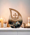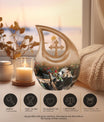 This memorial urn is also suited for human cremation urns, cremation urns for adults humans, and urn for cremation ashes when selecting matching keepsake sets for family members. Its gentle imagery and enduring quality bring comfort during moments of reflection and remembrance.