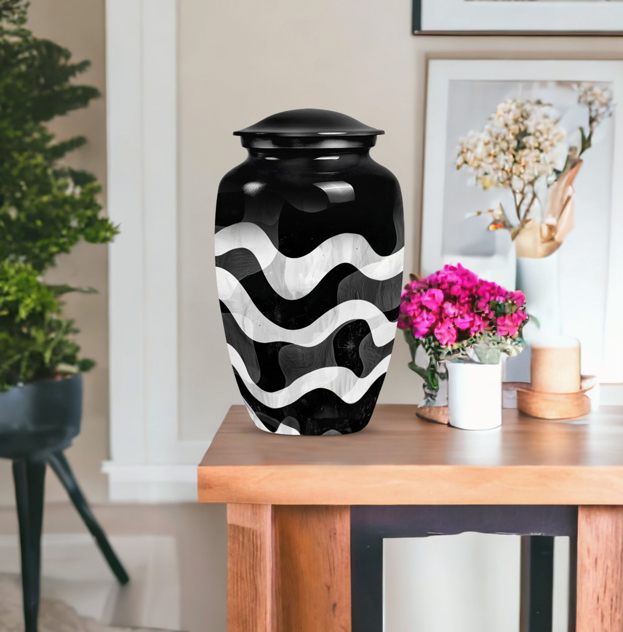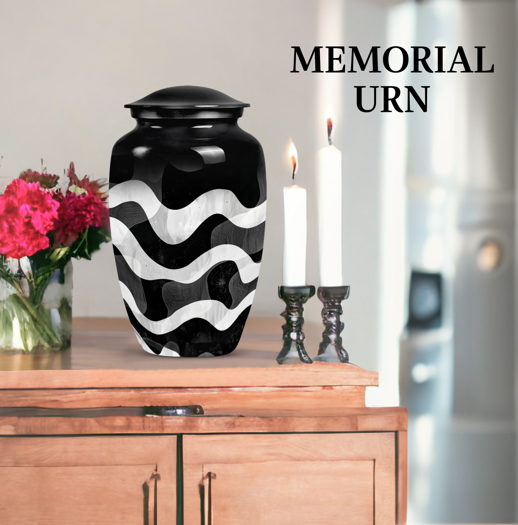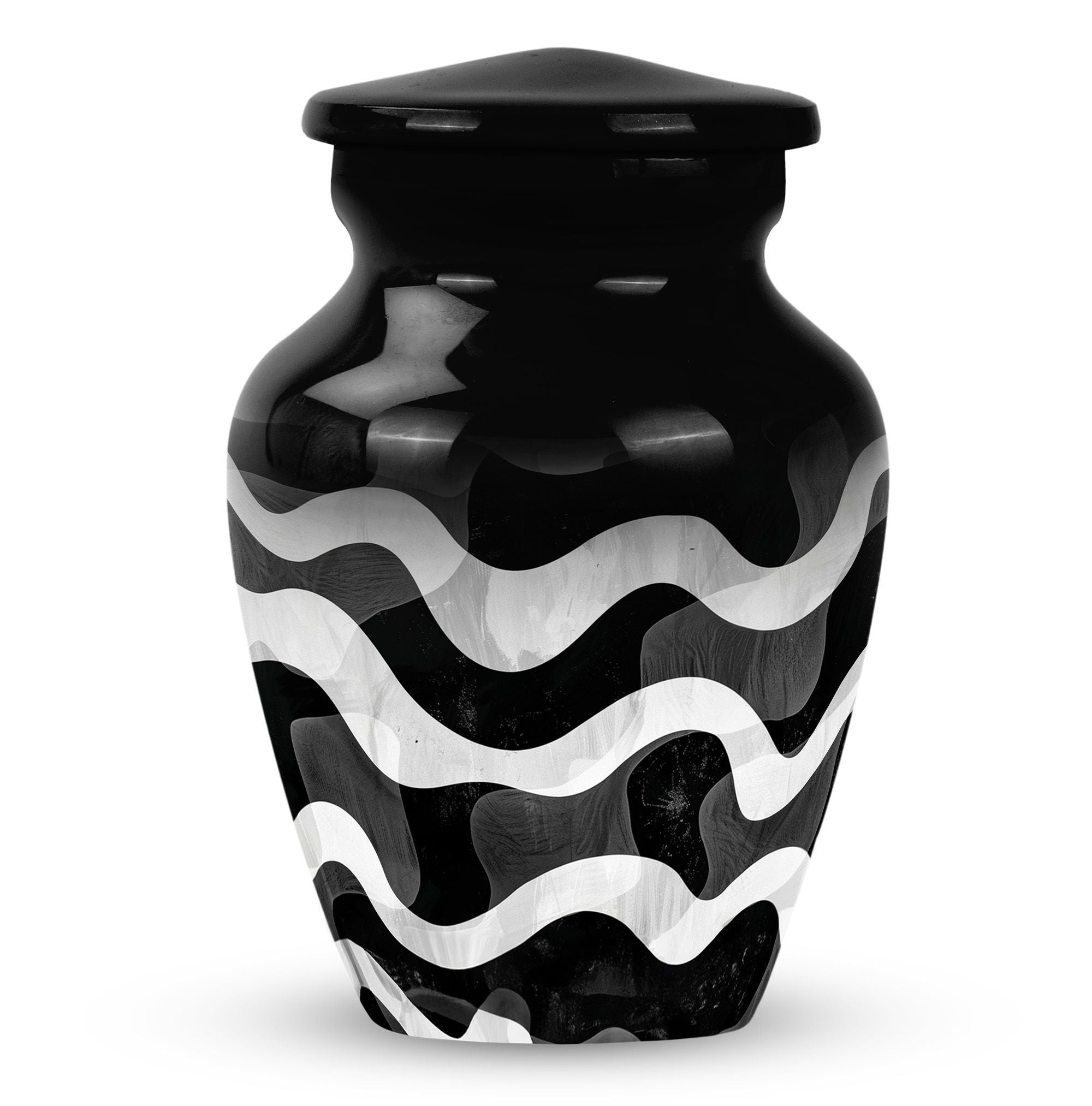 For those wishing to honor their loved ones in a heartfelt and distinctive way, look no further than this uniquely patterned urn. This large urn, with its 10-inch stature, combines artistry and functionality. It is constructed from top-notch aluminium, ensuring long-lasting durability and preserving the sanctity of contents. Furthermore, it is robust, weighing a solid 3.3 pounds. The urn's capacity of 200 cubic inches makes it an ideal choice for preserving human ashes. The package also includes an elegant velvet pouch for containment of ashes, adding a touch of sophistication and tactility. Personalizing the urn is possible as it comes with an option for engraving names, leaving a lasting memory of your cherished one. Search phrases such as 'funeral urn for mom', 'urn ash ashes adult', 'burial urns', and 'cremation urn adult' may lead you to this remarkable creation. This abstract-themed classic urn is an outstanding choice for a memorial ceremony supplies, channeling the profound of respects, love, and memories.