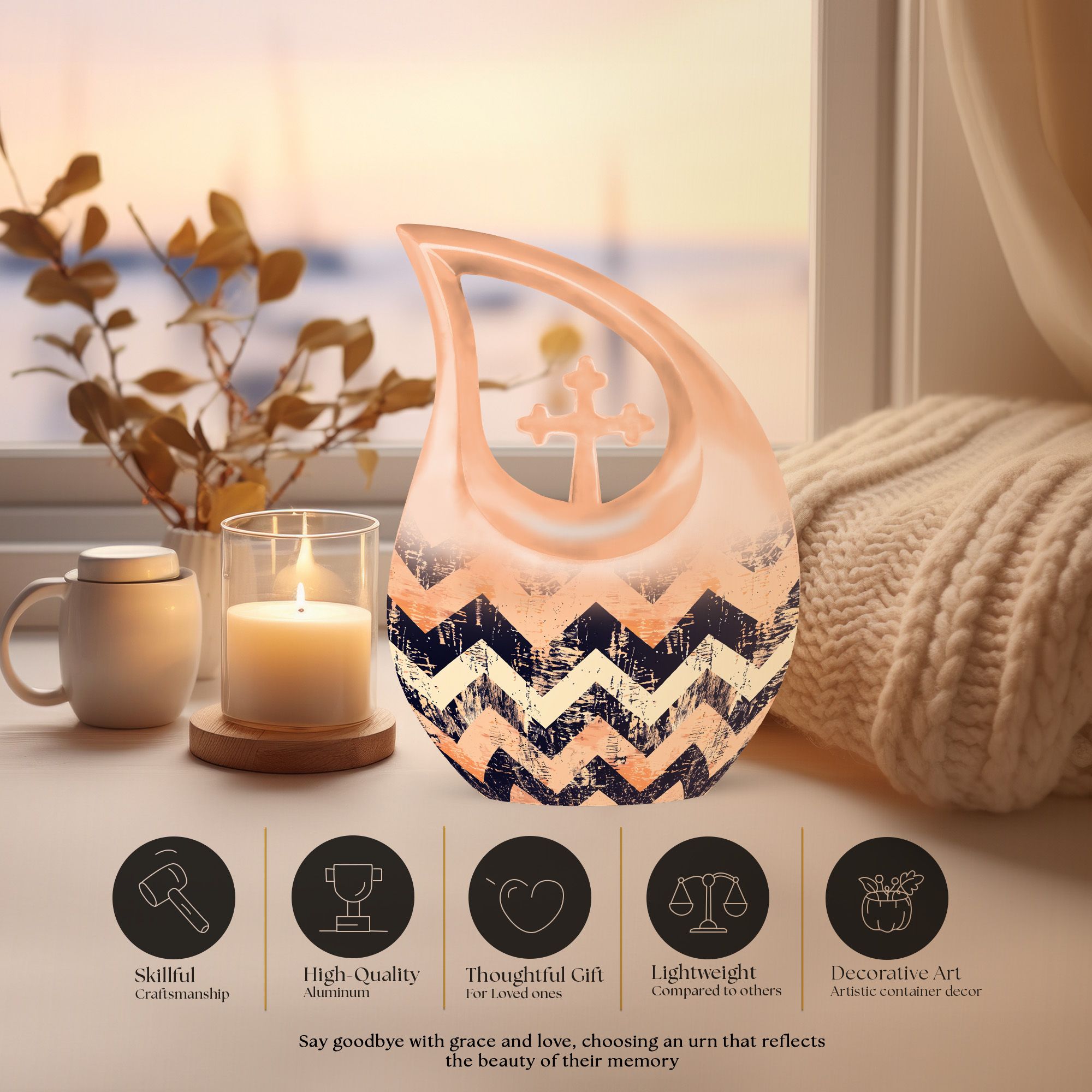 This memorial urn offers a heartfelt way to preserve the memory of someone cherished, ensuring their presence remains close—whether displayed or laid to rest in the earth.