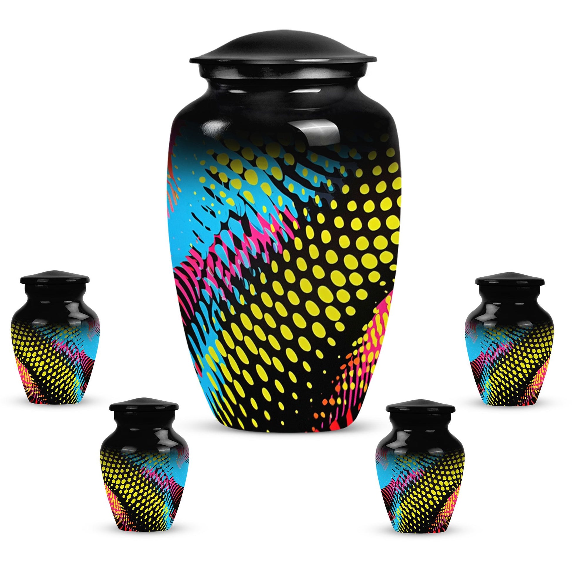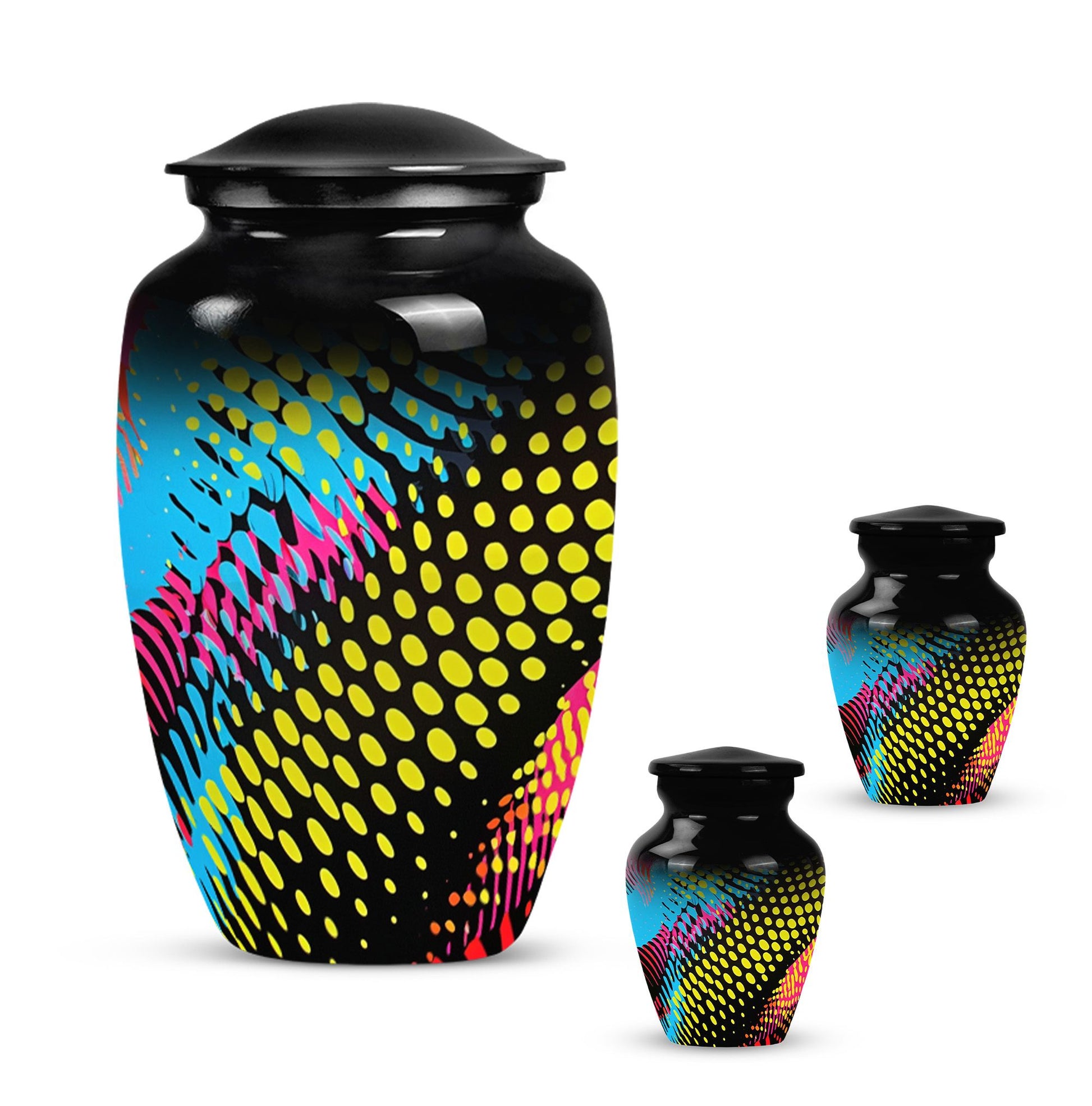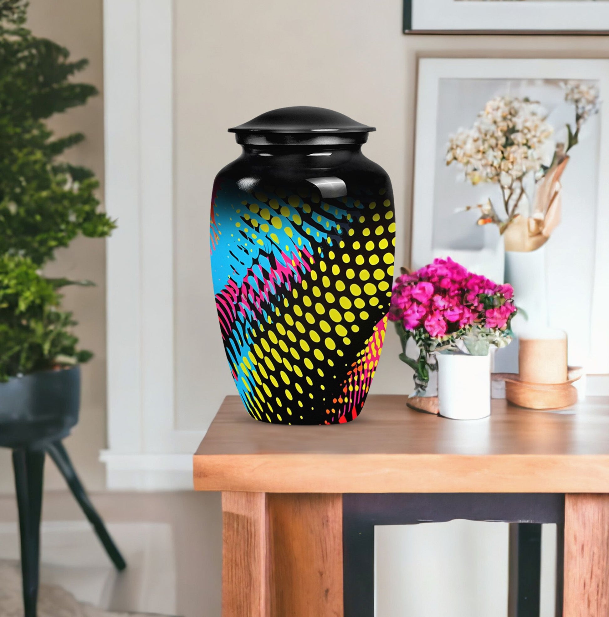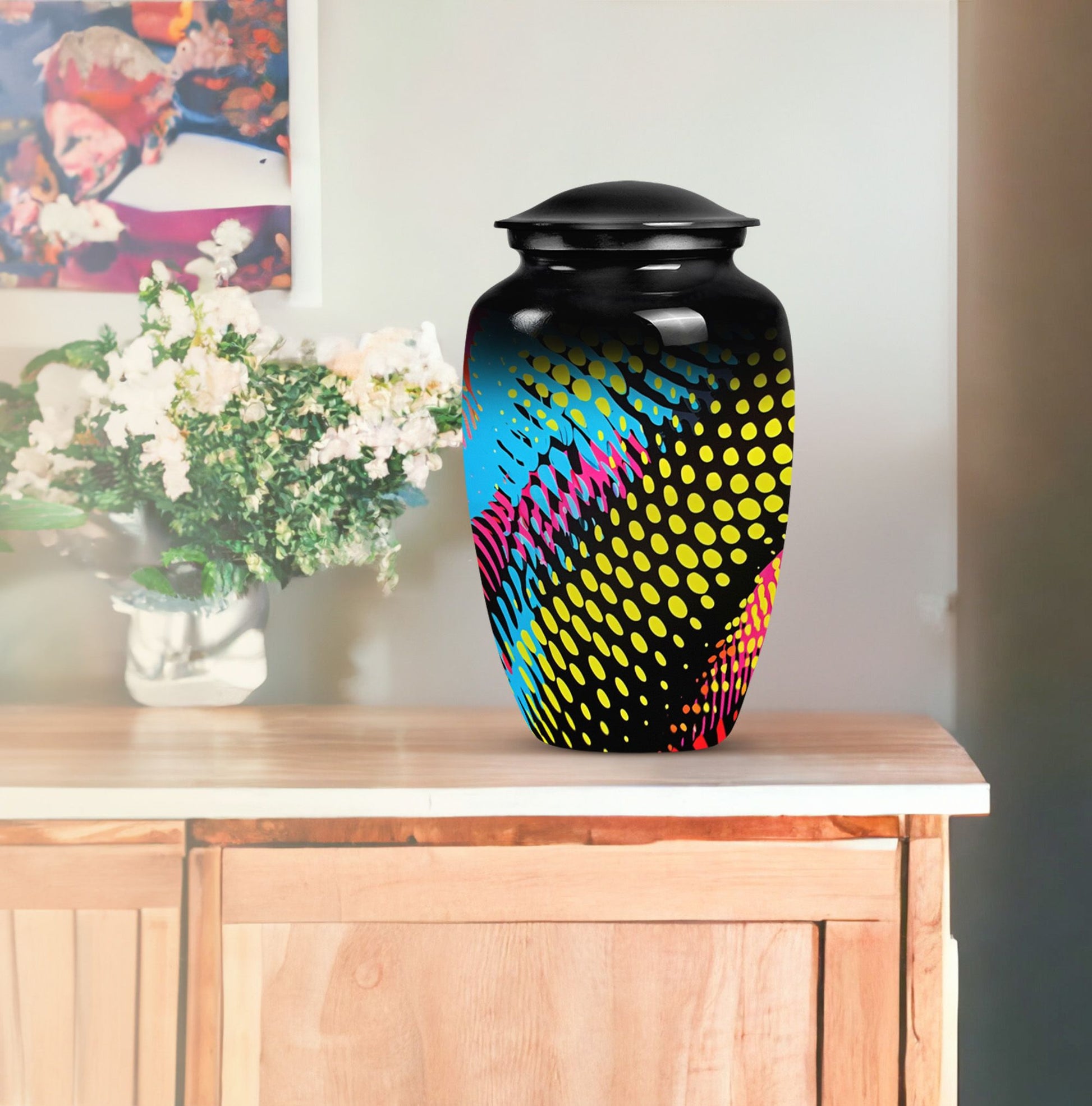 Discover the deep symbolism and comfort in our uniquely Pattern Urn, handcrafted for adult human ashes. Measuring 10 inches in height, perfectly proportioned, and weighing a solid 3.3 pounds, this cremation personalized urn unites artistry and functionality. The large urn is gracefully designed from Aluminium, embodying an Abstract theme that resonates with sentiments, making it a respectful resting place for your loved one. It accommodates up to 200 cubic inches of ashes based on the classic urn design. Our package includes a plush velvet pouch for keeping the remains contained and secure. We also offer an option to personalize with engraved names, adding an invaluable personal touch to this urn. Our cremation urn is not just an object but a cherished token that symbolizes enduring love and remembrance. Ideal for those seeking urns for cremation ashes for men or personalized urns for cremation ashes for the beloved mother. Let our urn ash burial urn brighten your memories and soothe your heart.