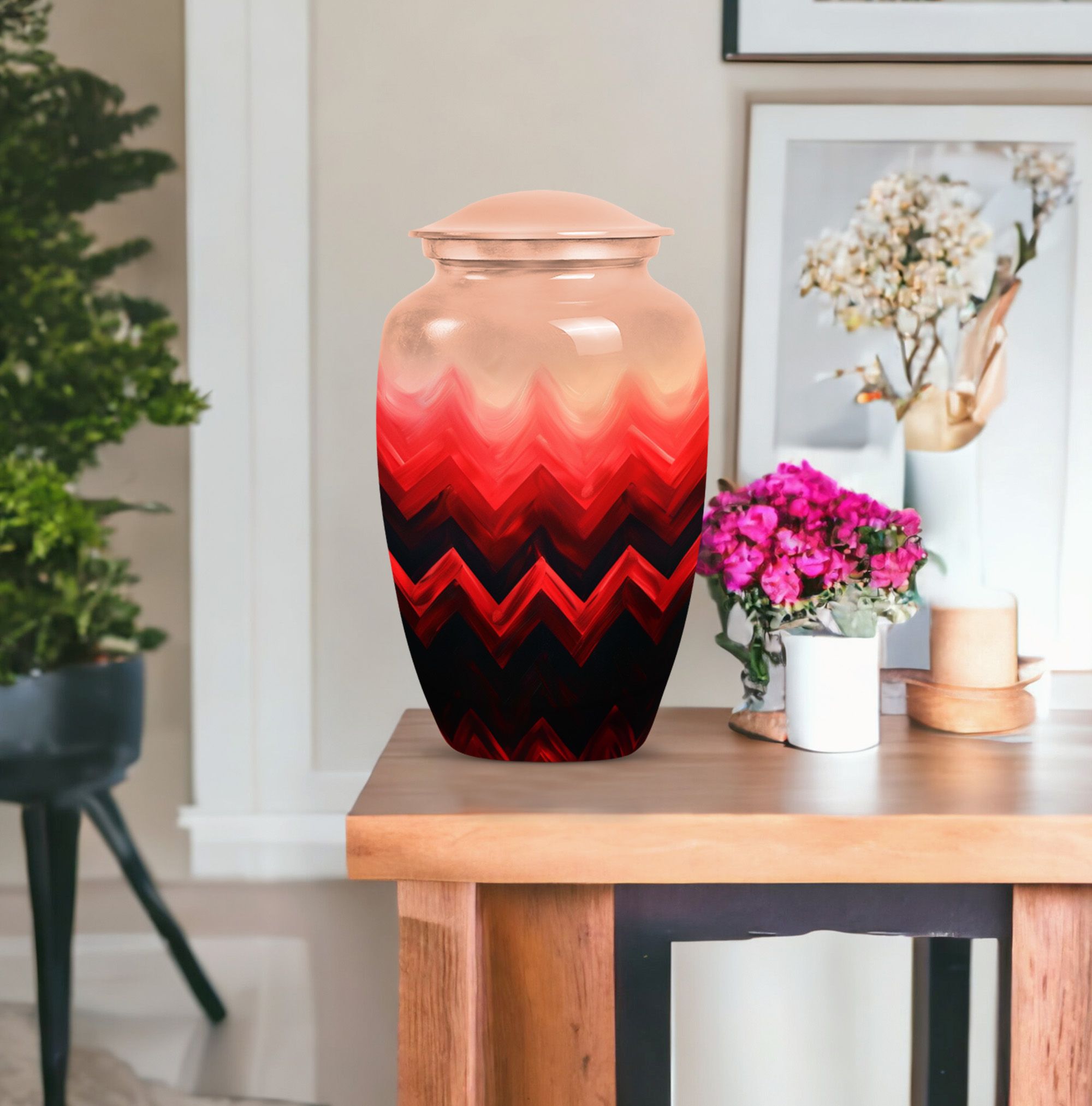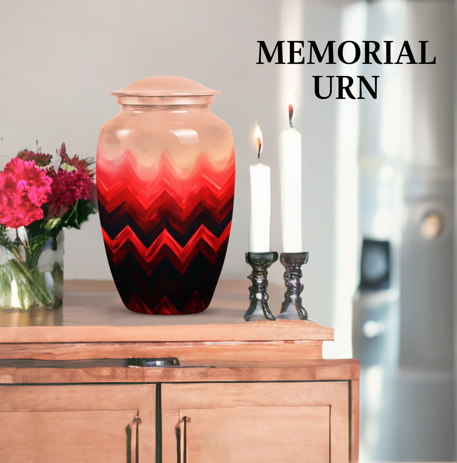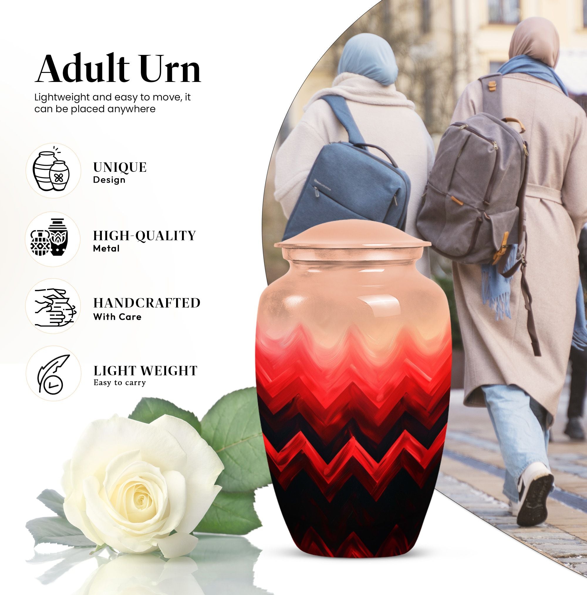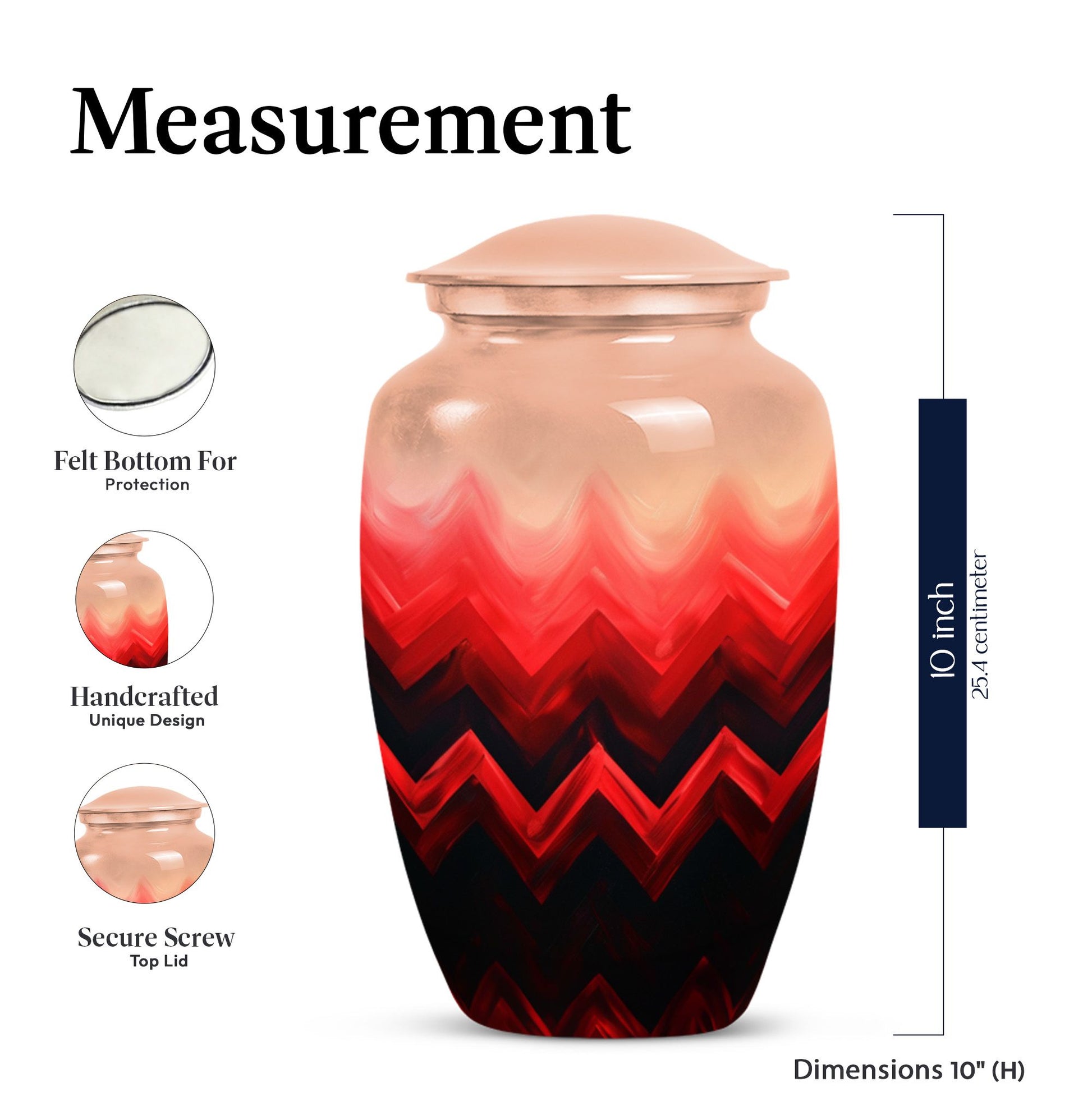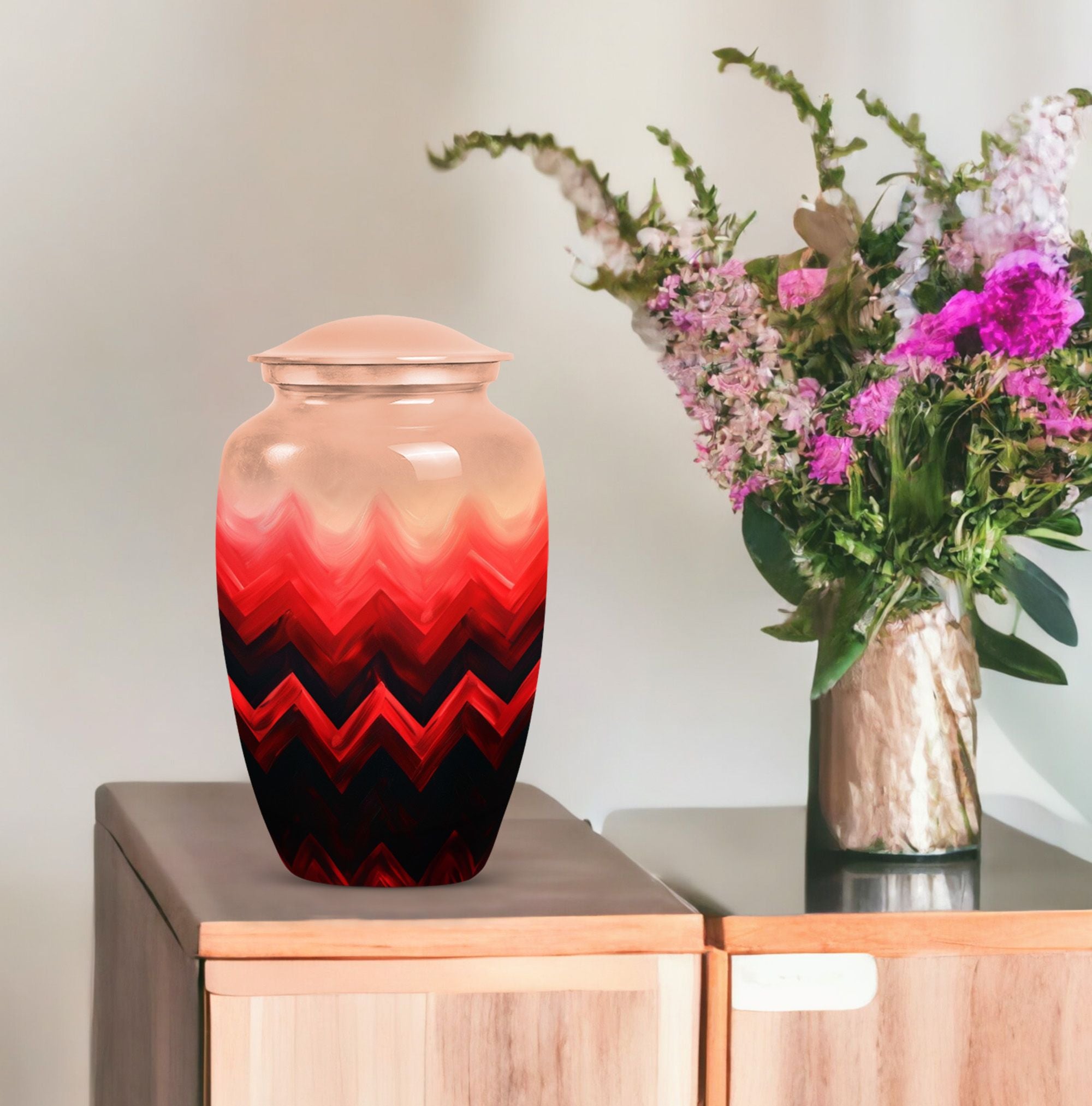 Preserve the memory of your loved ones in a dignified manner with our expertly crafted, aluminium Pattern Urn, an excellent choice in the memorial urns category. With its 10-inch stature, this Large Urn weighs 3.3 pounds, providing a substantial, high quality feel. The urn can hold up to 200 cubic inches of ashes, encapsulating a significant amount of remains within its abstract-themed design. The urn is accompanied by a soft velvet pouch for secure containment of ashes. For an additional personal touch, we offer the ability to customize the urn with engraved names, to make it truly unique and personal. Our Classic Urn has been crafted to enhance the memorial ceremony and offer a tangible way of remembering mom. This urn isn't merely a container, but also an item of commemoration for the bereaved, combining practicality, dignity, and remembrance. Extend this heartfelt expression towards your loved ones by choosing our durable cremation personalized urns for human ashes adult, providing an enduring tribute for generations. This burial cremation urn balances solemn respect and tasteful design, a fitting tribute for your loved ones. With its medium size, this cremation urn is a practical yet poignant memorial item.