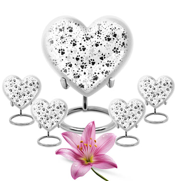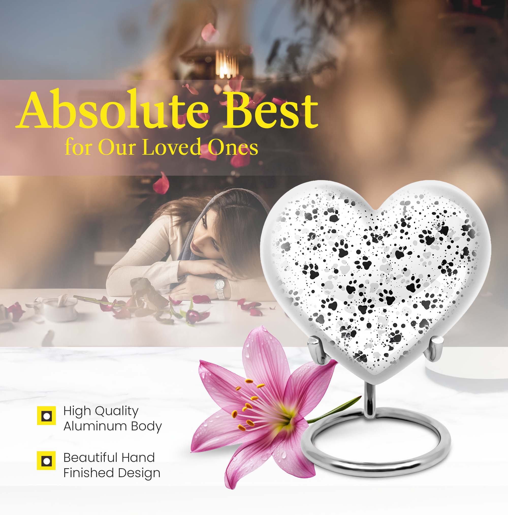 Embrace the compassionate spirit of remembrance with our meticulously designed, 10-inch PAWS Urn. Crafted from resilient aluminium, this dignified large urn indeed serves as a lasting tribute to the cherished life of your loved one. Its robust construction weighs 3.3 pounds, providing an enduring vessel for preserving their treasured essence. This memorial urn for women ashes holds an ample capacity of up to 200 cubic inches, demonstrating its utility for ground burial or in-home remembrance. Our product encompasses heartfelt sentiment, depicted via an abstract heart urn theme. Additional customization allows for personalized engraved names, reinforcing its sentimentality. The purchase includes a velvet pouch, offering delicate containment for the ashes. Prime keywords suitable for search optimization in the religious and ceremonial category include 'cremation urn', 'women urns', 'Urn for Ground Burial', and 'urns for human ashes'. Incorporate these terms when searching to enhance product relevance and visibility online. Note: Our product description intentionally eschews unoriginal terminology, ensuring an inclusive understanding for the senior and adult demographic.