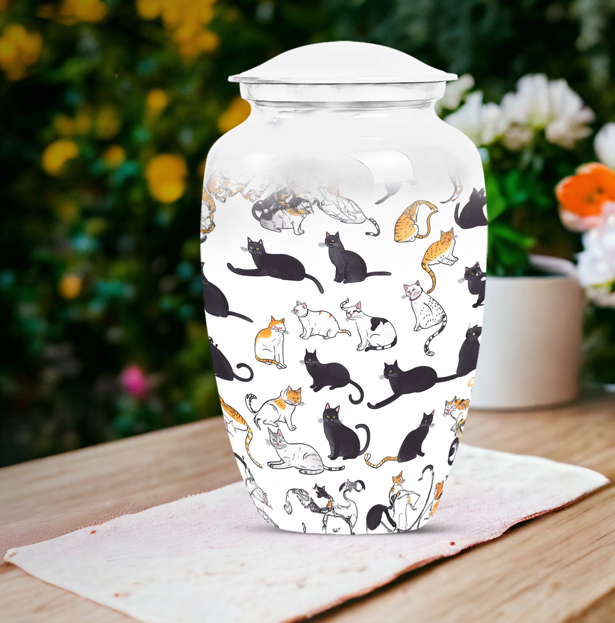Reverence and honor your loved one with our PAWS Urn, a fitting funeral urn specially made for females. This cremation urn showcases exquisite craftsmanship, cast from solid, enduring aluminium and presented with an abstract theme that transcends time, exuding a comforting touch in times of sorrow. Sized generously at 10 inches and weighing 3.3 pounds, it provides ample capacity of 200 cubic inches for the ashes, suitable as a resting place for your beloved. Easily personalized with engraved names, this urn acknowledges a life lived and memories cherished. More than a cremation container, it also comes with a velvet pouch for containment, allowing you to securely preserve your precious memento. Whether you are searching for cremation urns for men & women or elegant adult cremation urns, our large urn stands unparalleled in its class, epitomizing the balance of grandeur and deep-seated respect. Add this large urn display, steeped in grace and refinement, to your memorial ceremony supplies today.