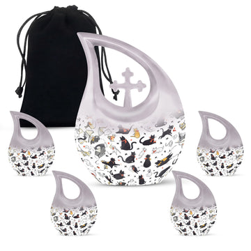 Crafted from durable aluminium, this urn features a gentle cat-pattern motif symbolizing companionship, loyalty, and comfort. Its compact size makes it ideal for keepsake small urns, small urns for ashes adult female, and personal remembrance displays. Whether used as a primary keepsake urn, shared among family, or added to your collection of memorial keepsakes for ashes, this design brings peace and warmth to any space.