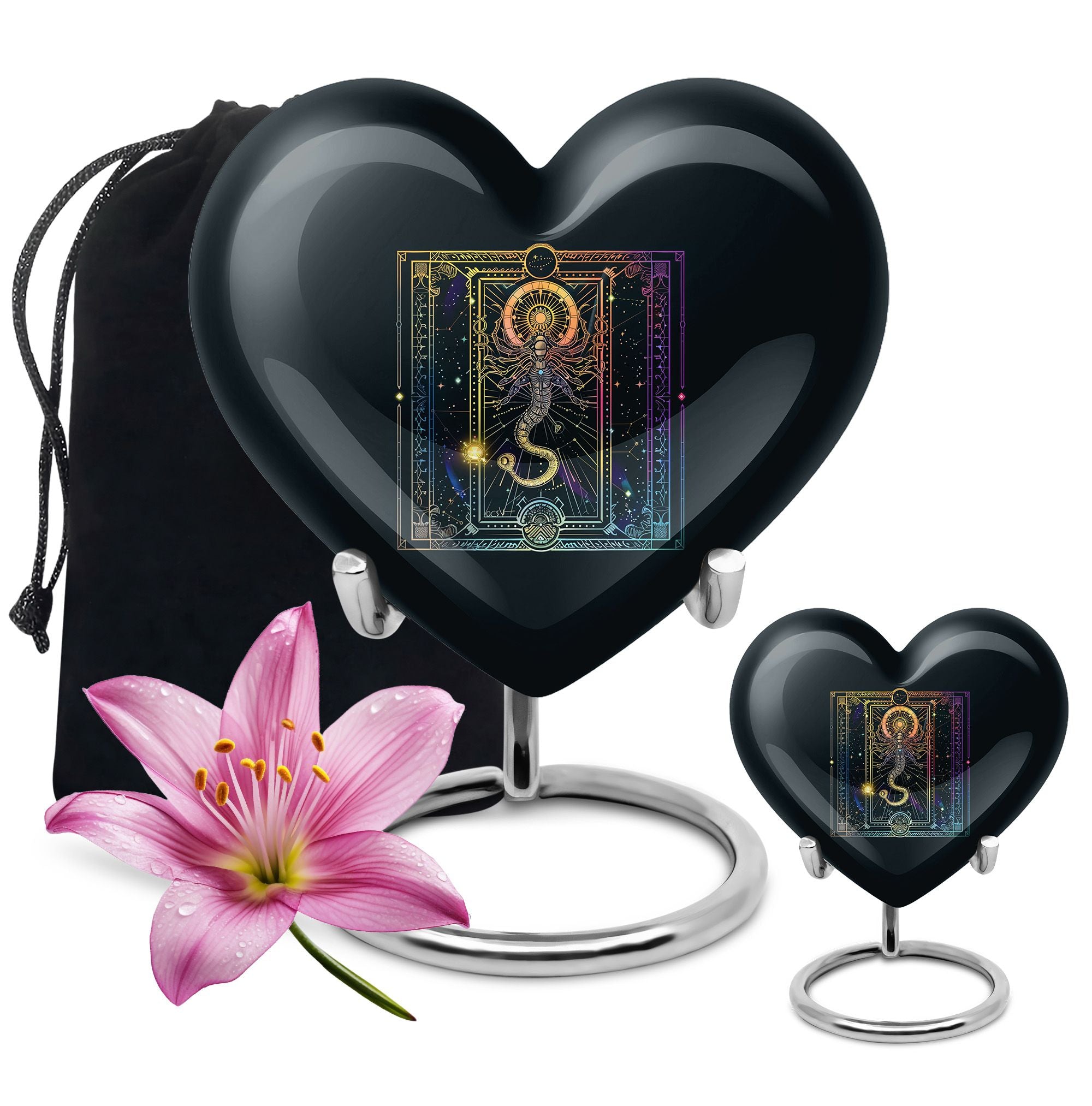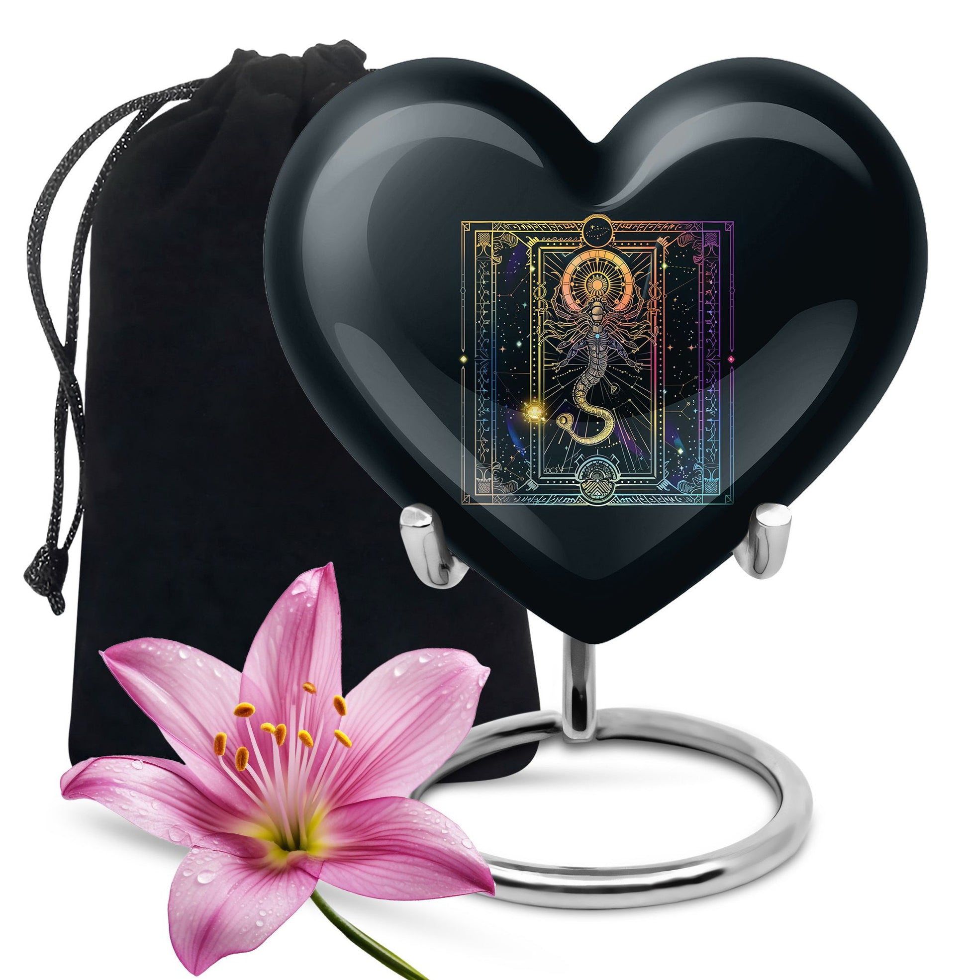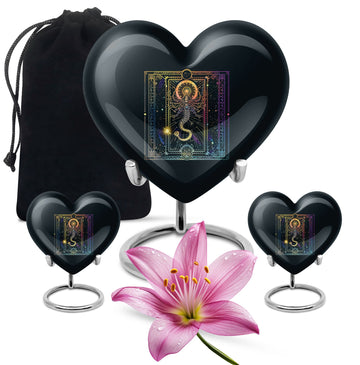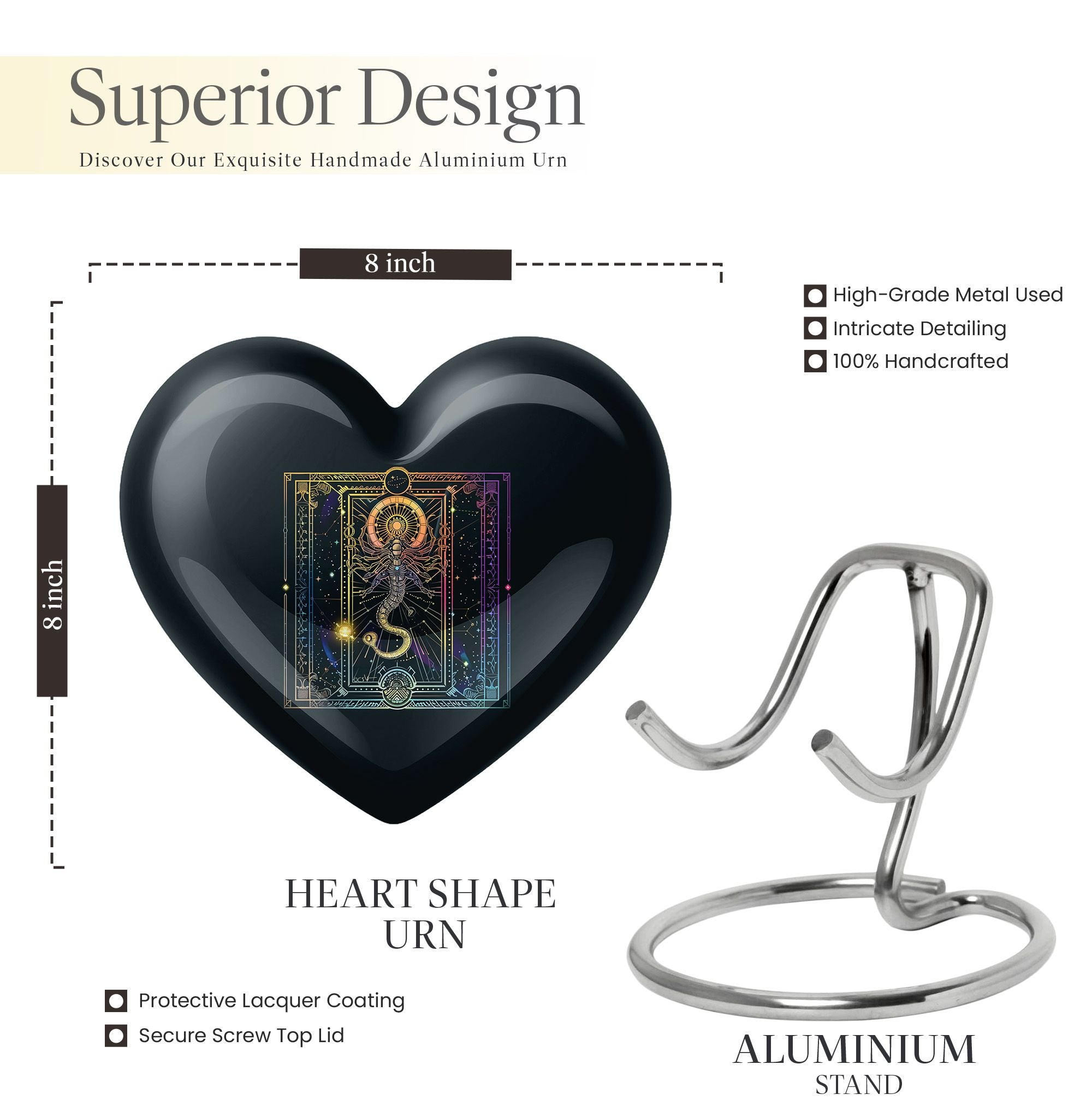 Embrace a tangible gateway to memories and honor a dearly departed with this 10-inch Zodiac Urn. This large-sized cremation urn, weighing 3.3 pounds, is made of premium Aluminium exuding substance and sturdiness. Its capacity for 200 cubic inches of ashes makes it an ideal choice as a cremation urn for adult female ashes. Providing not only a place for memories, but this cremation urn with its abstract thematic design is an artistic statement in itself. Add a personalized touch by engraving names on it, keeping your loved ones close in a whole new way. It comes with a velvet pouch, ensuring dignified containment of the ashes. This urn serves as a testament to the person it memorializes, resonating the love, legacy, and personality they embodied. An epitome of remembrance, this urn for human ashes will become an heirloom for generations to cherish.