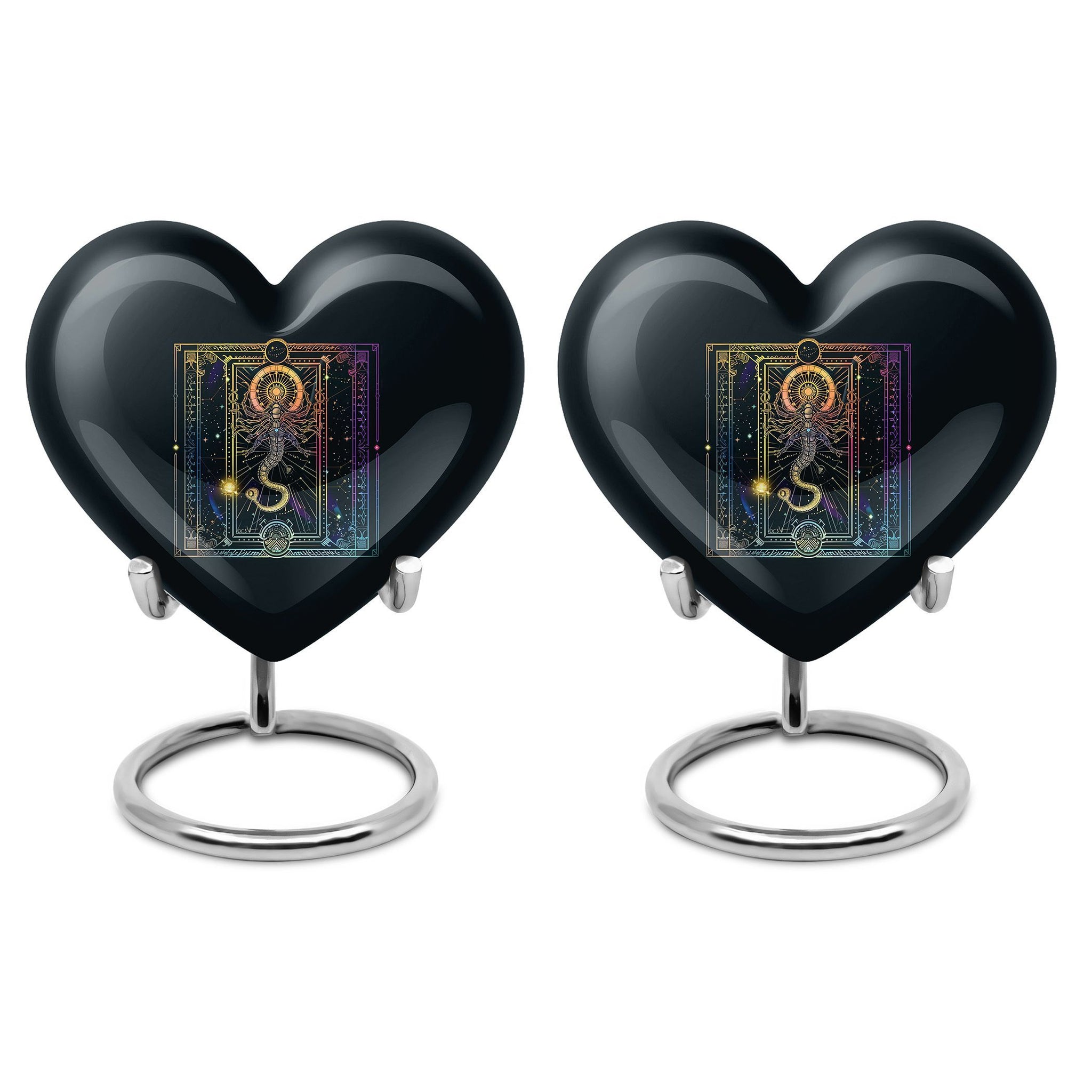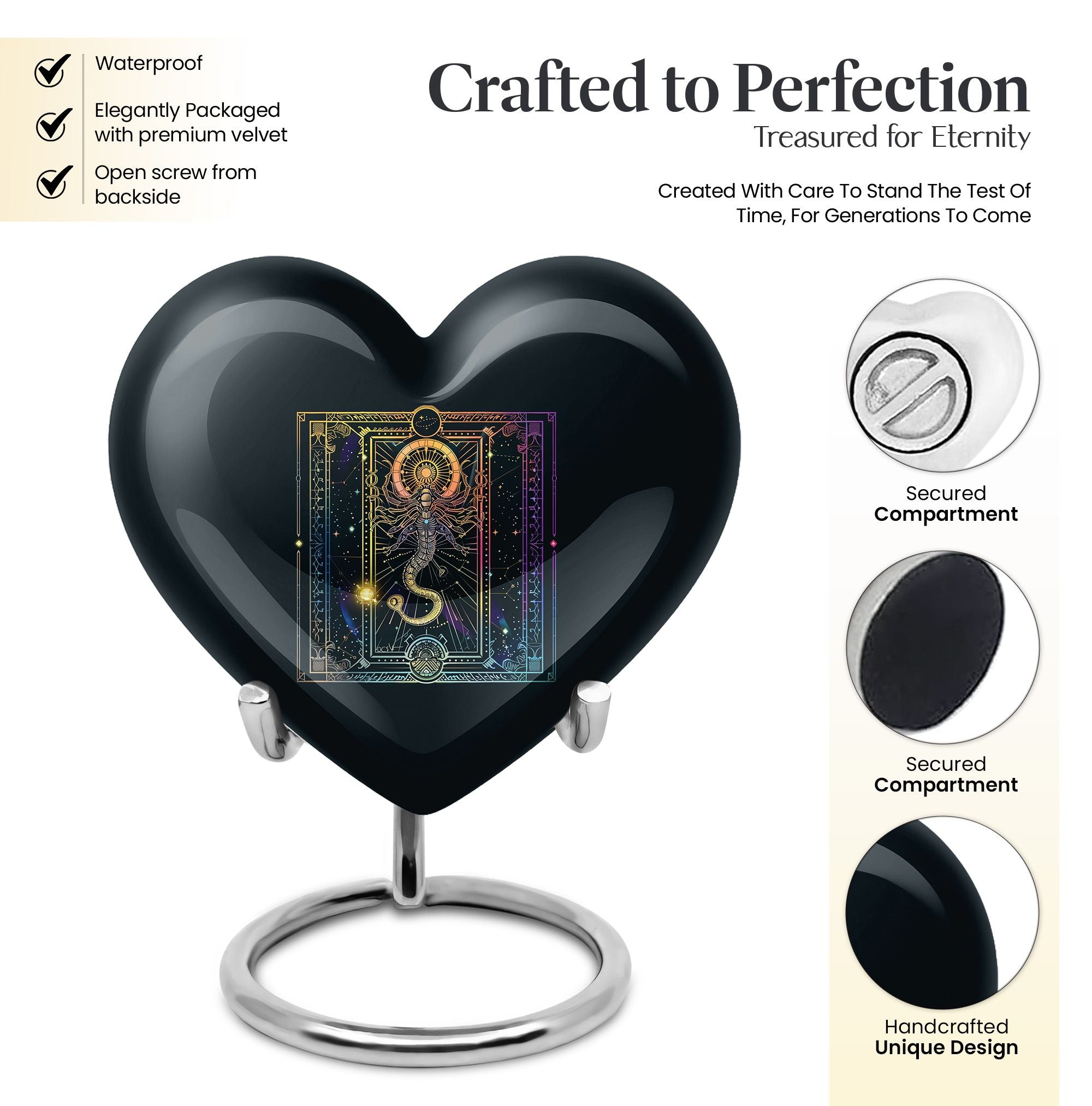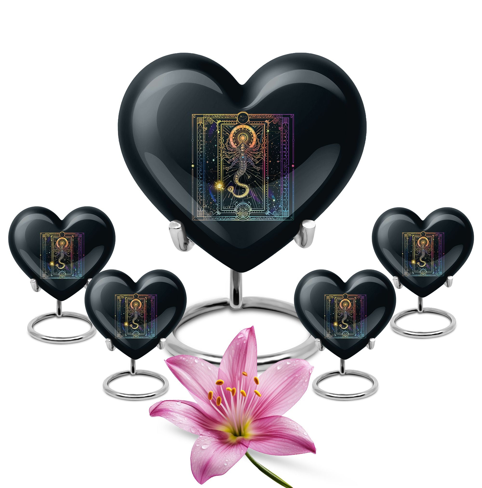 Embrace a tangible gateway to memories and honor a dearly departed with this 10-inch Zodiac Urn. This large-sized cremation urn, weighing 3.3 pounds, is made of premium Aluminium exuding substance and sturdiness. Its capacity for 200 cubic inches of ashes makes it an ideal choice as a cremation urn for adult female ashes. Providing not only a place for memories, but this cremation urn with its abstract thematic design is an artistic statement in itself. Add a personalized touch by engraving names on it, keeping your loved ones close in a whole new way. It comes with a velvet pouch, ensuring dignified containment of the ashes. This urn serves as a testament to the person it memorializes, resonating the love, legacy, and personality they embodied. An epitome of remembrance, this urn for human ashes will become an heirloom for generations to cherish.
