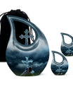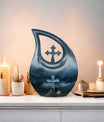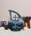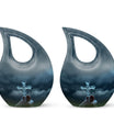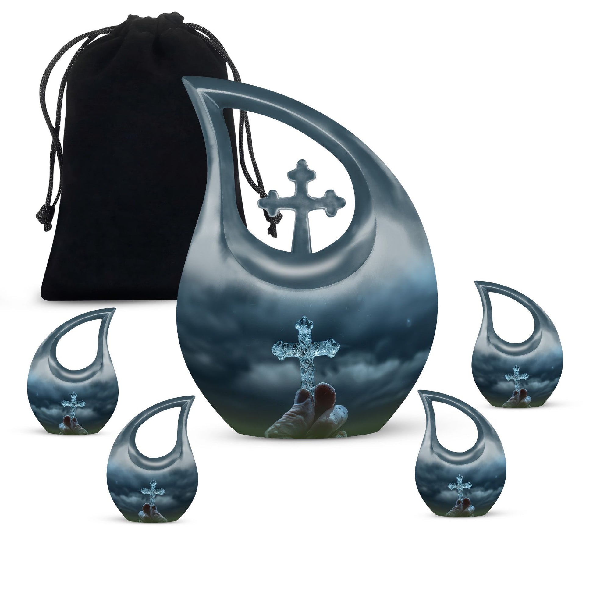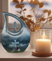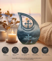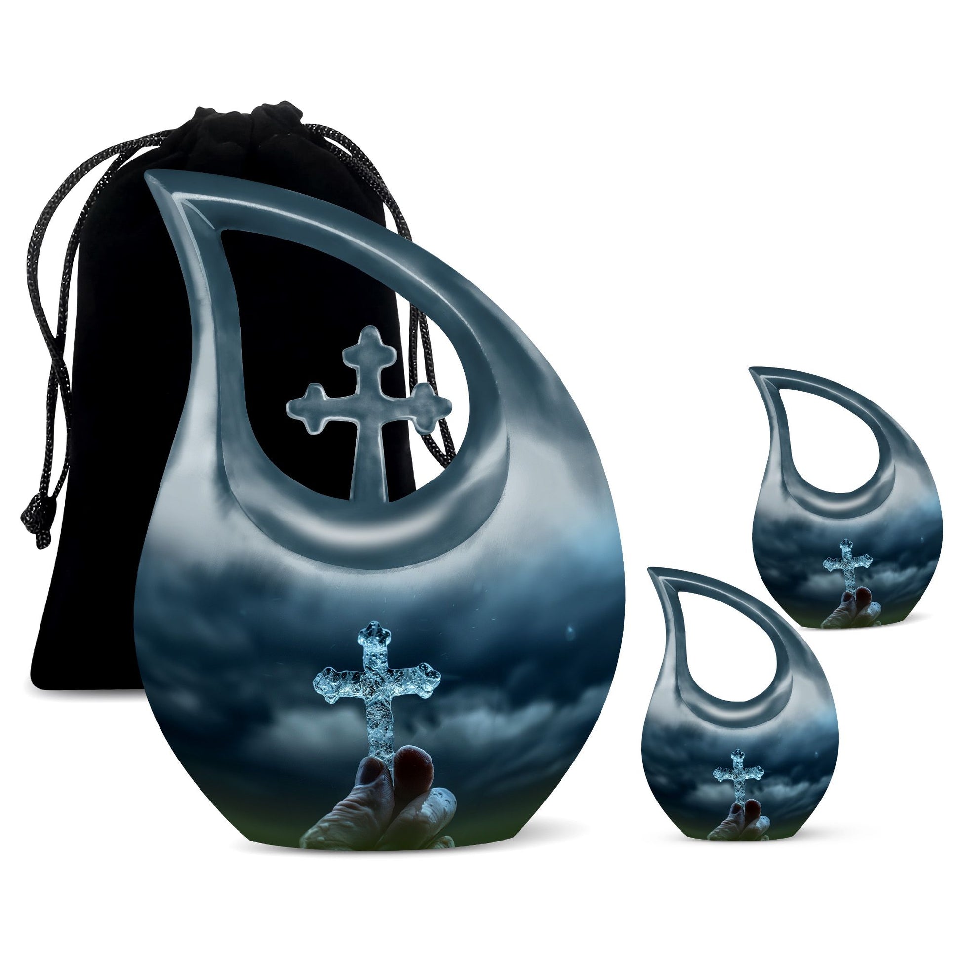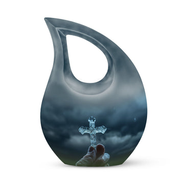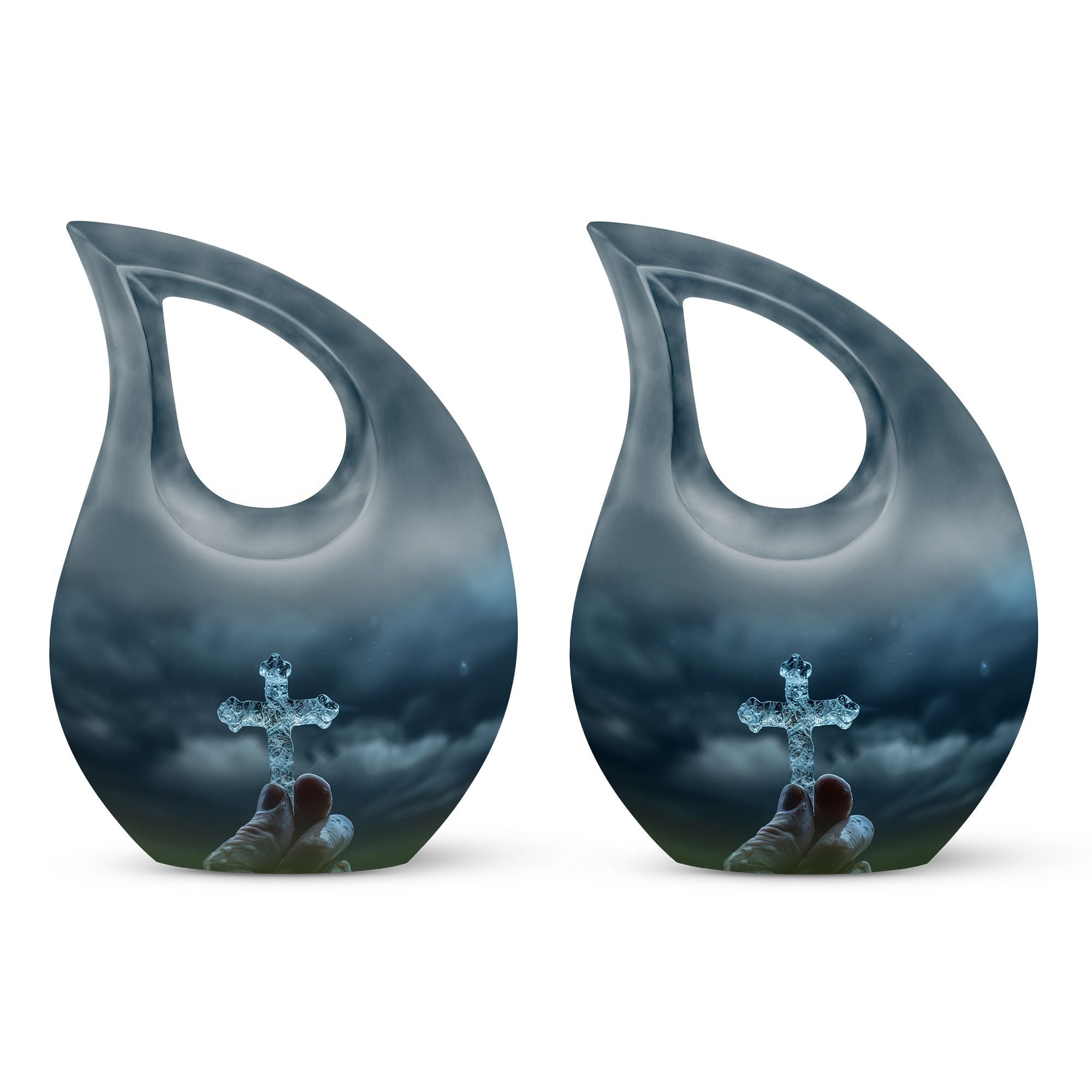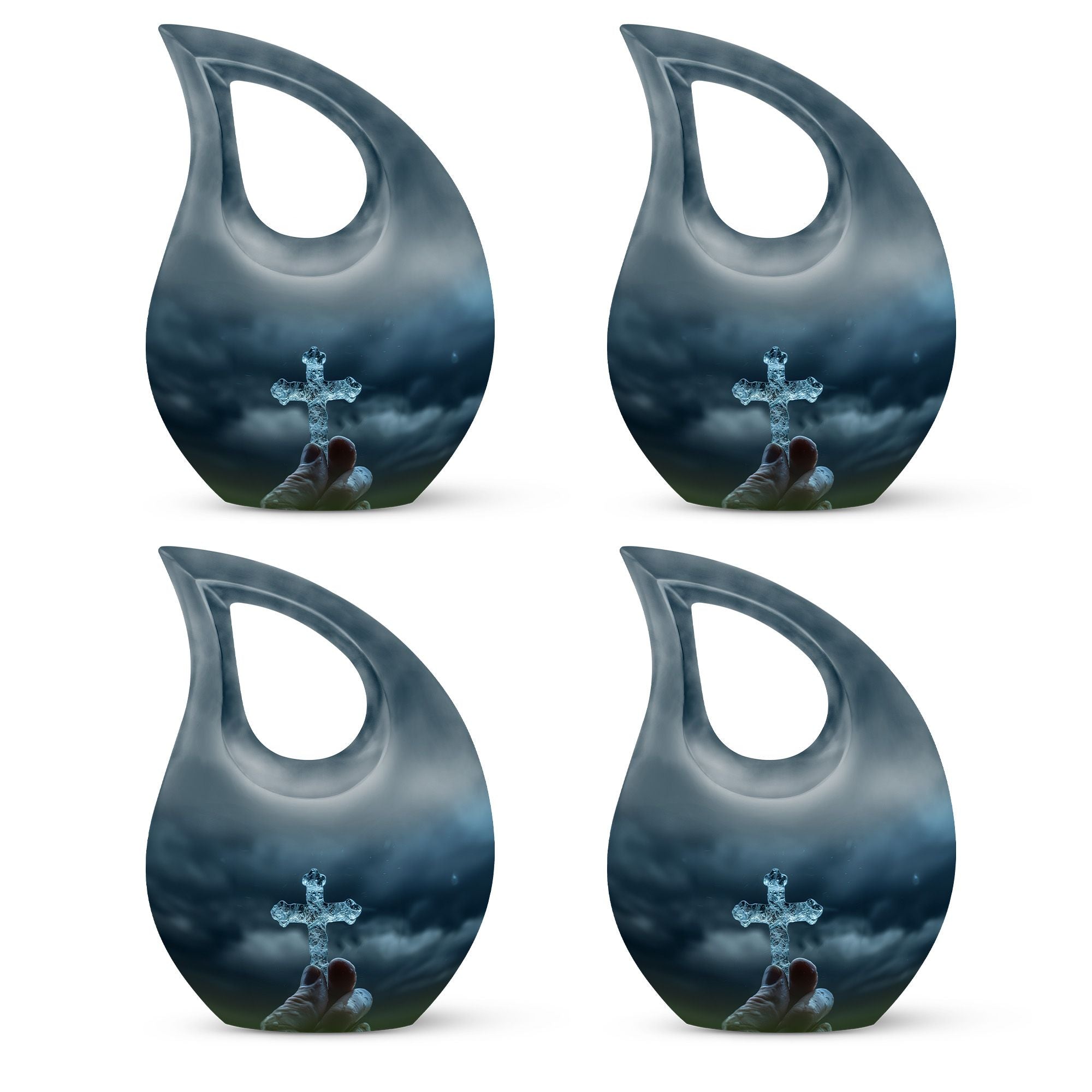Introducing our Crystal Faith Urn, a truly unique tribute to eternal rest. This Large Urn, measuring 10 Inches in height and crafted from robust Aluminium, is a fitting addition to any memorial ceremony. You can personalized this Funeral Urn as per your wishes with engraved names, giving it an additional touch of heartfelt sentiments. With a capacity of a substantial 200 cubic inches, this urn can accommodate the ashes of adults comfortably, contained in a thoughtfully supplied velvet pouch for utmost respect and commemoration. Our Cross Drop Urn, weighing 3.3 pounds, is not just an urn but a symbol of heartfelt memories and prayers. It beautifully blends the essence and purpose of memorial urns, making it an affordable choice without compromising the quality or sentiment. This urn can be indeed a unique yet personal choice for moms ashes or any beloved who rests in peace. Remember, this Crystal Faith urn is more than a container; it's a vessel of lasting memories and love.