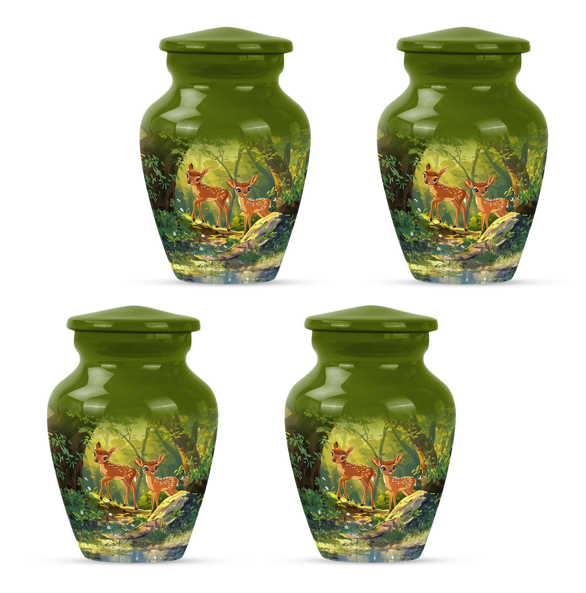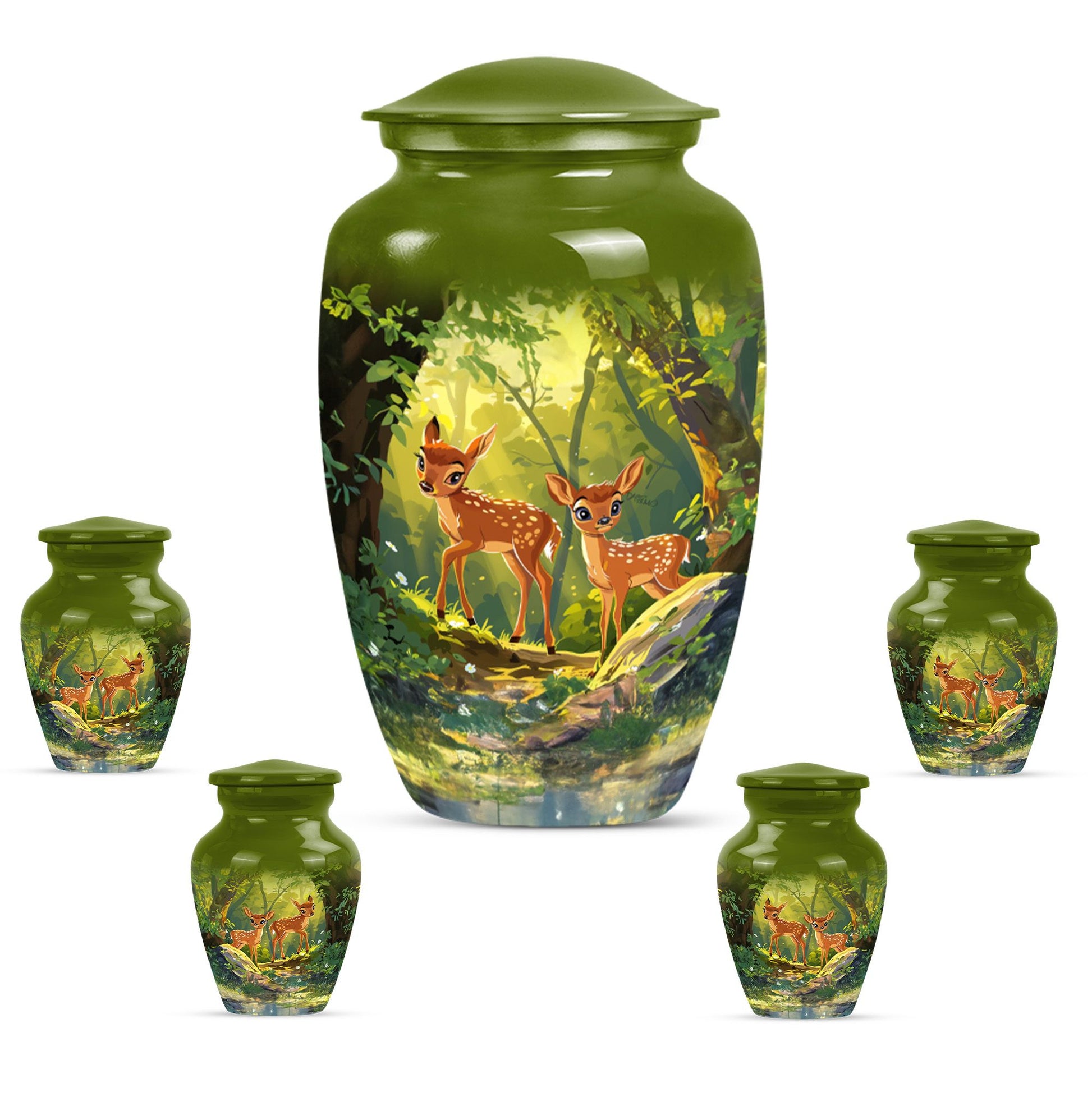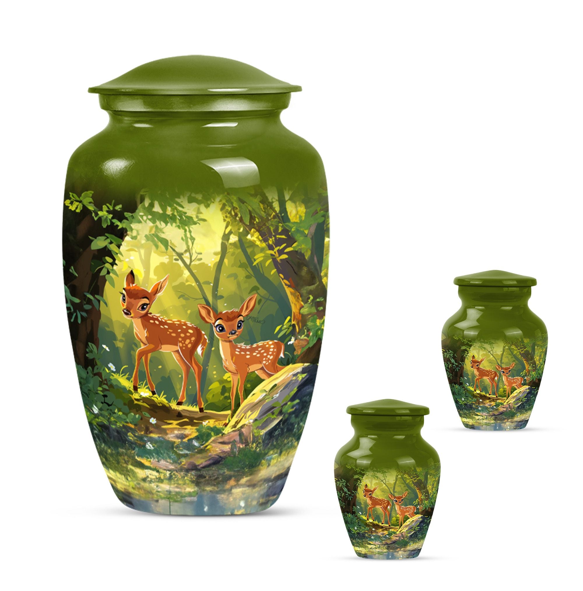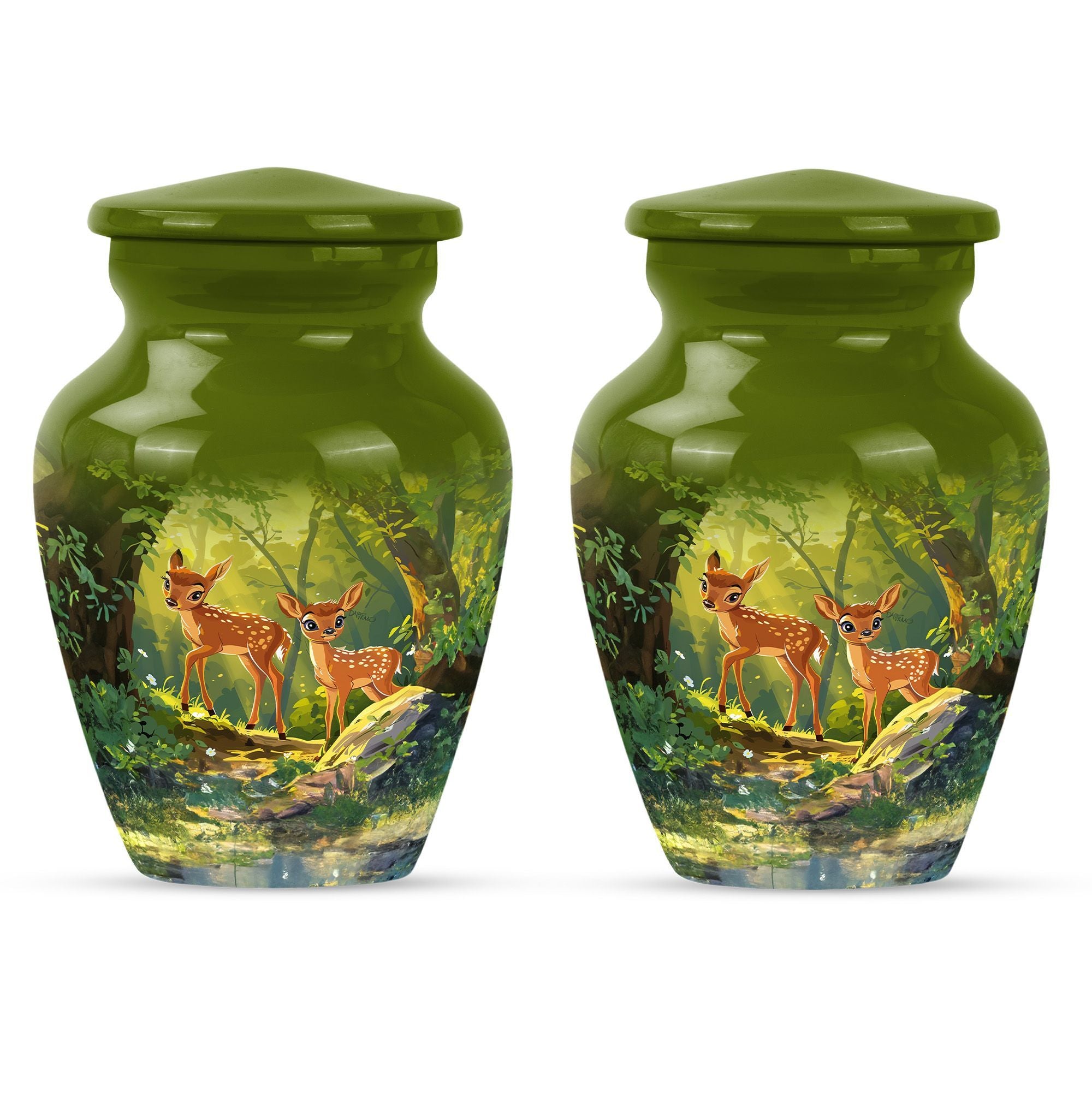 This distinctive 10-inch Deer Urn is not your run-of-the-mill cremation urn. An emblem of grace and majesty, this urn for ashes is thoughtfully curated with an uncommon Gramophone theme, adding a unique touch to a memorial ceremony. Made from high-quality Aluminium, it offers sturdiness and longevity, weighing around 3.3 pounds with the capacity to hold up to 200 cubic inches of ashes. This large urn carries an air of dignity and respect, ideal for a reverent remembrance of an adult male. Further, it presents the option for personalization through engraved names, effortlessly making it a unique memorial artifact. Your dear remains thoughtfully contained within, accompanied by a velvet pouch included in the package. Noteworthy for its classic design, it resonates with both adults and seniors looking for a 'deer Urn' or 'funeral ashes urns.' If you're seeking 'Large Cremation Urns for Men' or a uniquely themed 'metal urn for ashes adult male', this masterpiece is a perfect choice.