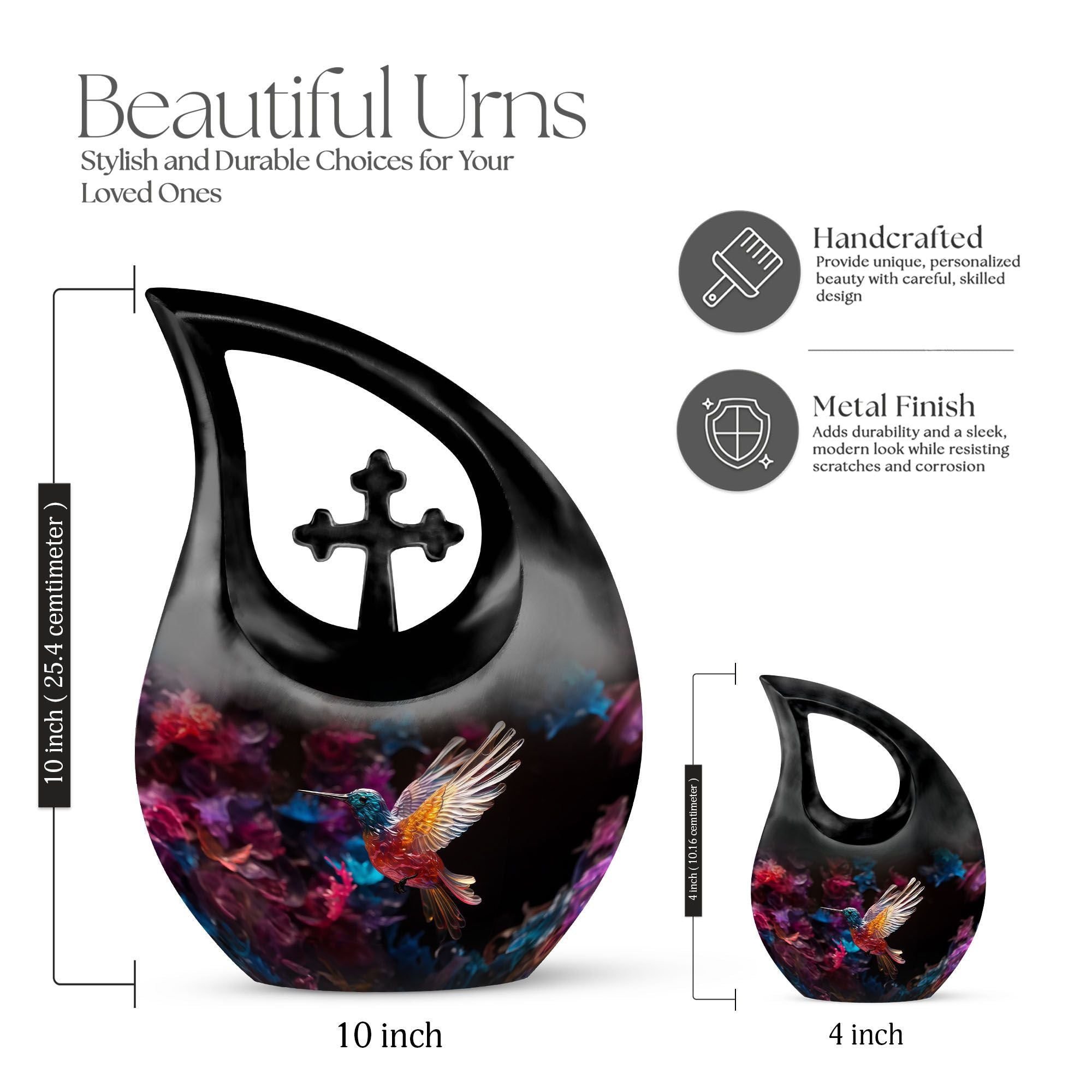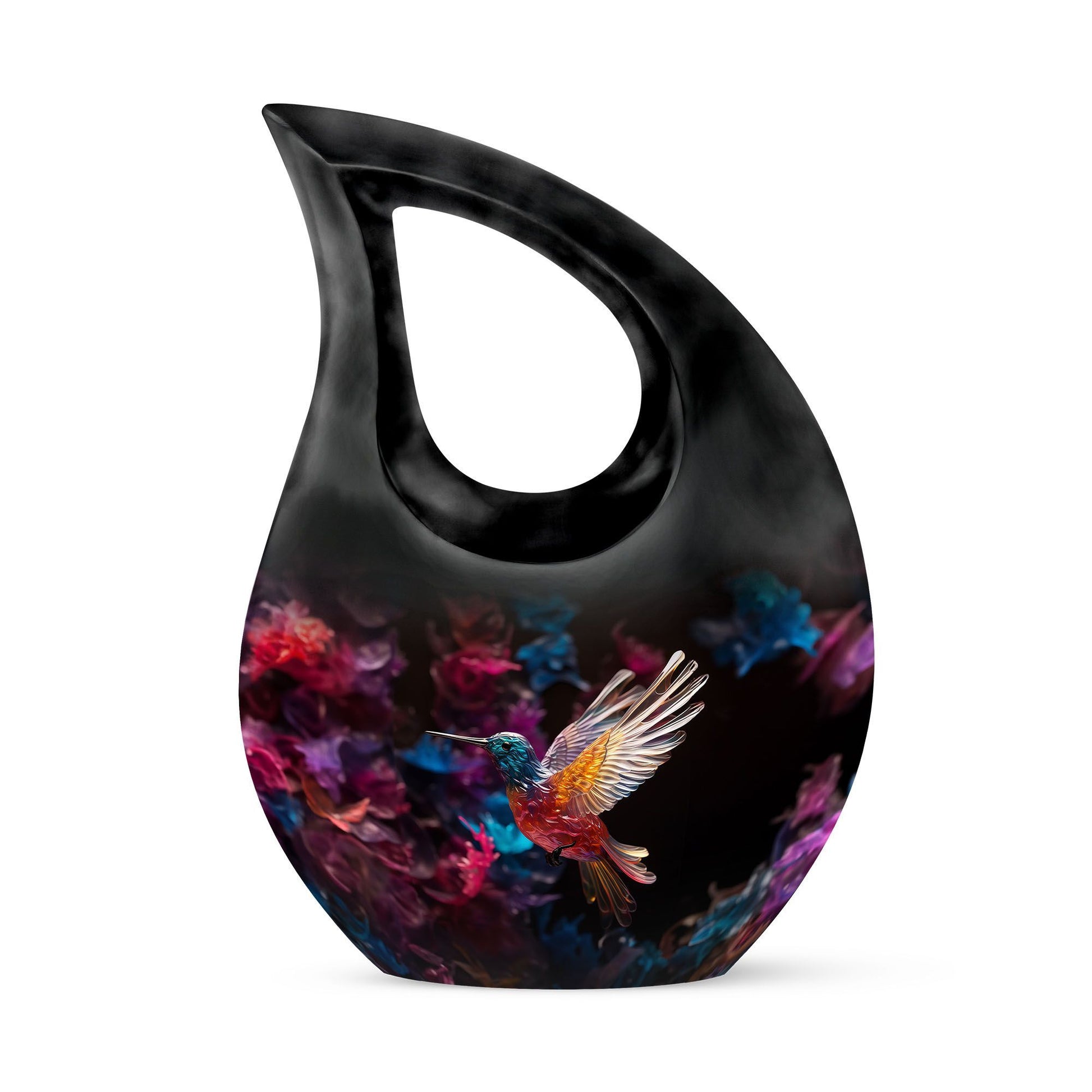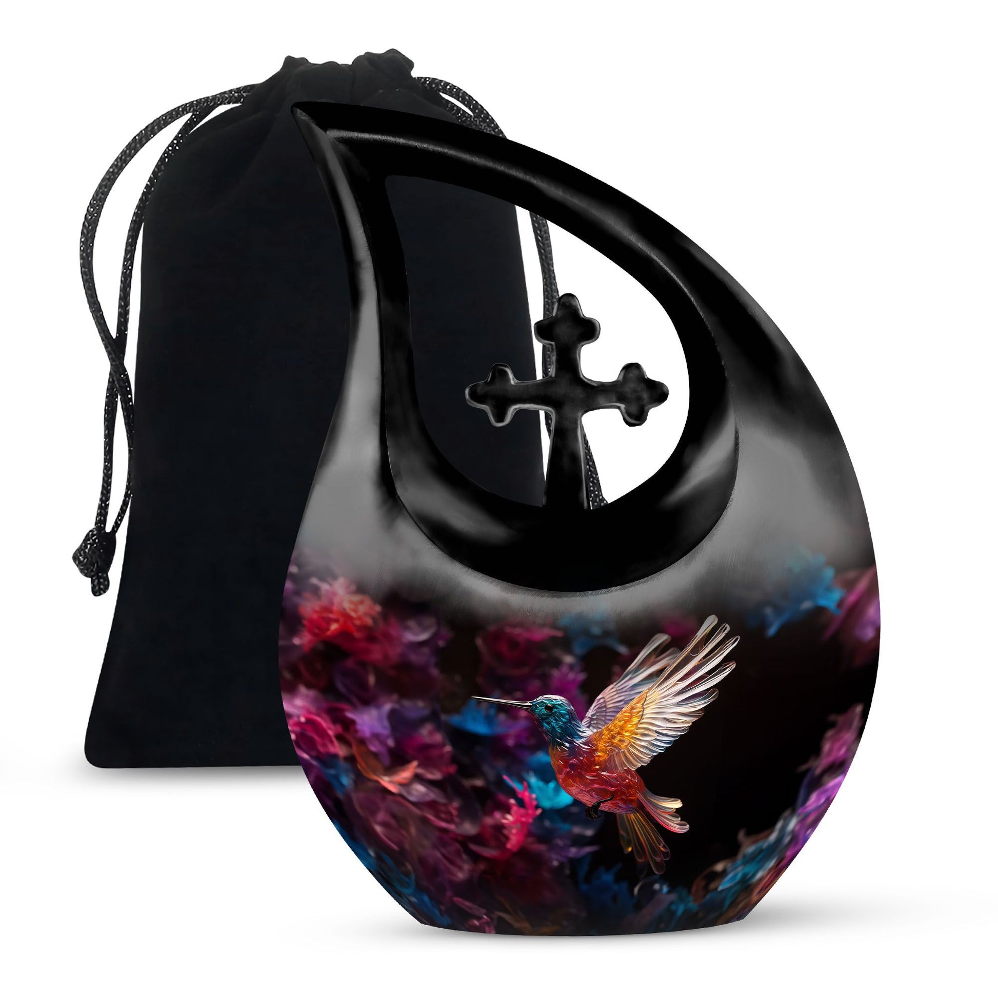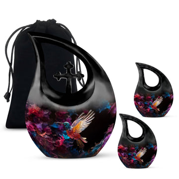 Expertly handcrafted from premium aluminium, this large decorative urn features a shimmering crystal-inlaid hummingbird surrounded by soft floral accents on a serene background. The polished finish enhances its brilliance, while the secure screw-top lid ensures ashes are safely preserved. Designed for both men and women, it’s a timeless choice among urns for cremation ashes female and urns for adult female mom collections.