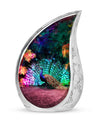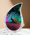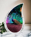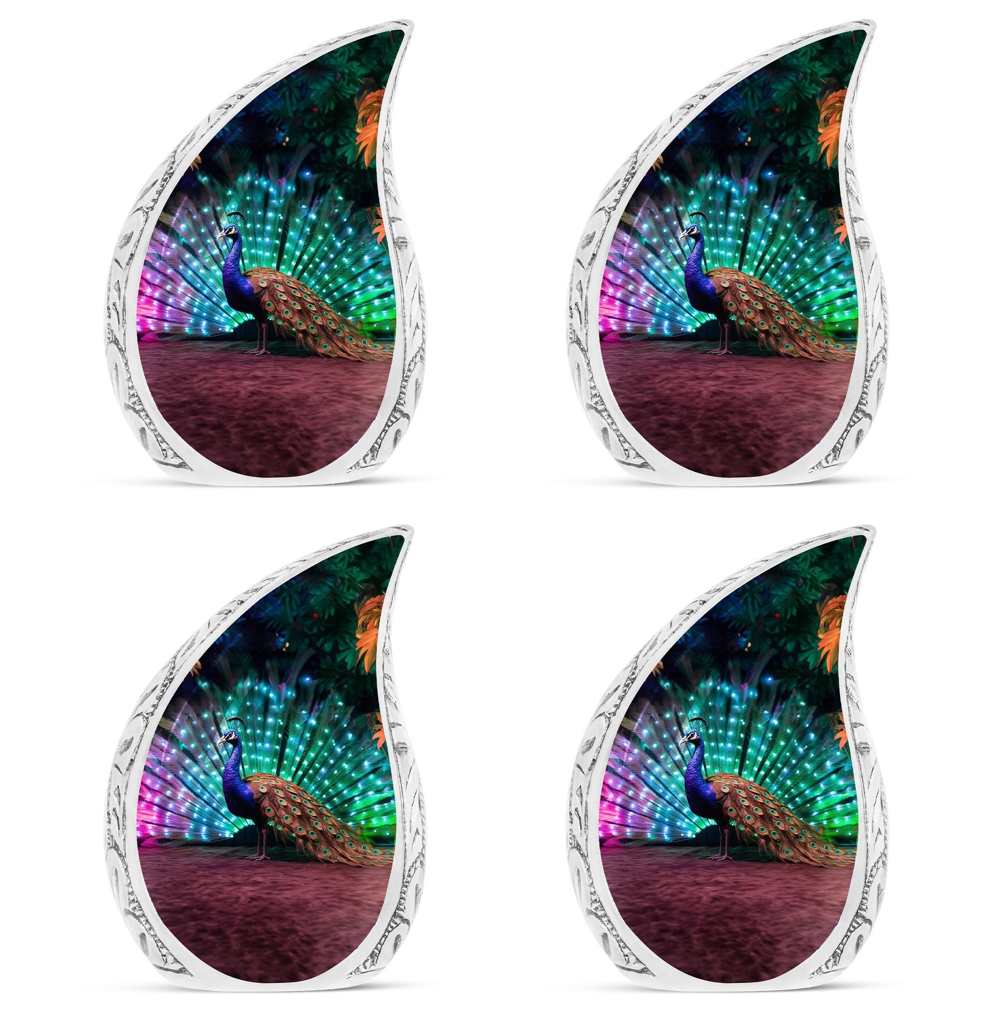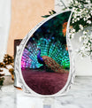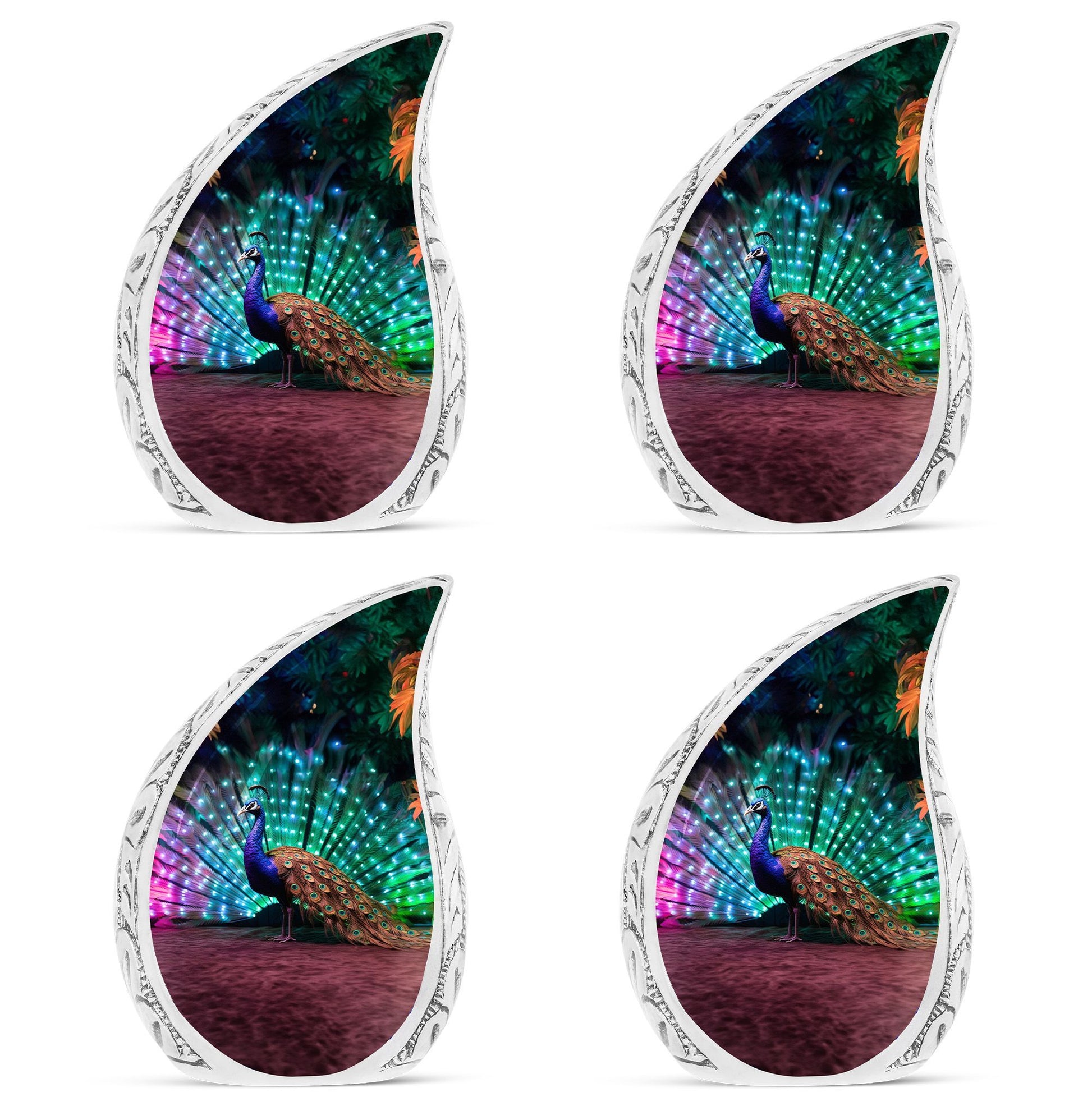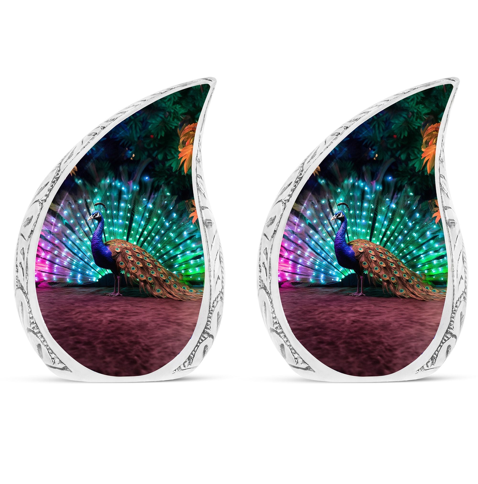 Experience an embodiment of reverence and honor with our meticulously crafted Peacock Cremation Urn. A perfect commemorative piece that offers a dignified resting place for your loved ones. Made from high-quality aluminium, this large urn with dimensions of 10 inches in height, and weight of 3.3 pounds, can capacitate up to 200 cubic inches of ashes. Each purchase includes a lavish velvet pouch for proper containment and solemnity. With its sturdy construction, it guarantees preservation and protection over time. Our urns offer an option to add a personal touch through engraved names, allowing a special way to remember your beloved. This peacock urn does not only serve as a vessel but also resonates the adoration and respect we have for our departed. Please note that these urns for people comply with all guidelines and standards necessary for such items. Perfect for those searching for 'cremation urn', 'customized urns for ashes for adults', or 'urn container'.