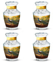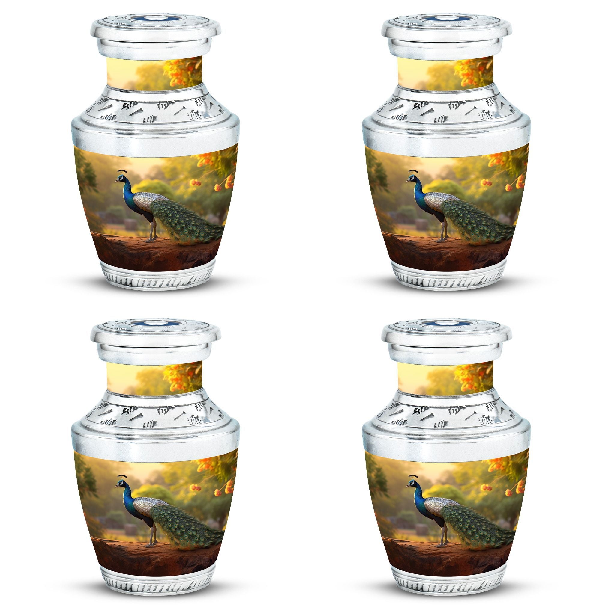 Preserve memories of your loved ones with our Peacock Urn. A cherished piece of memorial gift, this aluminum cremation urn adds a touch of solemnity and peace to the memorial service. This classic urn is 10 inches in height and has a size of 3 inches, with a substantial weight of 3.3 pounds. Its spacious interior can comfortably contain 200 cubic inches of ashes. The urn comes in a protective velvet pouch that provides a dignified containment of ashes. Further, to add a personal touch to this large urn, there is provision to engrave names on it. The Peacock Urn is also an ideal choice for anyone pursuing Human Cremation Urns, Modern Urns for Human Ashes, Ashes Holder, or Burial Urns for Ashes. Remember your loved ones in the most distinctive way with our Peacock Urn.