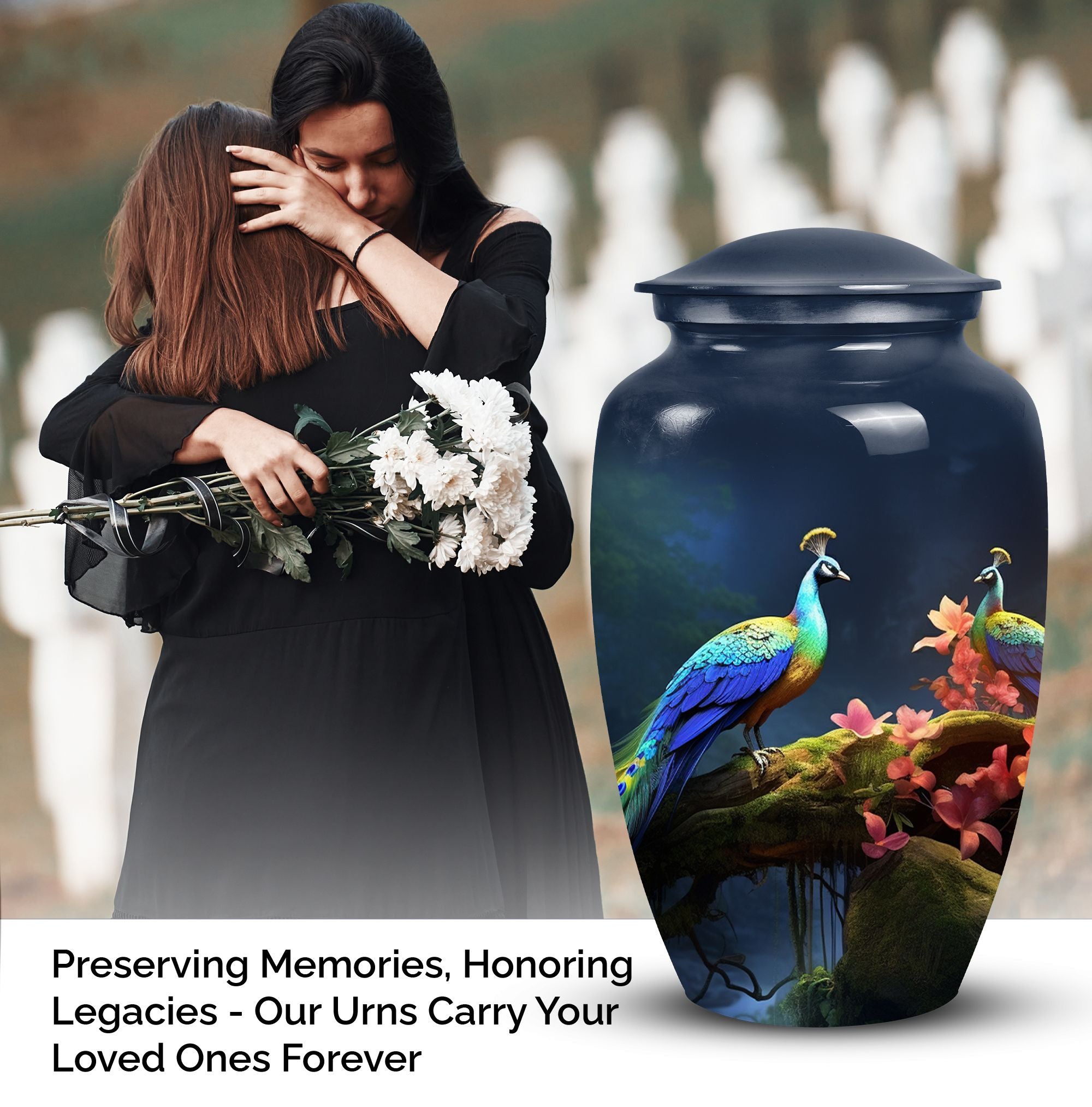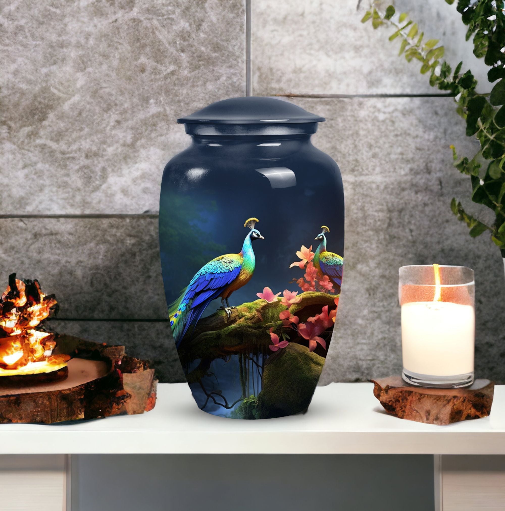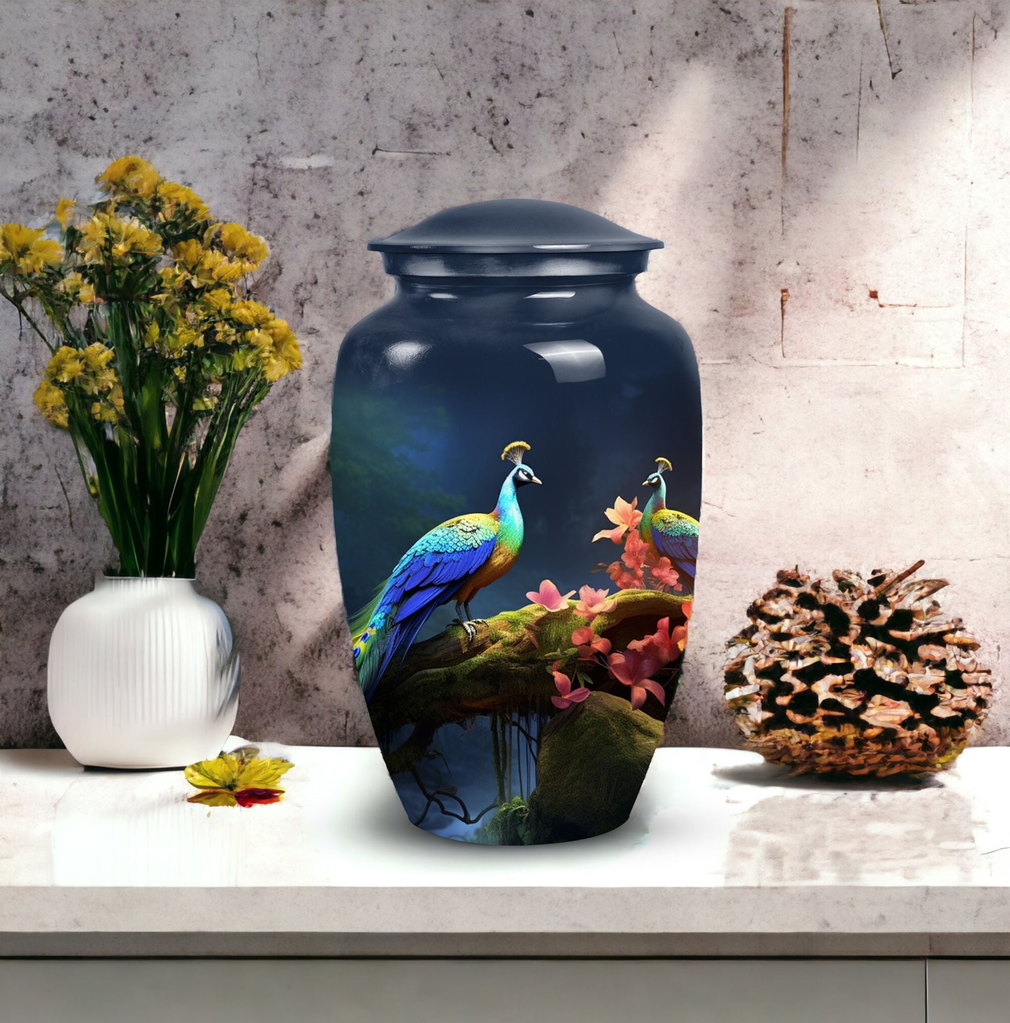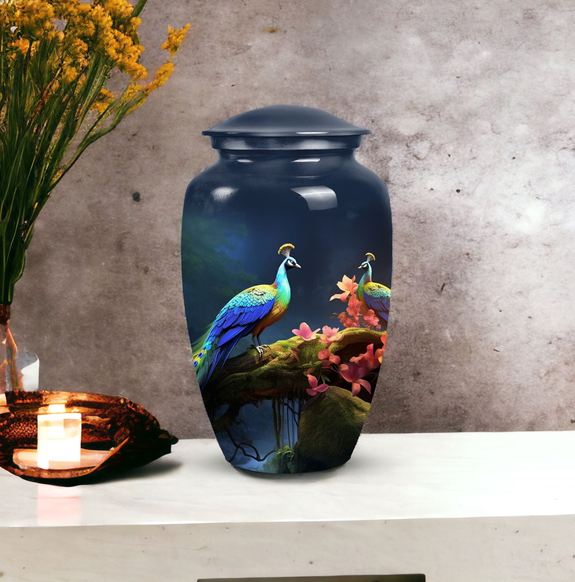 Discover serenity with our Peacock Burial-URNs, unique containers for adult human ashes. Crafted with exceptional finesse and artistry, these memorial-URNs are not just a resting place for your loved ones, but a tribute to their life and legacy. In each urn, you'll notice the striking design inspired by the majestic peacock, evoking symbolism of immortality, beauty, and renewal. Crafted for men and women alike, these decorative-URNs serve as a respectful, dignified vessel that transcends time. The cremation-URN for adults provides a lasting memory, a solace that our dear ones are still with us, in spirit and in memoriam. Revitalize your honoring rituals with these aesthetically delightful urns, displaying them in your home or using them in commemoration ceremonies. In the quest for a perfect ash container for human ashes, your search ends here. Experience the tranquility they bring, forever preserving your precious memories.
