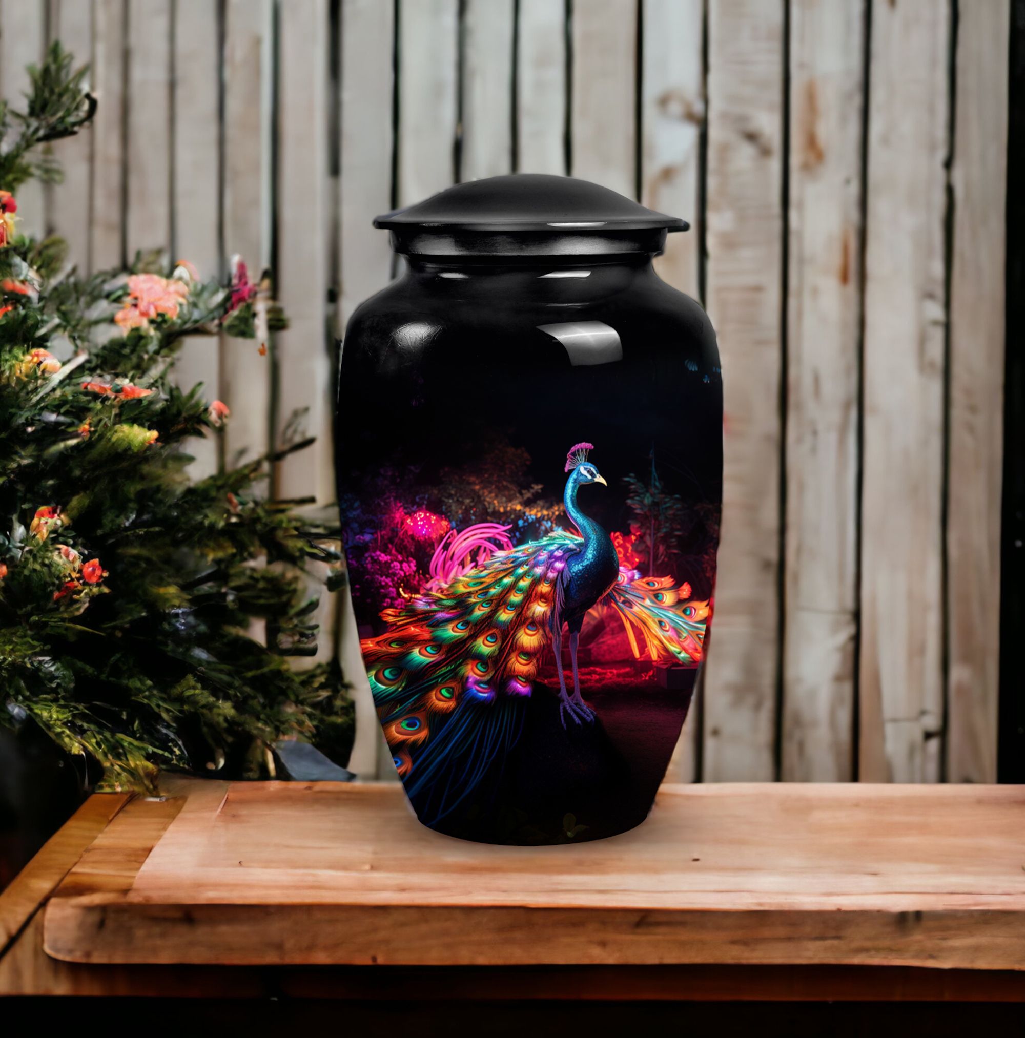 Adorn your loved one's final resting place with our exquisite Peacock Cremation Urn. This urn is not just a vessel, but a delicate piece of art that beautifully captures the essence of impermanence and rebirth, symbolized by the majestic peacock. Each urn is carefully handcrafted to serve as a dignified abode for human ashes. Ideal for both adults and seniors, the urn delicately amalgamates aesthetic appeal with the soothing serenity of a sacred ritual. Often sought out for their enduring sophistication, our burial urns encapsulate the precious complexities of life and death. Whether you're honoring a loved one's memory or planning a respectful funeral decoration, this cremation urn makes for an intimate choice. It's not just an urn for ashes; it's a poetic narrative, sewn with threads of remembrance and love. Search no more, for this exclusive cremation urn, thoughtfully designed for your moments of remembrance.