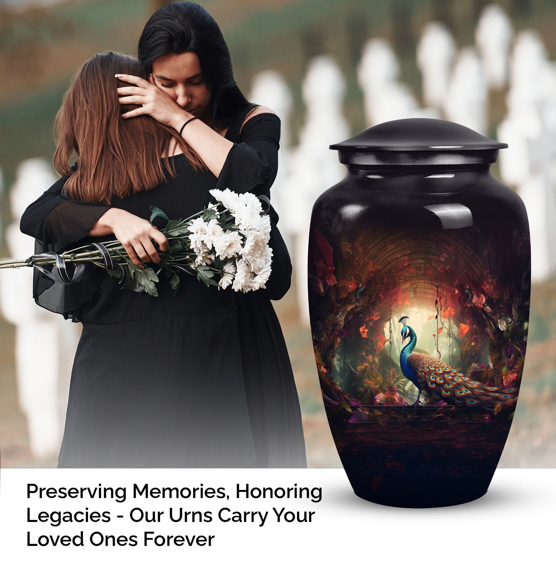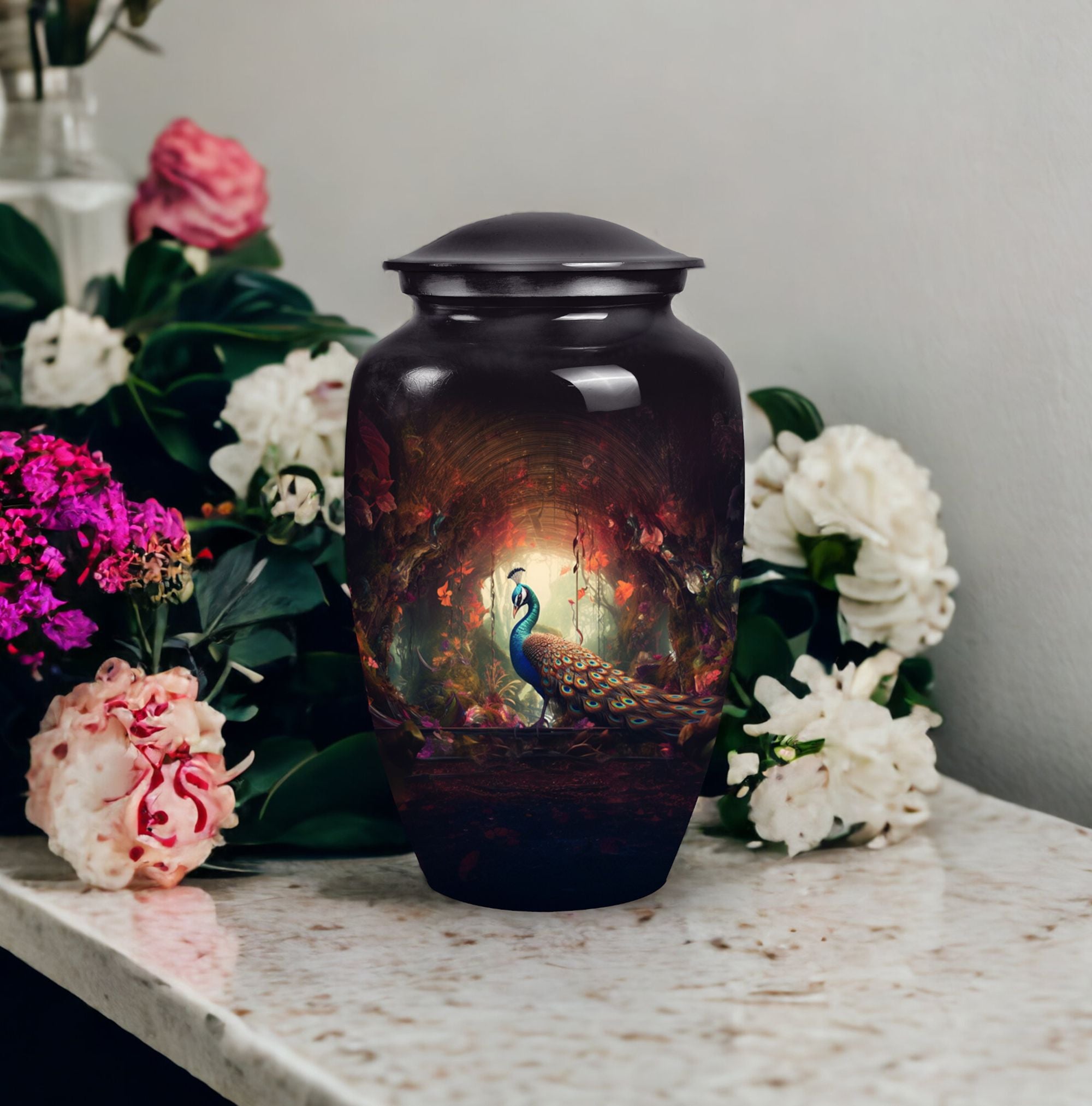 Looking to celebrate and honor a loved one's life in a unique way? Our Peacock Funeral Decorations provide a poignant touch to any memorial service. These Medium-URNs are designed distinctly to hold the ashes of adult men securely and respectfully. As well-crafted Ash-URNs, they serve as a touching tribute to honor your departed dad, symbolizing love, respect, and eternal memory. Each urn bursts with the vibrant colors of a peacock feather, designed to signify eternal life and majesty, evoking feelings of peace and solace during difficult times. Avoid the generic Cremation-URNs for Men, step into a space of originality and deep respect for your loved one. Our Adult-URNs for men offer not just a unique design but a unique experience, to help you navigate the journey of bereavement. Embark on a path of healing and remembrance with our Peacock Funeral Decorations.