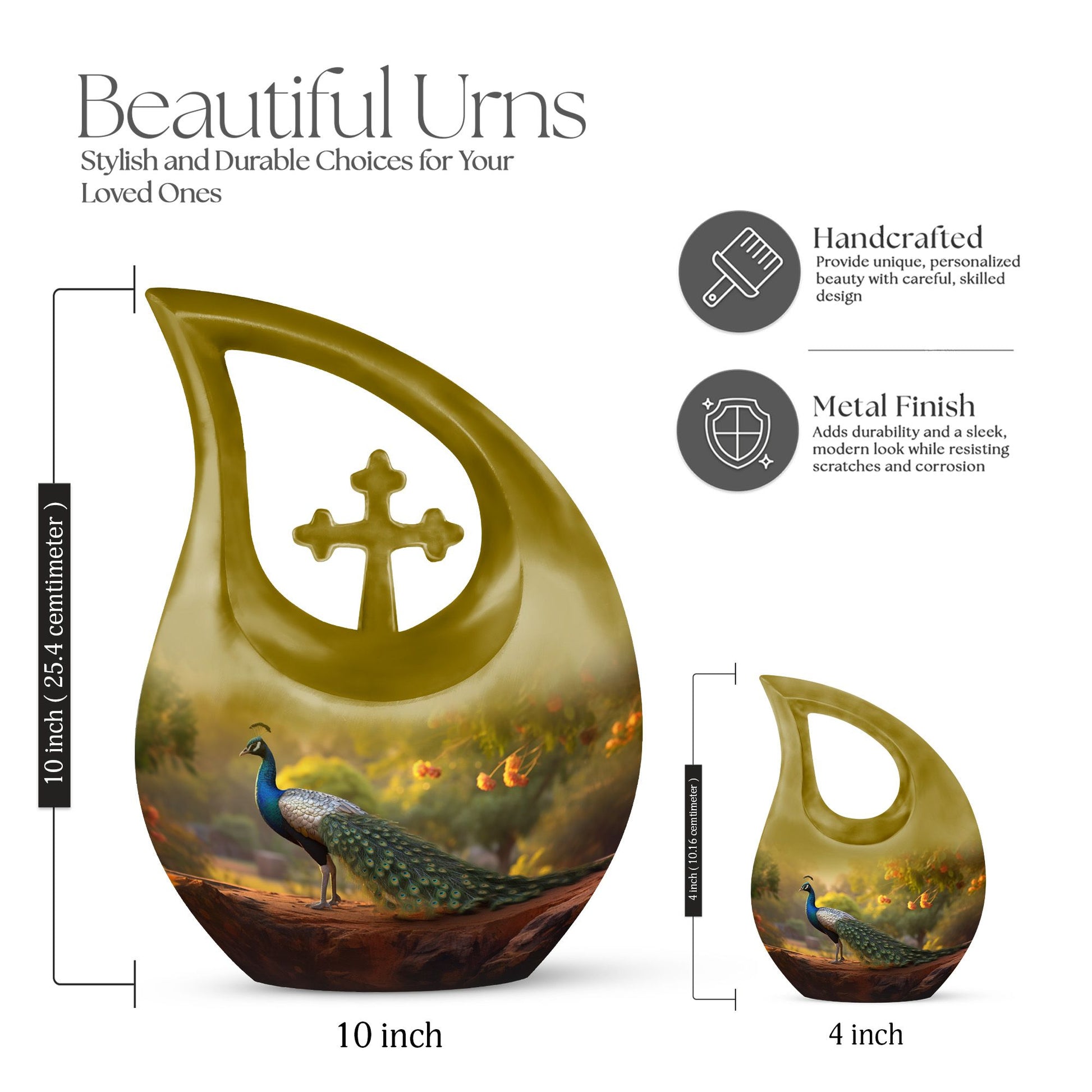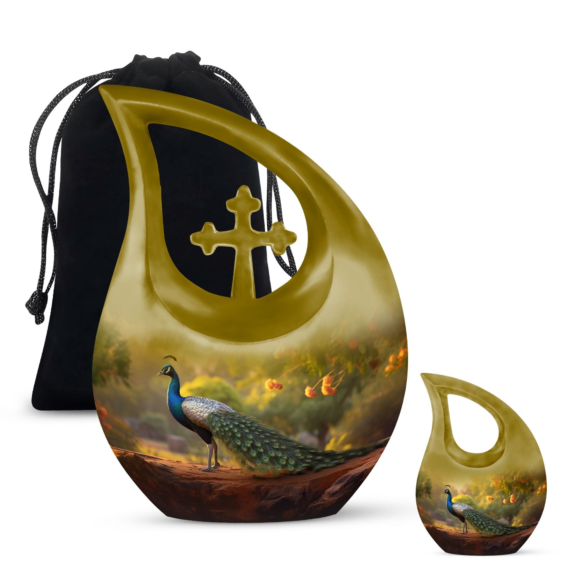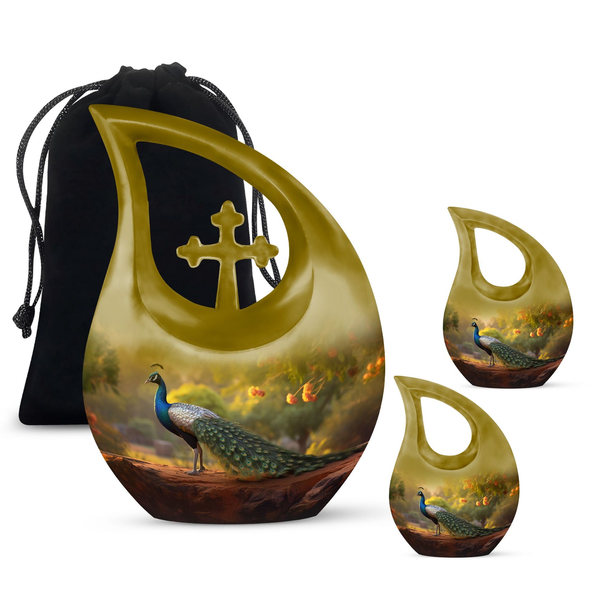 Celebrate a beautiful life with the Golden Peacock Cremation Urn for Human Ashes, a timeless cremation memorial symbolizing love, peace, and eternal grace. The shimmering golden peacock design embodies renewal and spiritual beauty, making this urn a heartfelt choice for families seeking elegance and meaning. Perfect as a single human cremation urn or part of a cremation urns set, it honors your loved one with dignity and warmth.