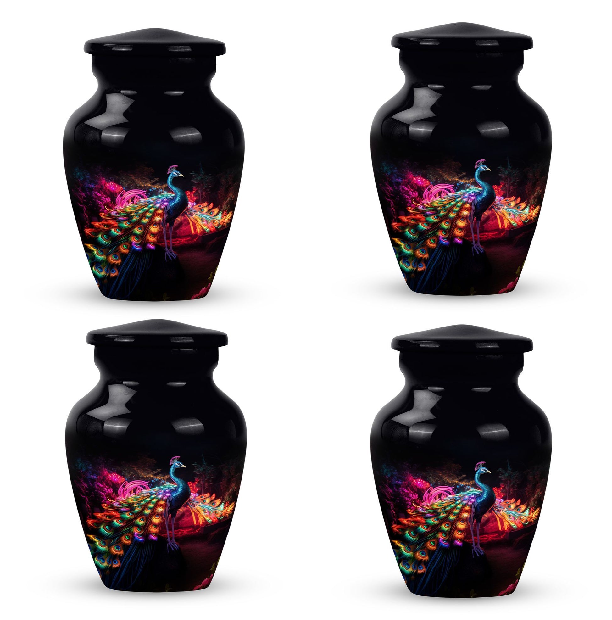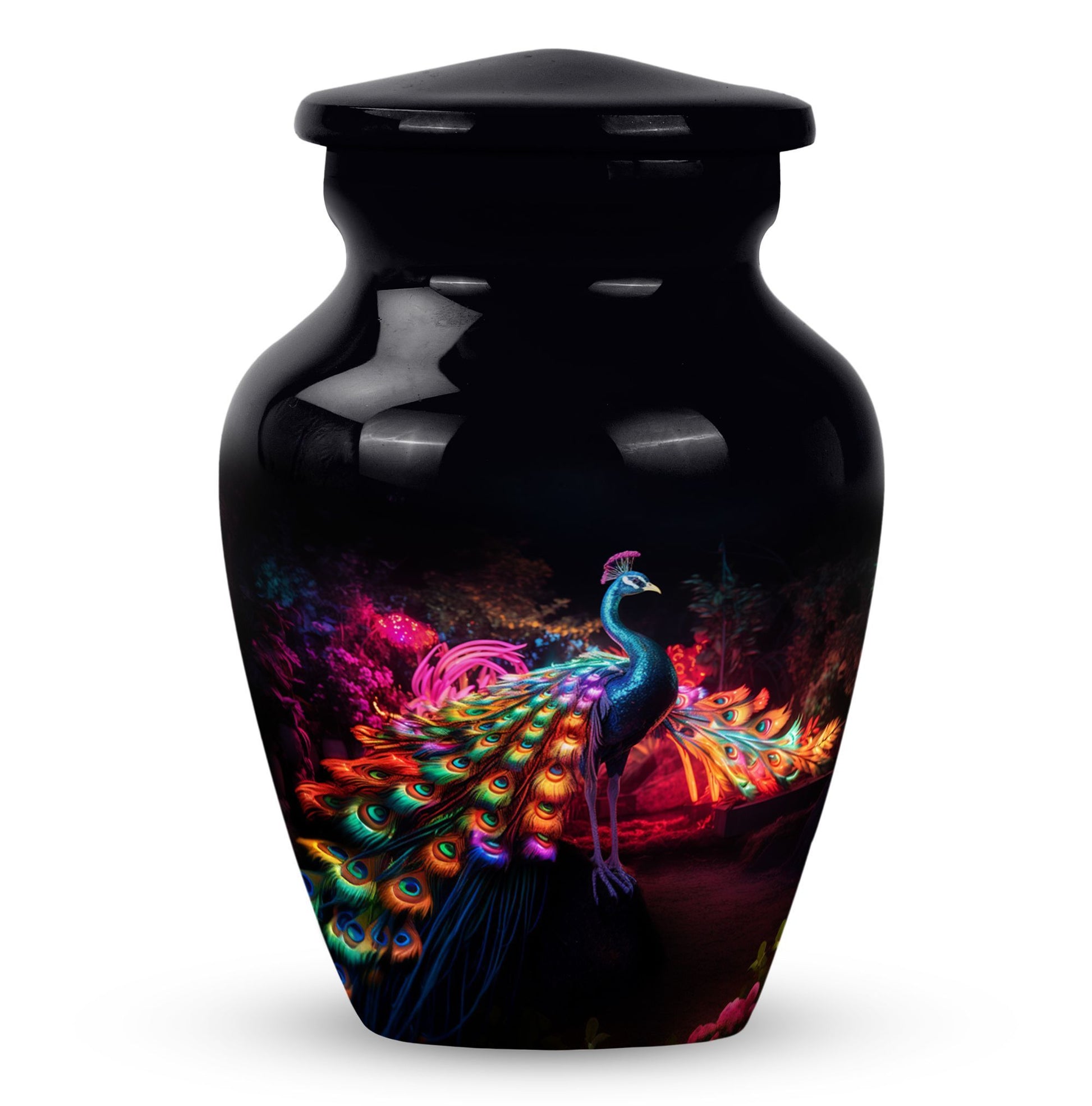 Discover the timeless elegance and intricate artistry of our Peacock Cremation Urn, specifically designed for adults' ashes. This urn fuses tradition with sophistication, resulting in a truly unique item for memorializing your departed loved goods. Measuring 10 inches in height, with a compact 3-inch size footprint, it's capable of securely containing up to 200 cubic inches of ashes. Weighing a sturdy 3.3 pounds, our aluminium constructed urn assures enduring quality. To add a touch of your personal sentiment, we offer you the option to enhance your urn with engraved names. Each urn comes with a complimentary velvet pouch, providing a fitting containment for your loved one's ashes. Ideal for burial ceremonies, this large urn is more than an urn container - it's a tribute to a unique life lived.