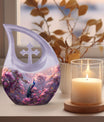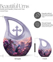 This elegant memorial urn can complement cremation urns for burial in ground or companion keepsake pieces, helping families create a cohesive tribute.