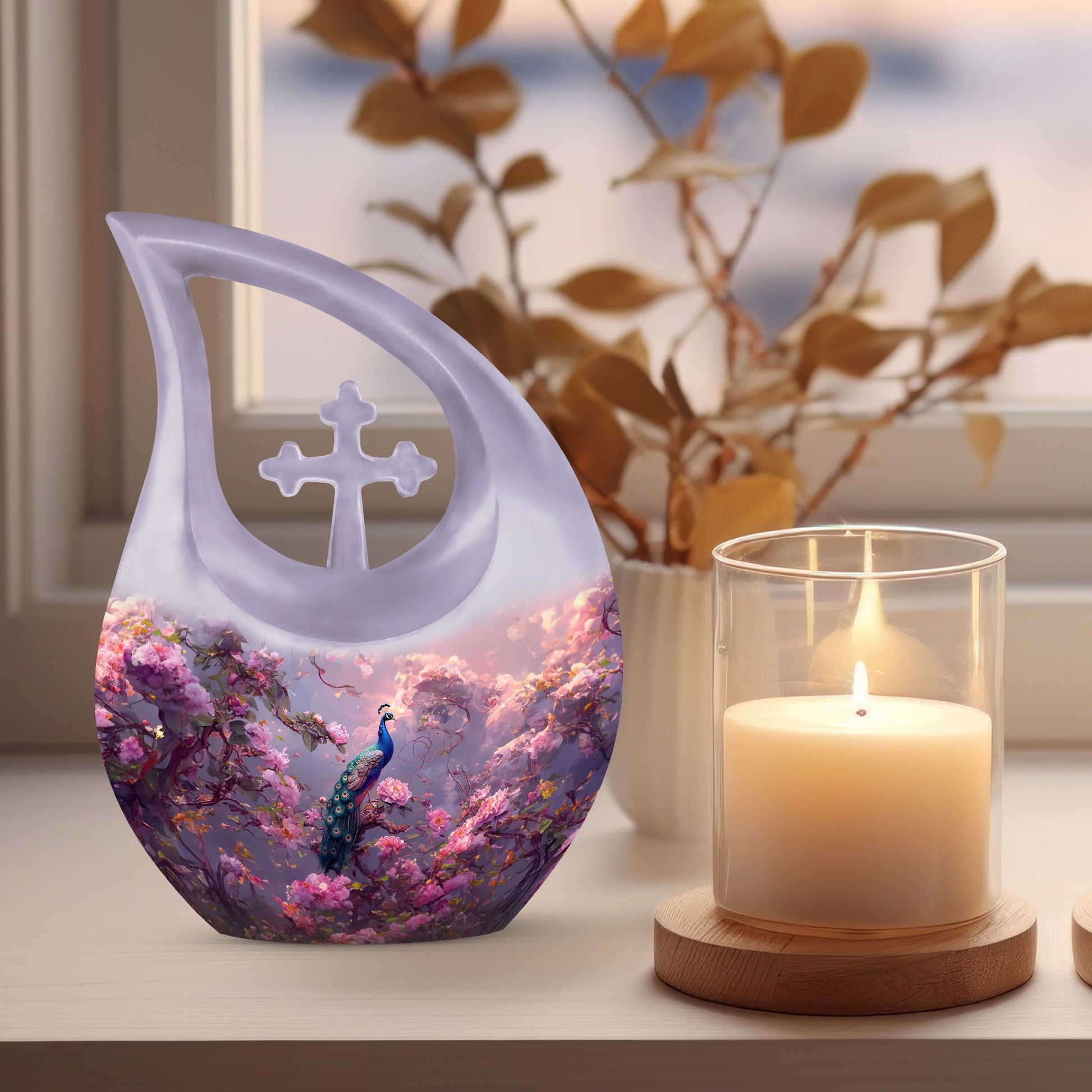 The Peacock Burial Urn offers a heartfelt and elegant way to honor a loved one, providing comfort to families seeking urns for burial in ground or cremation urns for burial. Its vibrant peacock-inspired artwork symbolizes renewal, grace, and everlasting remembrance, making it a meaningful personalized cremation urn for human ashes for adult.