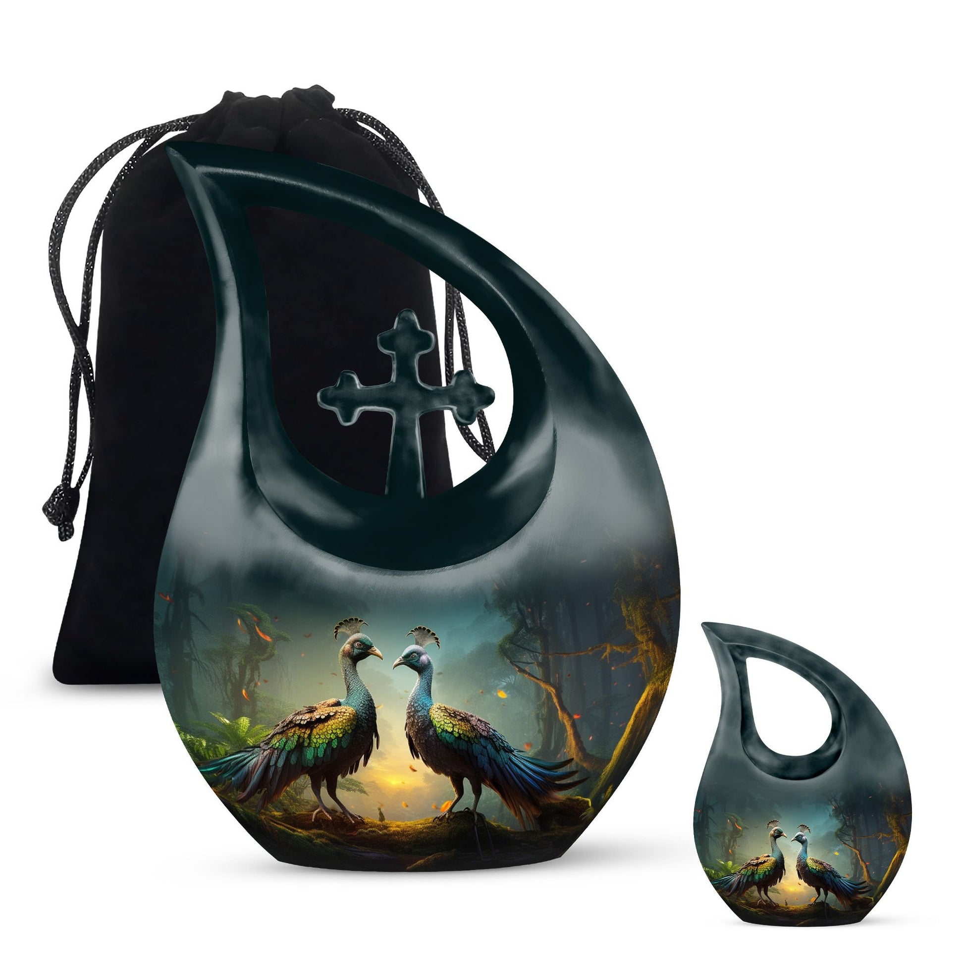 Celebrate a life filled with love and beauty through the Peacock Pair Cremation Urns for Human Ashes — a heartfelt cremation memorial symbolizing unity, grace, and everlasting remembrance. Designed for both mom and dad, this exquisite cremation urn for adult reflects harmony and devotion through its intricate peacock pair design, representing togetherness beyond time.