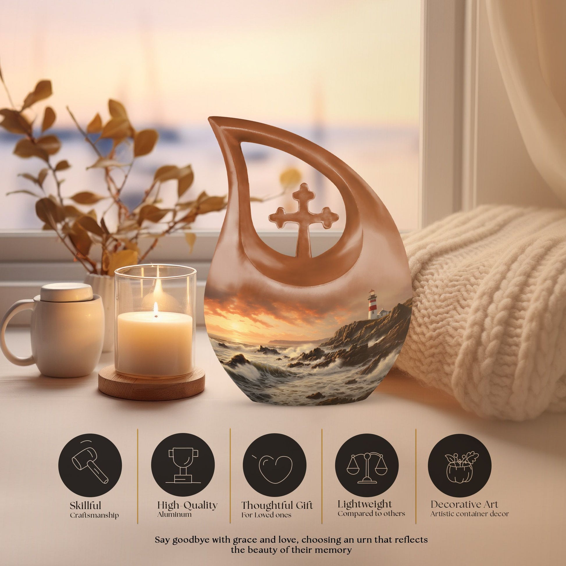 Honor your loved one's memories with the grandeur and solemnity they deserve. Our Wilderness Urn, one of our selection of Personalized Urns for Human Ashes, is an overwhelmingly meaningful and dignified choice. Our 10-inch memorial urns beautifully showcase a unique 'Cross Drop' theme, harking to the tranquility of untouched wilderness. It's not merely an urn; It's a large urn, meticulously carved from high-quality aluminium, boasting a capacity of 200 cubic inches, perfect for adults and seniors alike. Weighing 3.3 pounds and standing 10 inches tall, this item is as sturdy as it is elegant. We offer customization for this urn, allowing personal touch with engraved names, adding a uniquely personal element to this already highly individual urn. The urn comes with a velvet pouch, providing an exquisite and protective containment for the ashes. The Wilderness Urn is an Affordable Funeral Urn choice that doesn't compromise on quality and provides a distinctive alternative to Small Urns For Human Ashes. Embody your dear ones' spirit with a vessel that speaks to their unique personality and important life journey. Our Funeral Urns For Ashes are more than just urns; they are tangible encapsulations of love and remembrance.