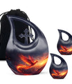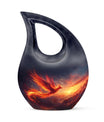 Crafted from durable aluminium, this urn features a stunning phoenix motif in a luminous finish, representing rising light and hope. Its secure screw-top lid and thoughtful construction ensure long-lasting protection, making it ideal for adult funeral urns, funeral urn adult needs, or funeral keepsake urns. Families wishing to preserve a portion of remains may also choose a mini keepsake funeral urn to accompany this full-size piece. Whether selecting unique urns for human ashes or an urn for burial in ground, this design offers both strength and serenity.