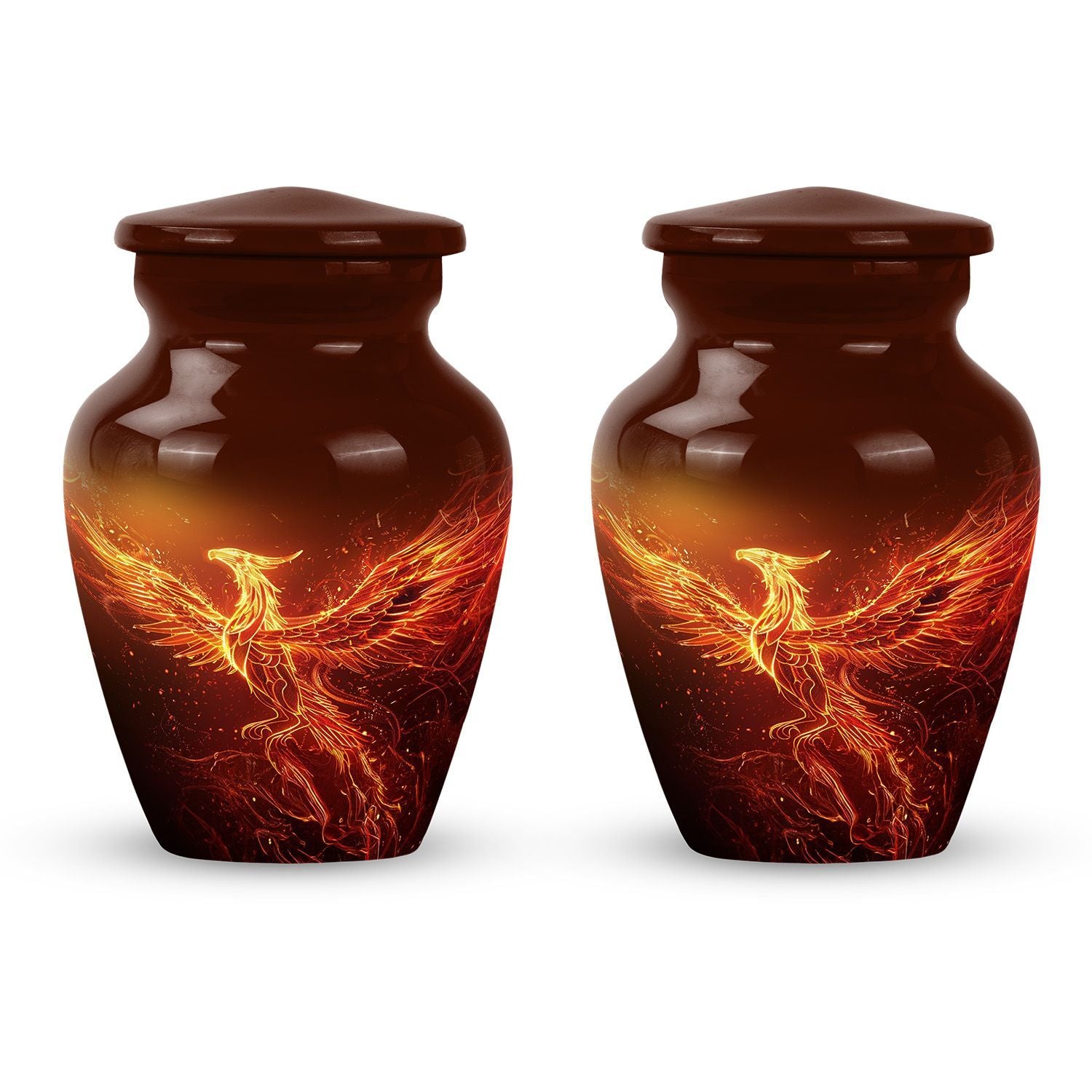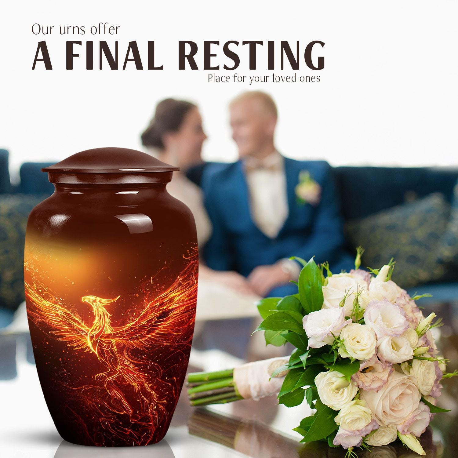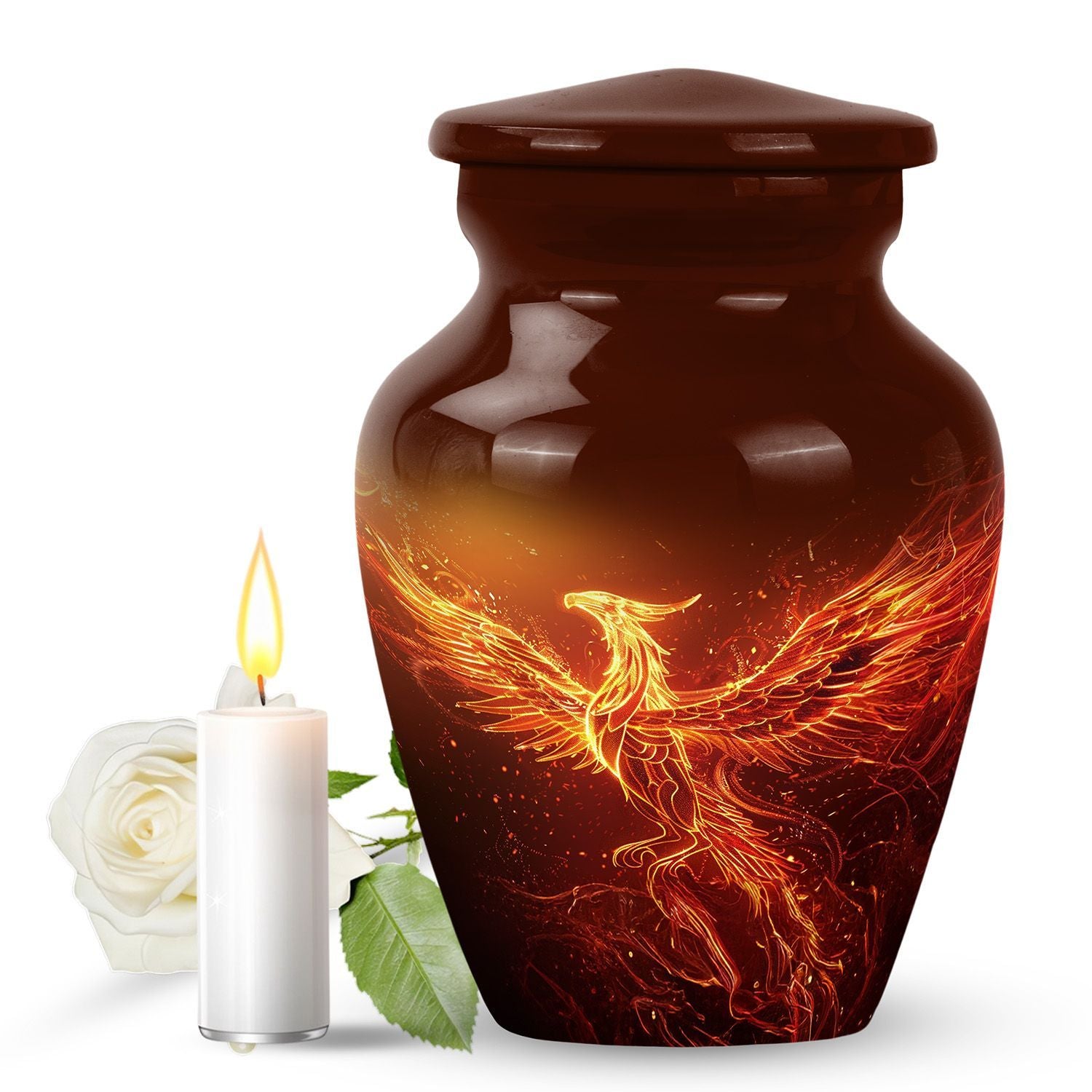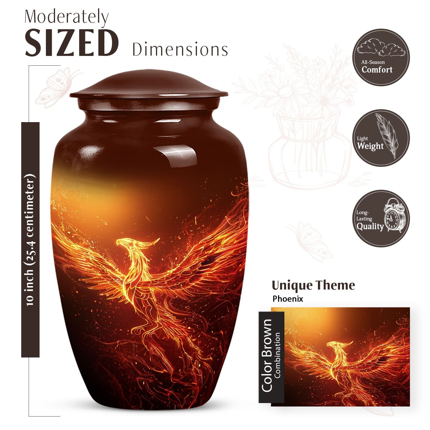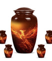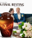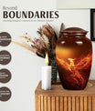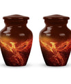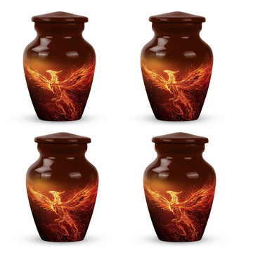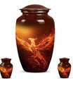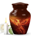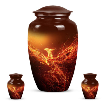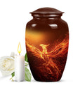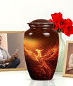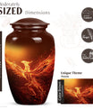 An exquisite tribute to your departed loved ones, this Phoenix Urn majestically captures the essence of life, survival, and rebirth. This burial urn, designed for adults and seniors, stands at a substantial 10 inches in height and weighs 3.3 pounds, embodying durability and permanence. Its intricate abstract theme is not only compellingly evocative but is sure to resonate with those looking for a touching tribute. The urn’s size and robust structure, large urns crafted from high-quality, resilient aluminium, offers a significant capacity of 200 cubic inches, providing ample space for lasting memories. To add a personalized touch, you can engrave names on it, making sure the memory of your loved ones never fades away. The urn comes with a velvet pouch, a respectful and sophisticated containment for the ashes, ensuring their sanctity. Whether you're looking for urns for a female adult, a dual urn for an adult male and female, or a metal urn for in-ground burial, this expansive and striking phoenix urn caters to all, leaving a lasting legacy for your beloved.