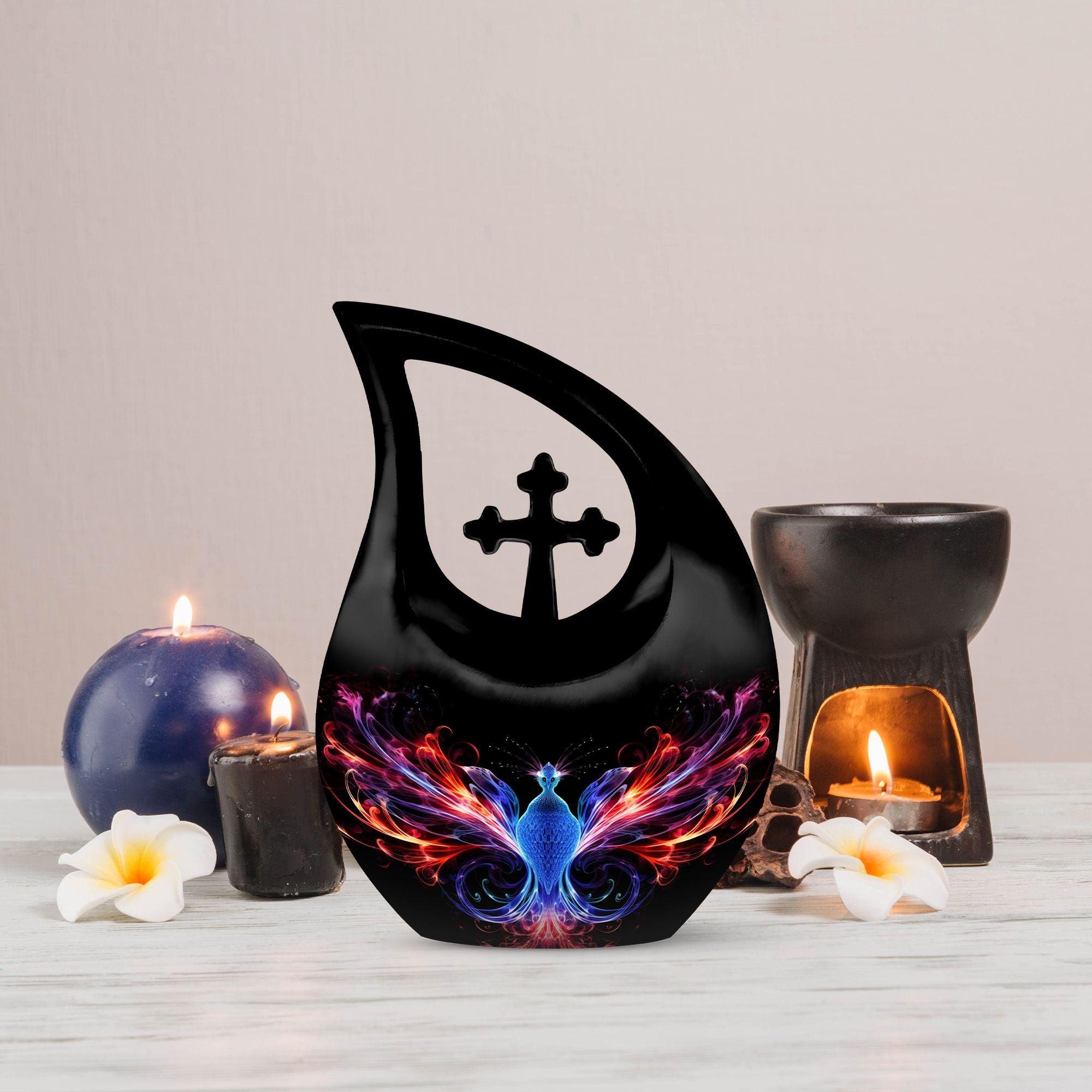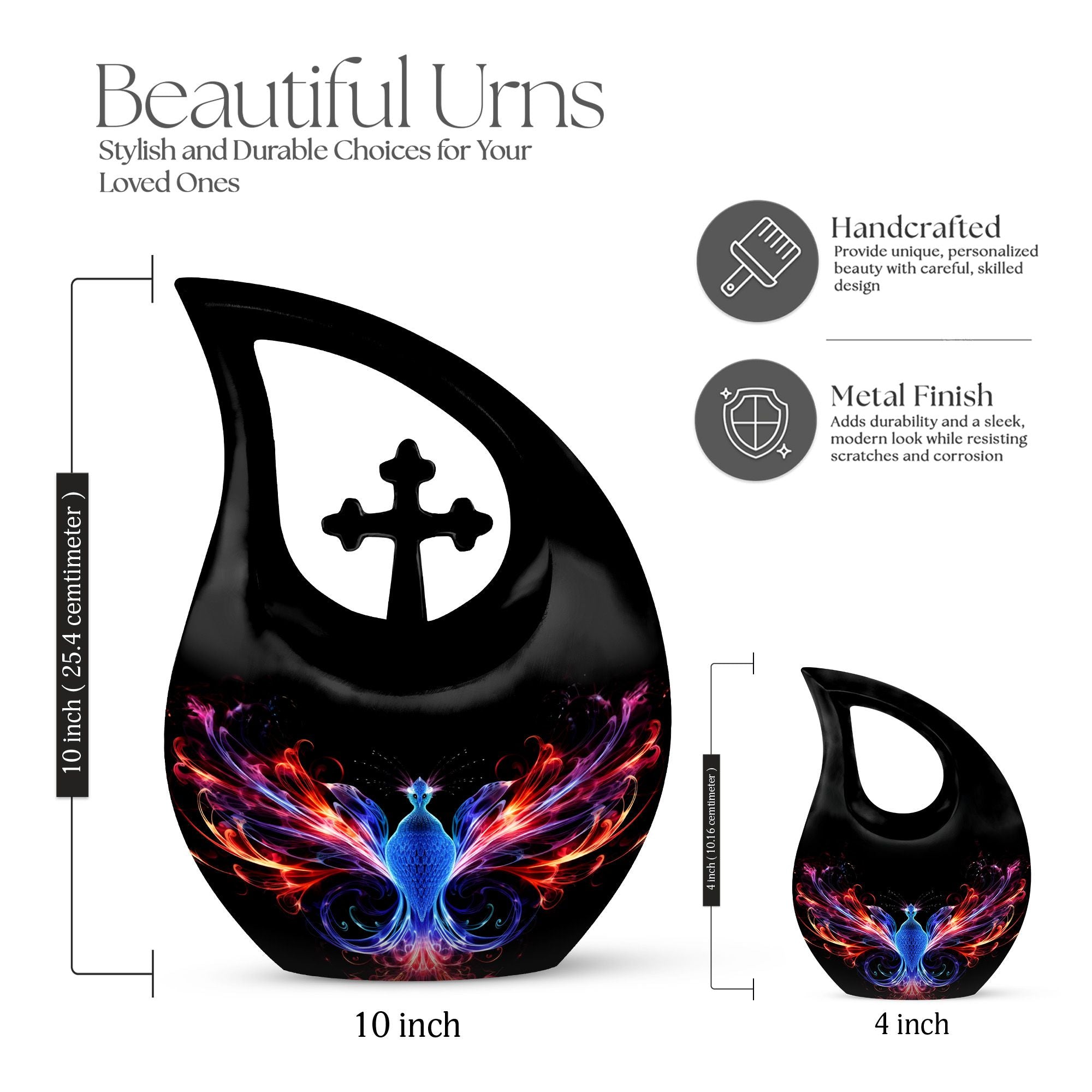 The radiant peacock design symbolizes renewal, dignity, and the beauty of the soul’s eternal flight. This adult large urn stands as more than a resting place — it is a reflection of love, honor, and the enduring light of cherished memories.