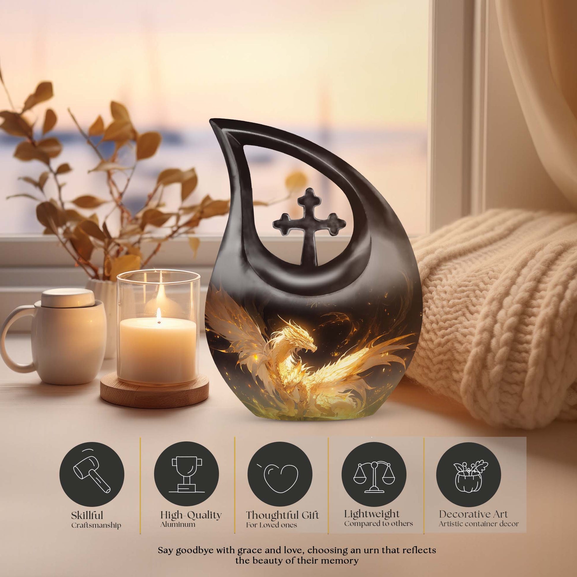 The Golden Dragon Cremation Urn offers a powerful and comforting way to honor a beloved mom or dad. Its majestic dragon design symbolizes strength, protection, and eternal guidance—bringing peace to families searching for men urns for human ashes or a dignified urn for ashes adult female.