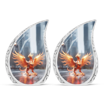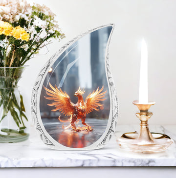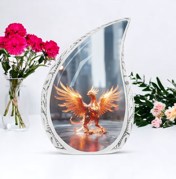 Experience an expression of love and honoring memories with our Phoenix Memorial Urn. This cremation urn, which signifies 'sorry for your loss,' is a remarkable tribute to your departed loved ones. It integrates a unique 3-Inch Classic Urn Pattern, meticulously crafted from superior quality aluminium. The large capacity of 200 cubic inches can securely hold the ashes, making it an ideal choice for adults. This dignified urn weighs 3.3 pounds and stands magnificent at a height of 10 inches. Included in the package is a sumptuous velvet pouch for careful containment of ashes. The added feature of personalization enhances its value, allowing you to engrave names of your choice. The use of the Phoenix Memorial Urn manifests respect for life and love for those who are no longer physically present. Please explore variants of our Large Urns, also consider Burial Urns for Adults, Urn Container, Urns for Dad, and Custom Cremation Urns.