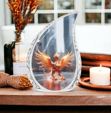 Experience an expression of love and honoring memories with our Phoenix Memorial Urn. This cremation urn, which signifies 'sorry for your loss,' is a remarkable tribute to your departed loved ones. It integrates a unique 3-Inch Classic Urn Pattern, meticulously crafted from superior quality aluminium. The large capacity of 200 cubic inches can securely hold the ashes, making it an ideal choice for adults. This dignified urn weighs 3.3 pounds and stands magnificent at a height of 10 inches. Included in the package is a sumptuous velvet pouch for careful containment of ashes. The added feature of personalization enhances its value, allowing you to engrave names of your choice. The use of the Phoenix Memorial Urn manifests respect for life and love for those who are no longer physically present. Please explore variants of our Large Urns, also consider Burial Urns for Adults, Urn Container, Urns for Dad, and Custom Cremation Urns.